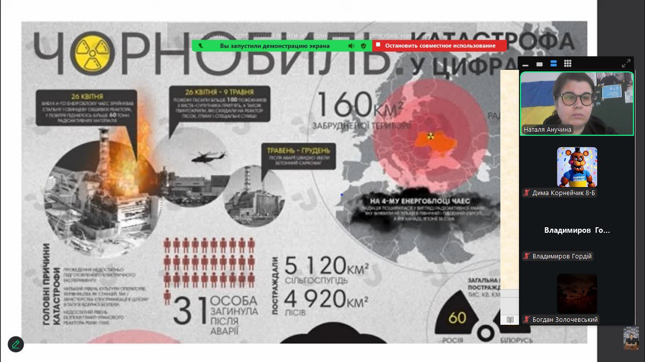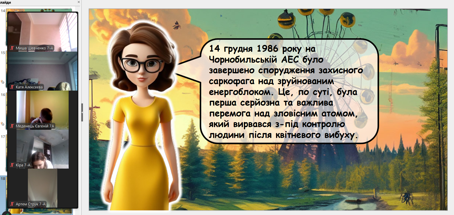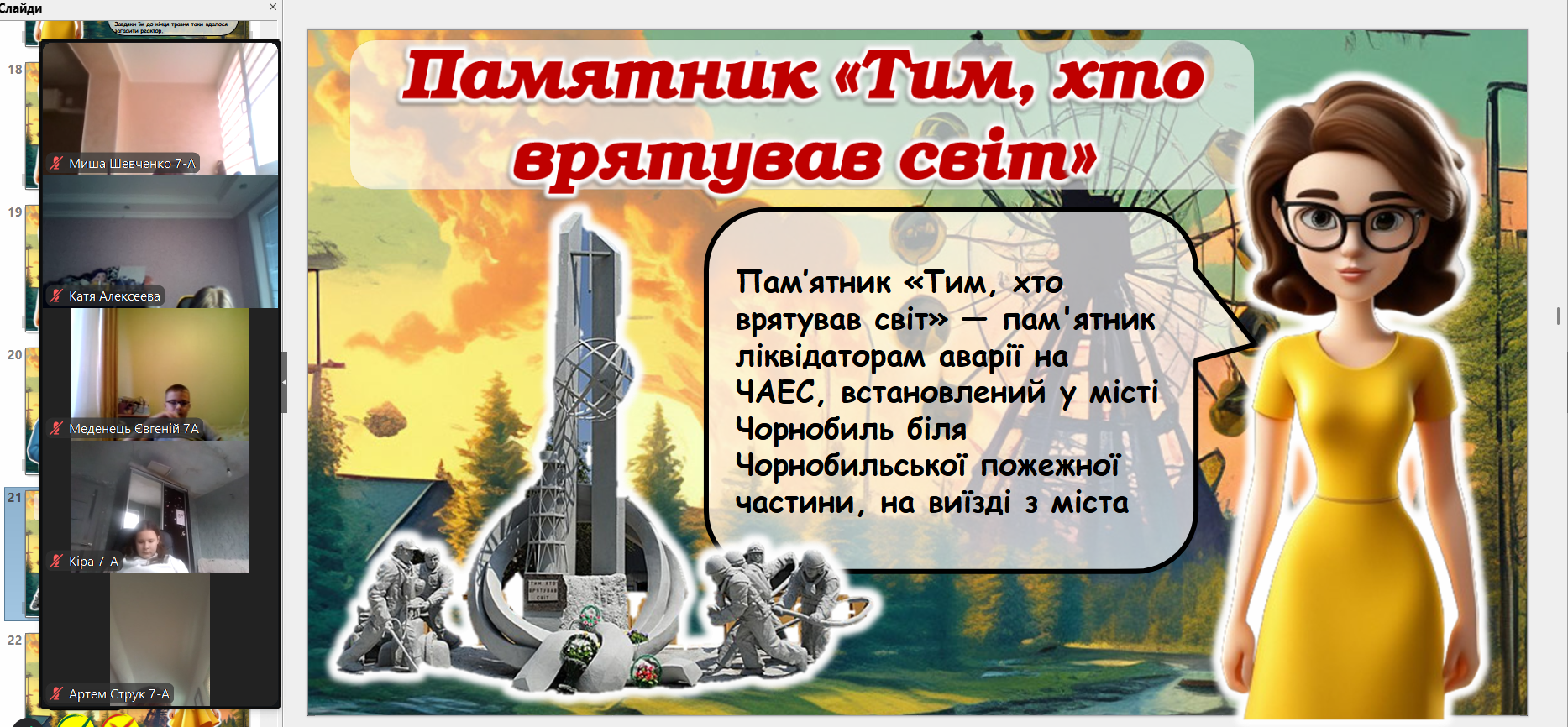 Чорнобильська катастрофа – найбільша за всю історію ядерної енергетики. В житті українців Чорнобиль є незаживаючою раною болю і втрат. Масштаби лиха та важкість наслідків стали найтяжчими в історії нашої планети. Героїзм ліквідаторів врятував мільйони життів, врятував світ. Ціною свого життя і здоров’я, під великими дозами опромінення вони зупинили невидимого і дуже підступного ворога. Сьогодні наш обов’язок – пам’ятати про учасників ліквідації аварії на Чорнобильській АЕС, які є прикладом мужності, згадати про їхню самовідданість і жертовність, та вшанувати тих, хто віддав своє здоров’я і життя заради безпеки наступних поколінь і майбутнього України. З вихованцями спеціальної школи проведені інформаційні хвилини, години спілкування тощо