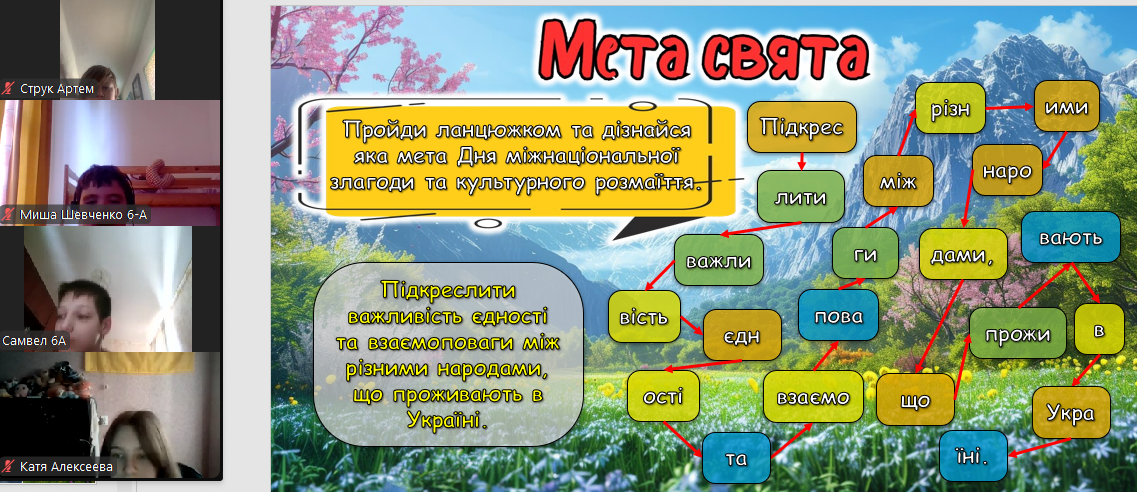 21 травня вперше відзначили День міжнаціональної злагоди і культурного розмаїття — нове державне свято, започатковане указом президента України наприкінці 2024 року. У межах події відбувся Всеукраїнський форум національних спільнот і корінних народів. З учнями 6-А класу проведено годину спілкування до Дня міжнаціональної злагоди та культурного розмаїття
