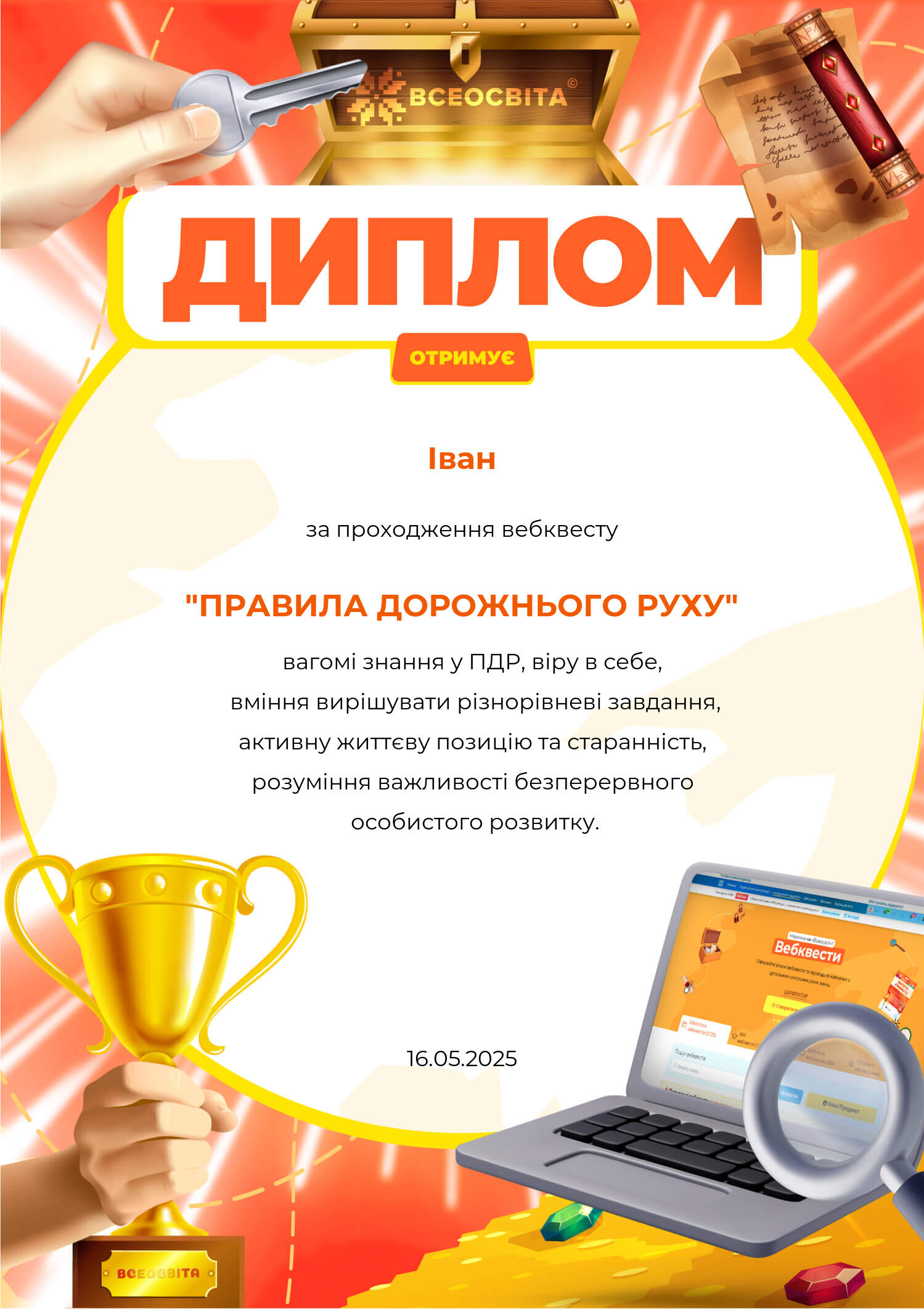 Учні 7-Б класу використали свої знання при проходженні веб-квесту та отримали дипломи