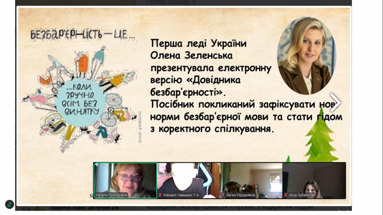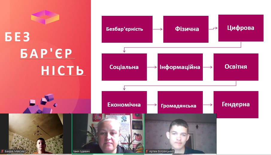 Вихованці 6-7-х класів провели засідання круглого столу «Безбар’єрність. Чому це стосується кожного?». Дійшли висновку, що безбар’єрність — це коли ти можеш брати участь у суспільному житті на рівних.
