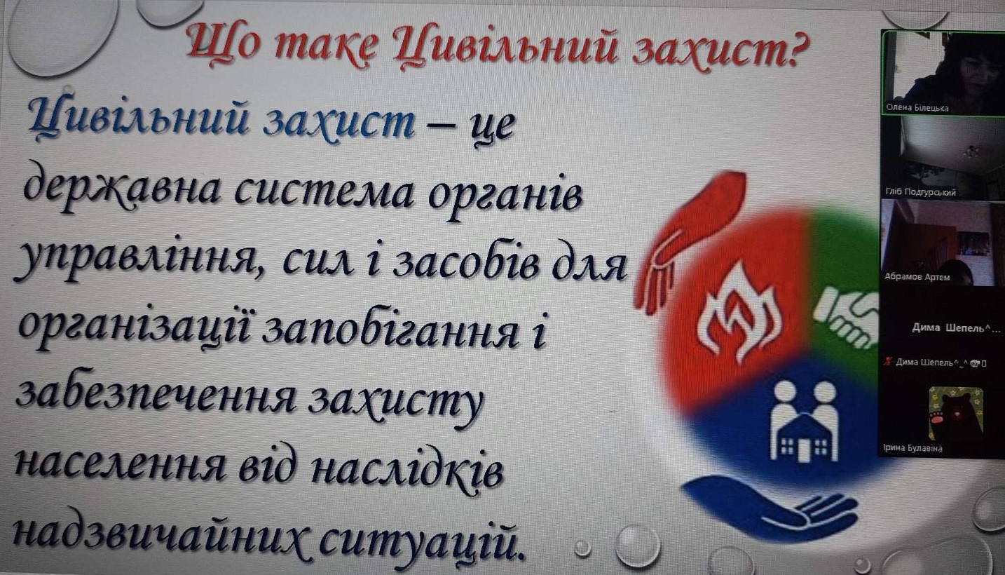 До Дня Цивільного захисту з учнями проведені години спілкування «Про цивільну оборону України», інтерактивна година спілкування «Суперзахист: збережи своє життя з супергероями» та переглянуто відео «Екстренна валізка»