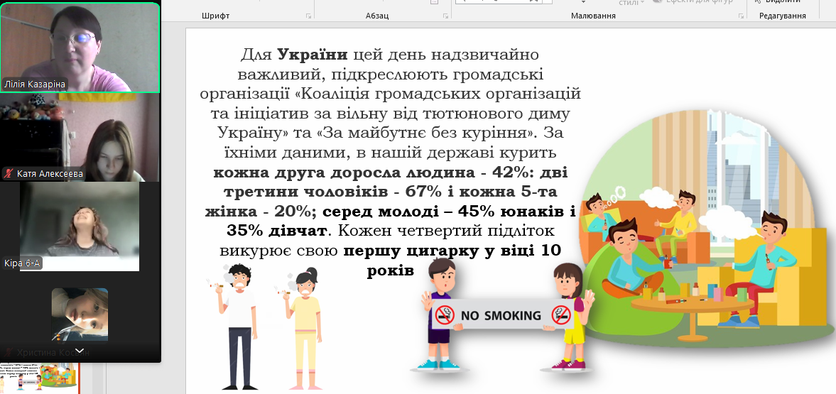 Всесвітній день без тютюну, який відзначається щорічно 31 травня, є глобальною платформою для підвищення обізнаності про небезпеку вживання тютюну та сприяє зусиллям щодо припинення куріння. З учнями 6-А та 7-Б класів проведено годину спілкування до Всесвітнього дня без тютюну