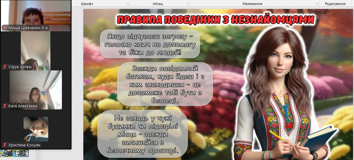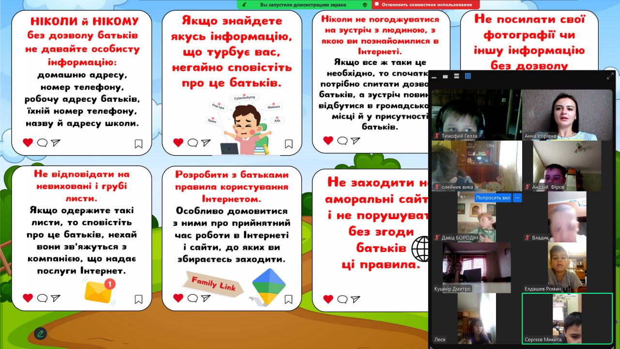 Національна поліція та Служба безпеки України продовжують реалізацію всеукраїнської інформаційної кампанії «Спали» ФСБшника», спрямованої на запобігання вербуванню неповнолітніх спецслужбами російської федерації. З учнями 6-А та 7-Б клаів переглянули та обговорили онлайн-урок від МОН, Нацполіції та СБУ «Як підлітками не потрапити в пастку російських спецслужб!?»