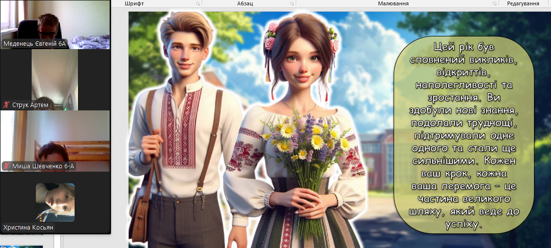 Нехай останній дзвоник стане символом досягнень, нових можливостей і щасливих змін. Бажаємо учням – цікавих відкриттів і яскравих канікул, а педагогам – вдячних сердець, натхнення та сил для нових звершень. З учнями проведено останній дзвоник «Дзвоник незламних сердець»