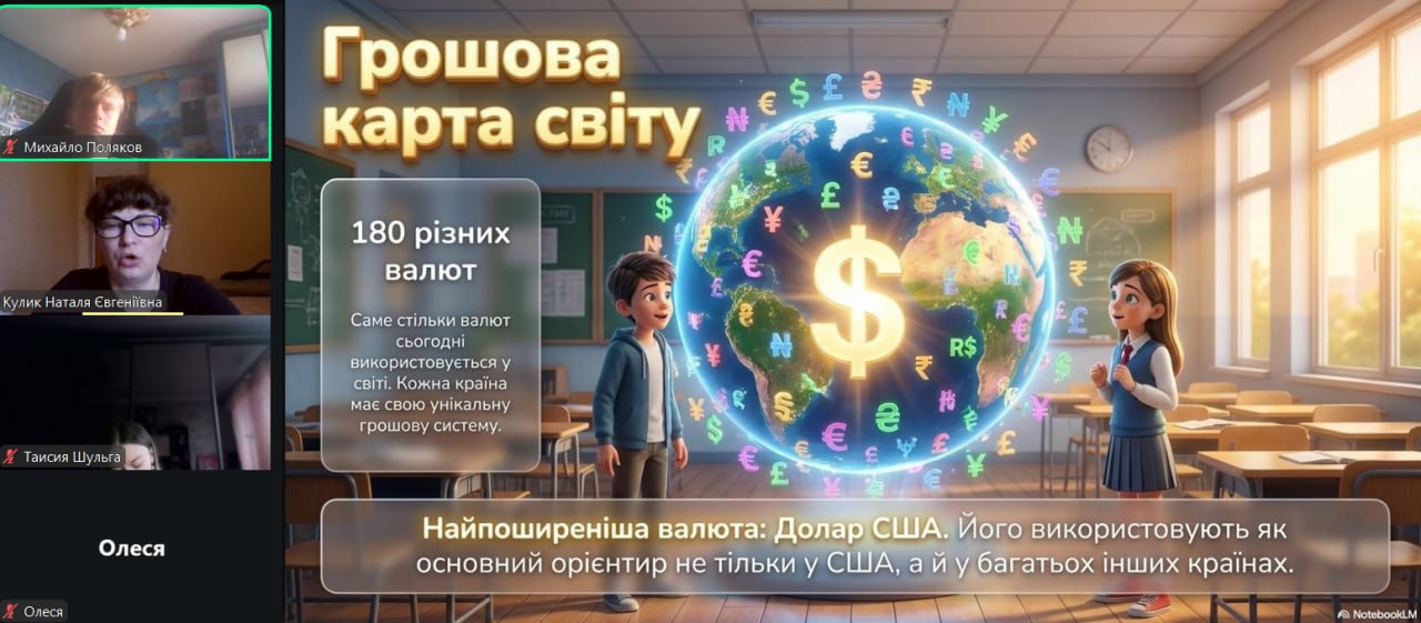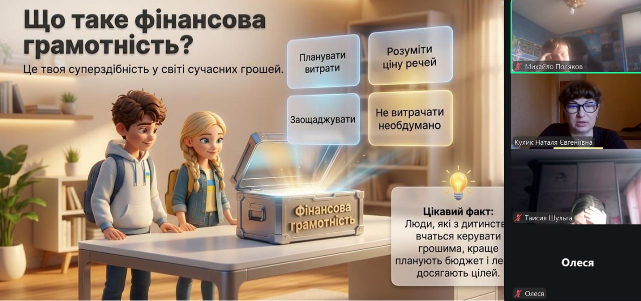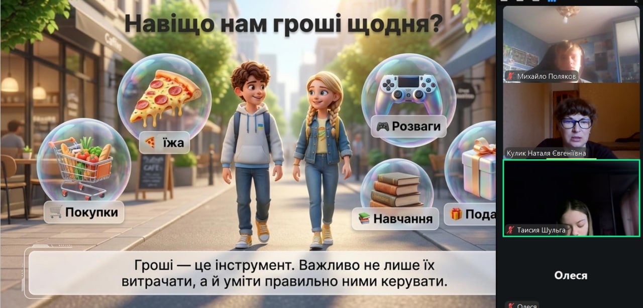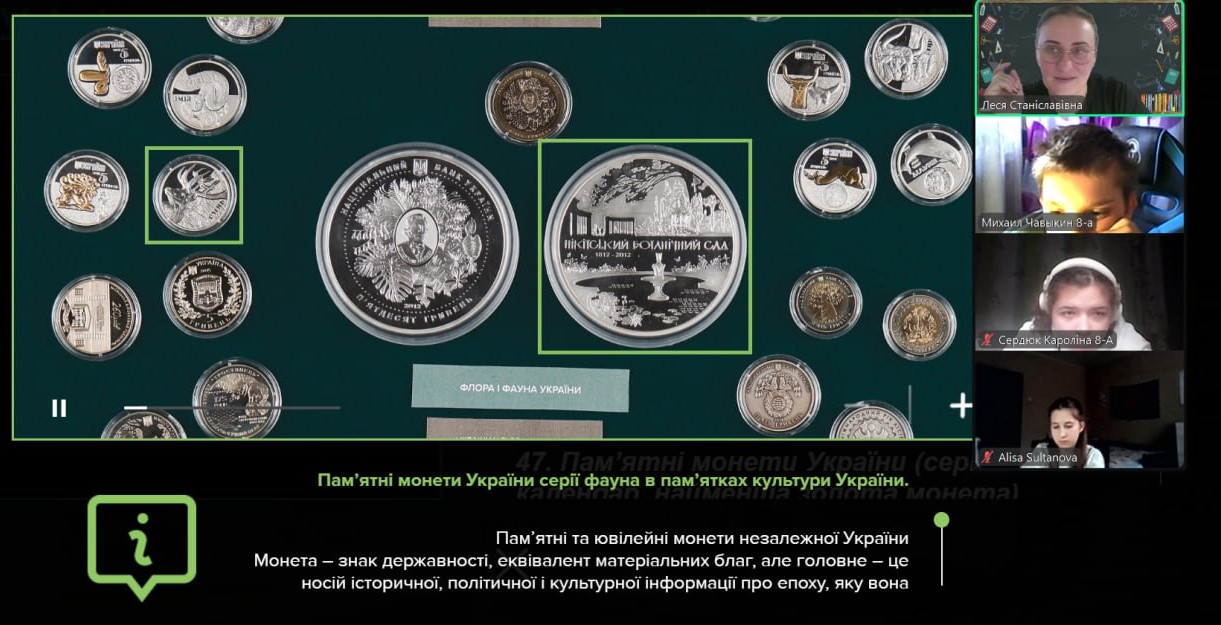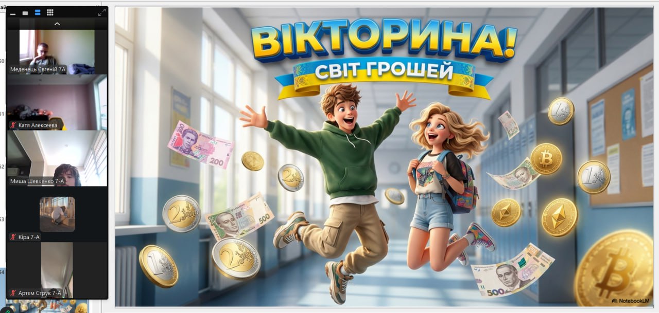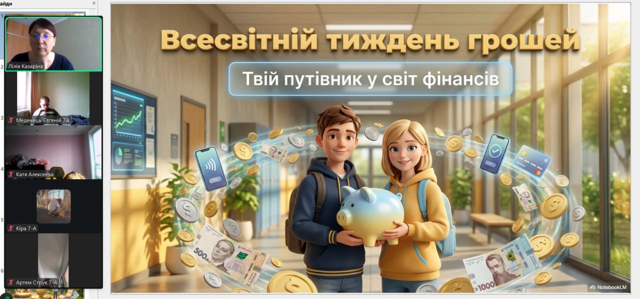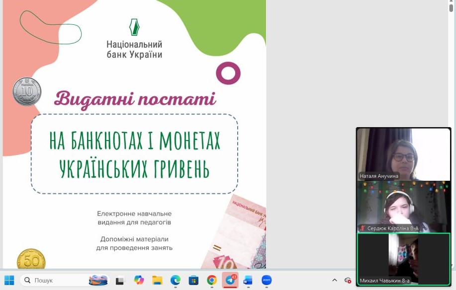 Онлайн-екскурсія до музею грошей стала справжнім відкриттям. Учні з цікавістю розглядали старовинні монети, дивувалися їхньому вигляду та обговорювали, як змінювалися гроші з часом. Старші учні активно дискутували про кредити — хтось вважав їх корисними, а хтось ризикованими. Було приємно спостерігати, як формується власна думка. Розповіді про українську гривню викликали гордість та інтерес — багато хто вперше звернув увагу на деталі, які раніше здавалися непомітними.