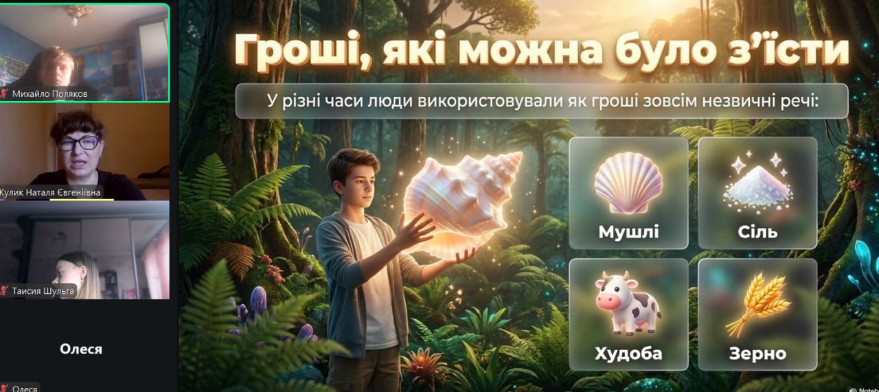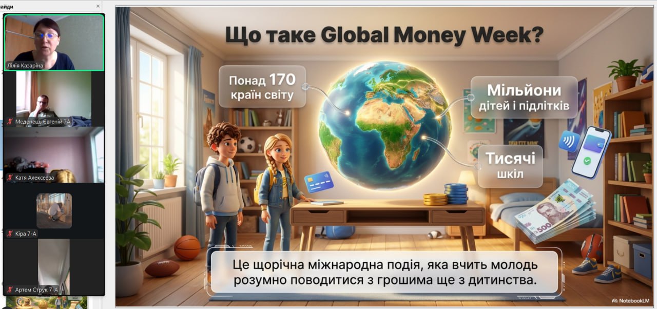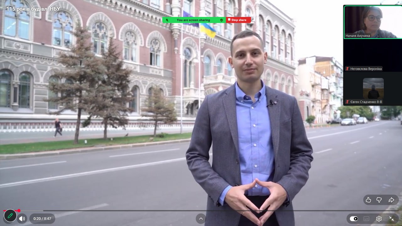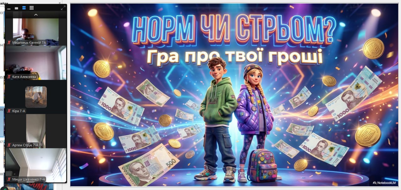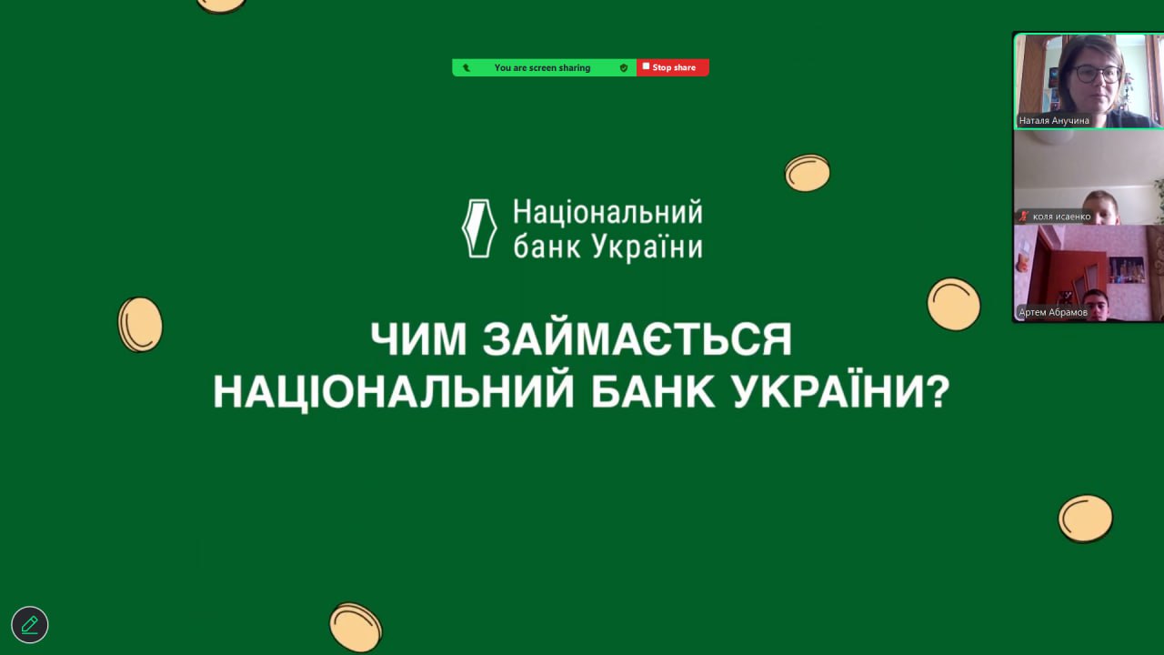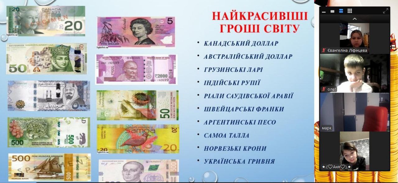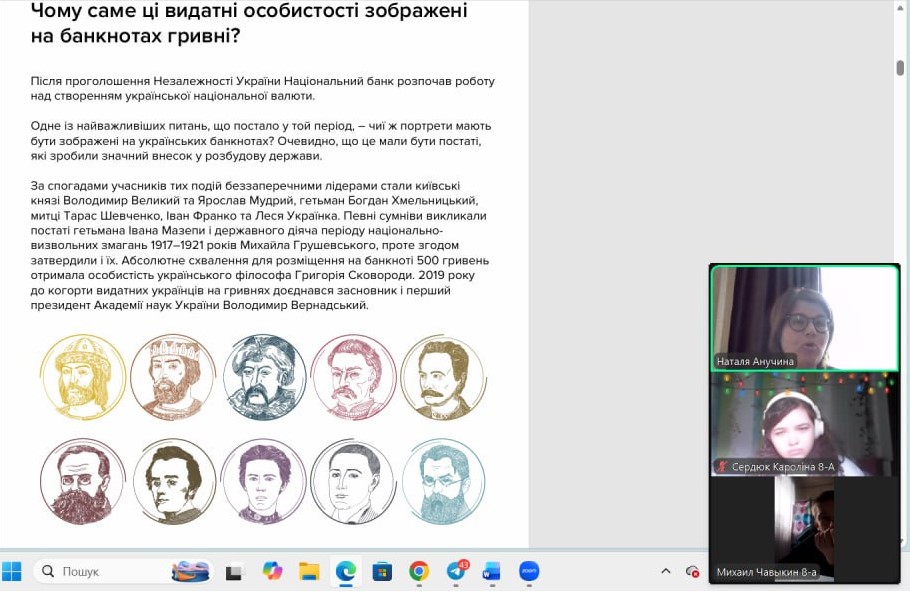 Онлайн-екскурсія до музею грошей стала справжнім відкриттям. Учні з цікавістю розглядали старовинні монети, дивувалися їхньому вигляду та обговорювали, як змінювалися гроші з часом. Старші учні активно дискутували про кредити — хтось вважав їх корисними, а хтось ризикованими. Було приємно спостерігати, як формується власна думка. Розповіді про українську гривню викликали гордість та інтерес — багато хто вперше звернув увагу на деталі, які раніше здавалися непомітними.
