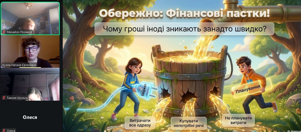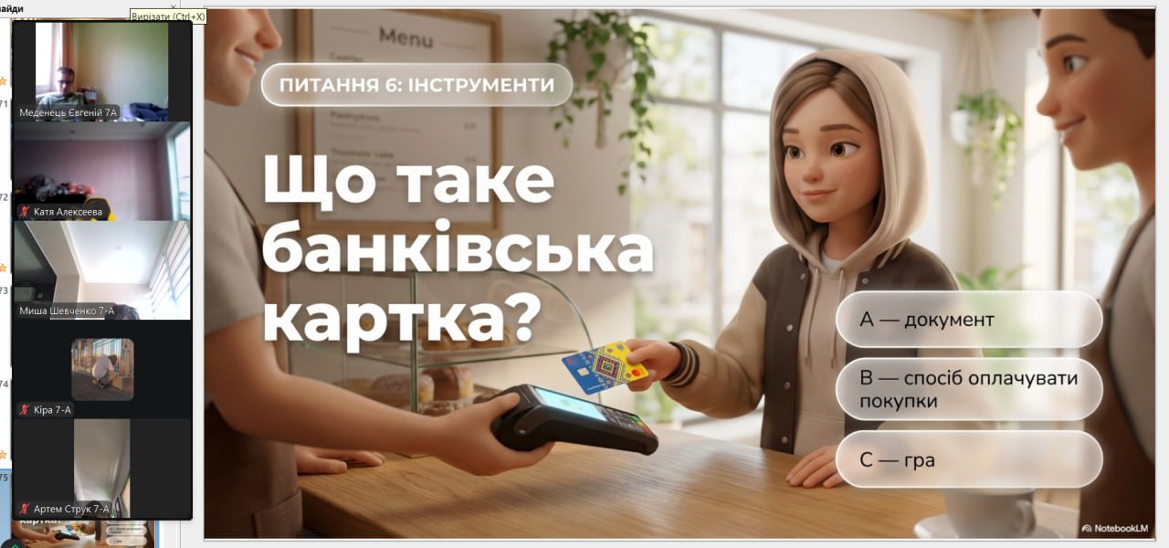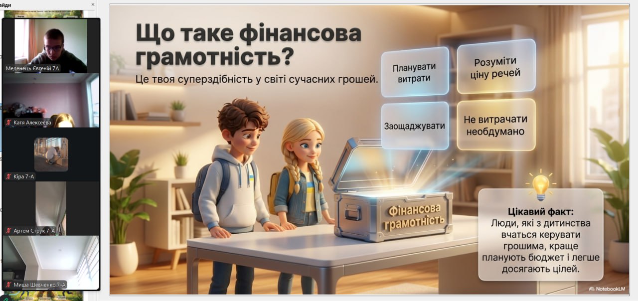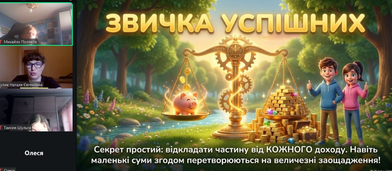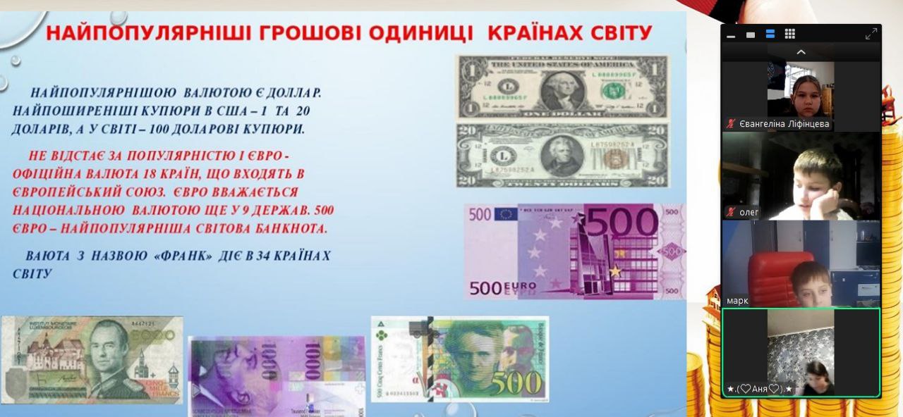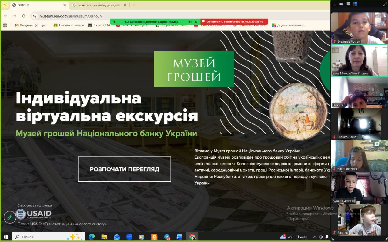 Онлайн-екскурсія до музею грошей стала справжнім відкриттям. Учні з цікавістю розглядали старовинні монети, дивувалися їхньому вигляду та обговорювали, як змінювалися гроші з часом. Старші учні активно дискутували про кредити — хтось вважав їх корисними, а хтось ризикованими. Було приємно спостерігати, як формується власна думка. Розповіді про українську гривню викликали гордість та інтерес — багато хто вперше звернув увагу на деталі, які раніше здавалися непомітними.