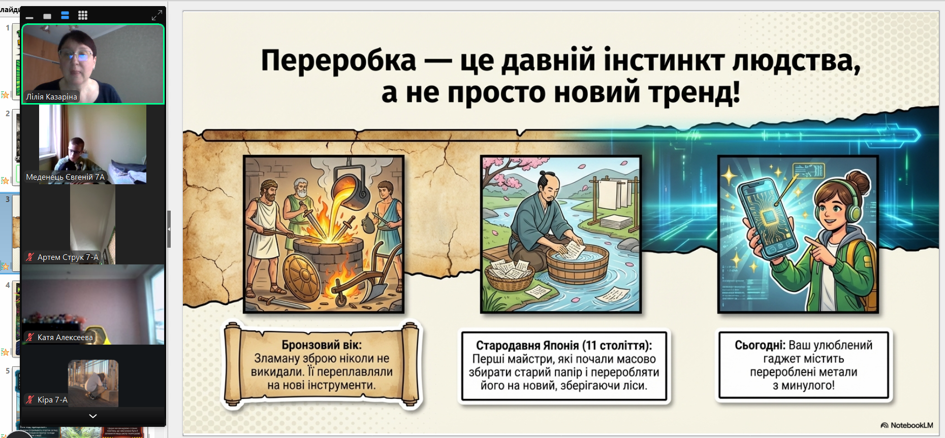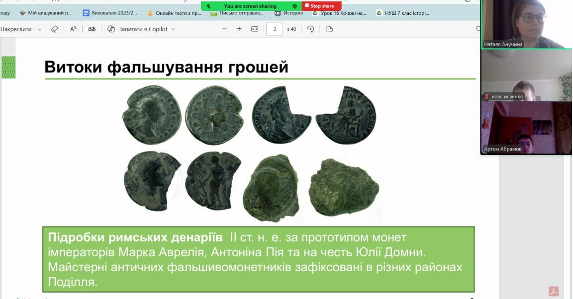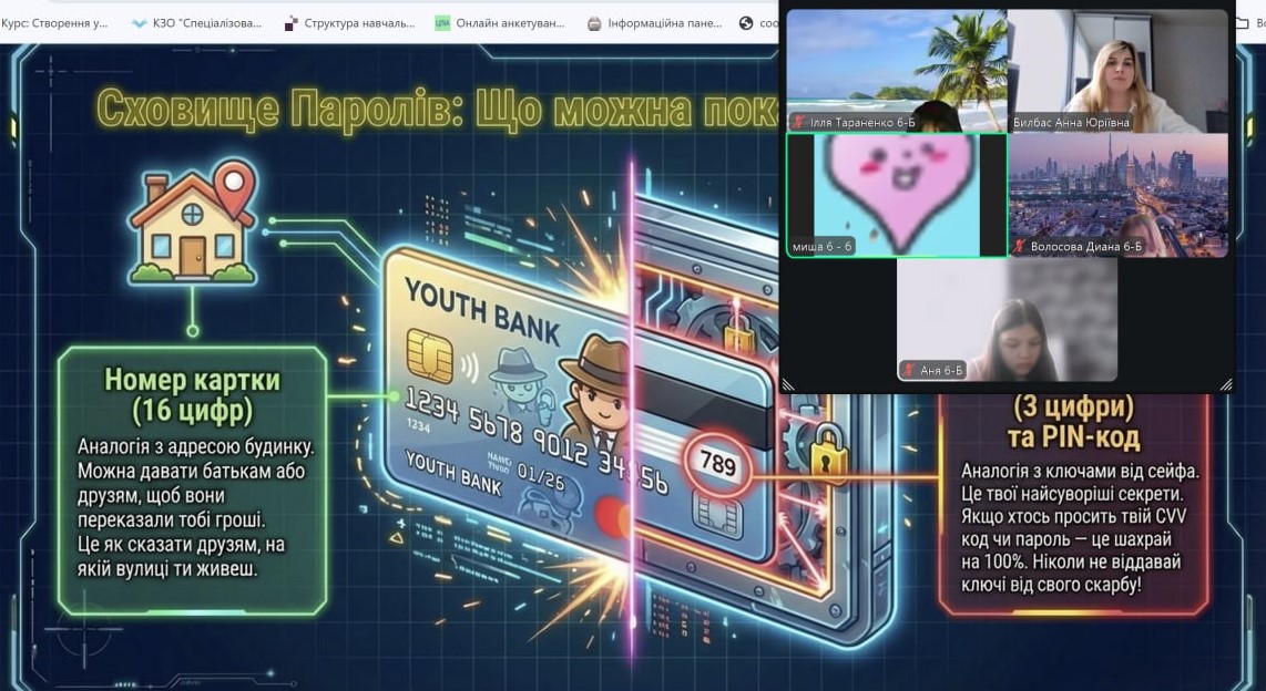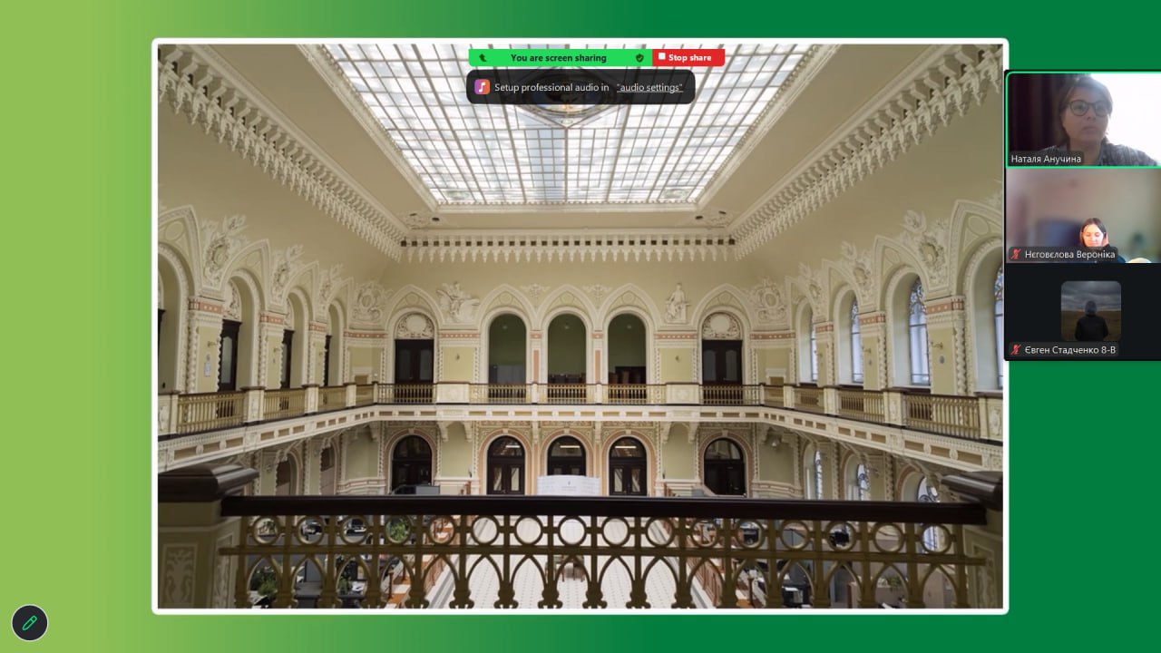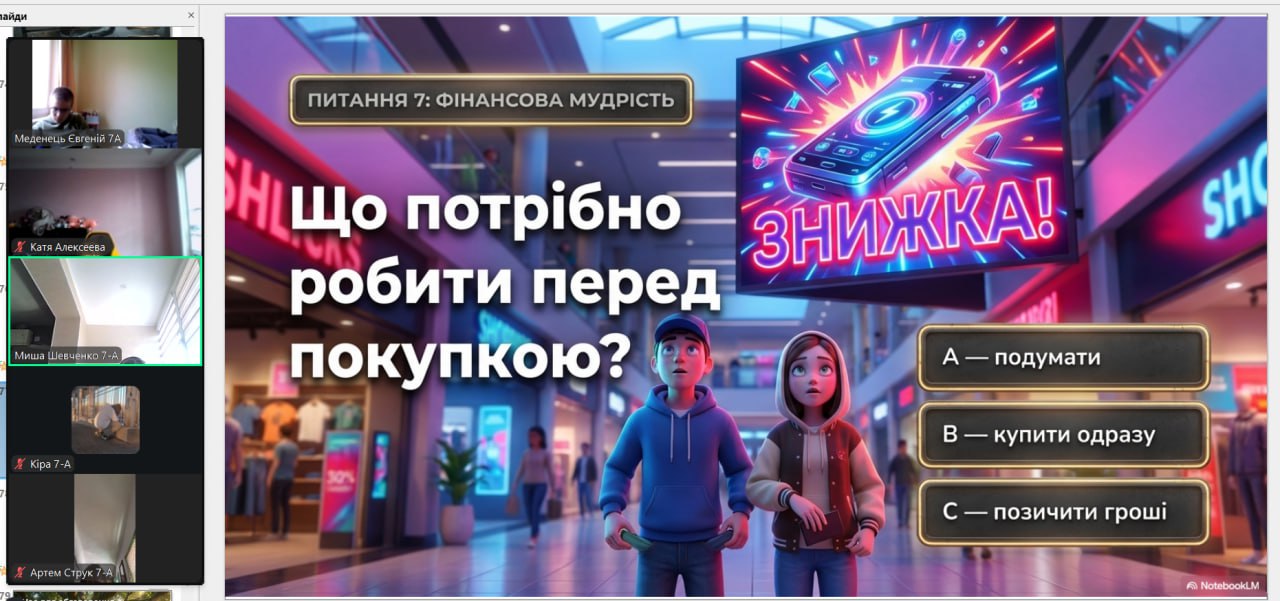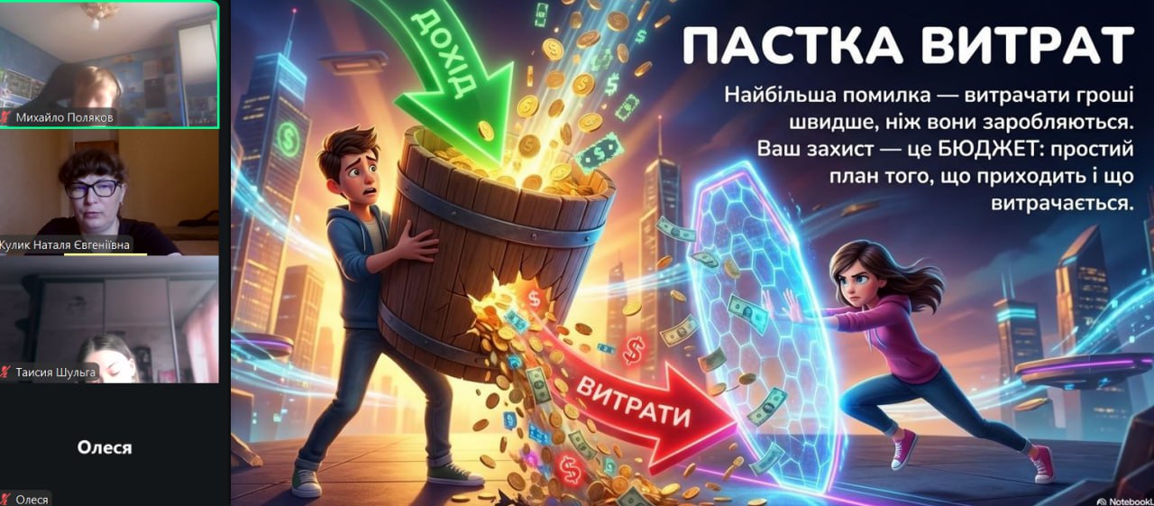 Онлайн-екскурсія до музею грошей стала справжнім відкриттям. Учні з цікавістю розглядали старовинні монети, дивувалися їхньому вигляду та обговорювали, як змінювалися гроші з часом. Старші учні активно дискутували про кредити — хтось вважав їх корисними, а хтось ризикованими. Було приємно спостерігати, як формується власна думка. Розповіді про українську гривню викликали гордість та інтерес — багато хто вперше звернув увагу на деталі, які раніше здавалися непомітними.