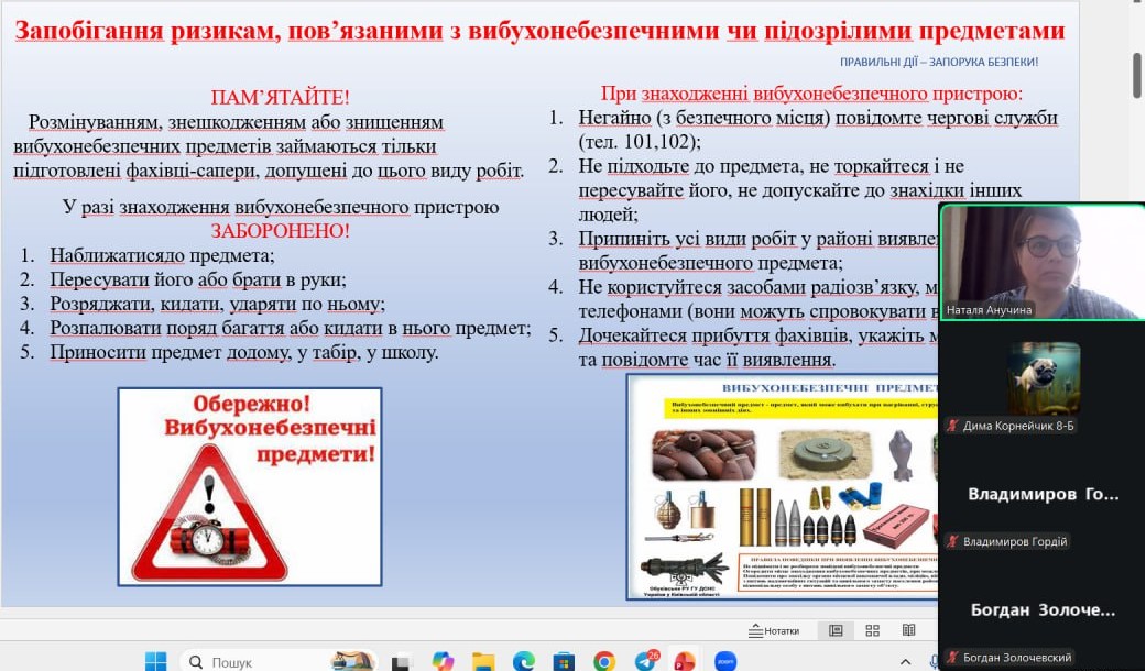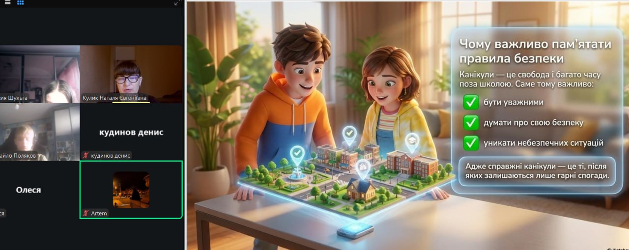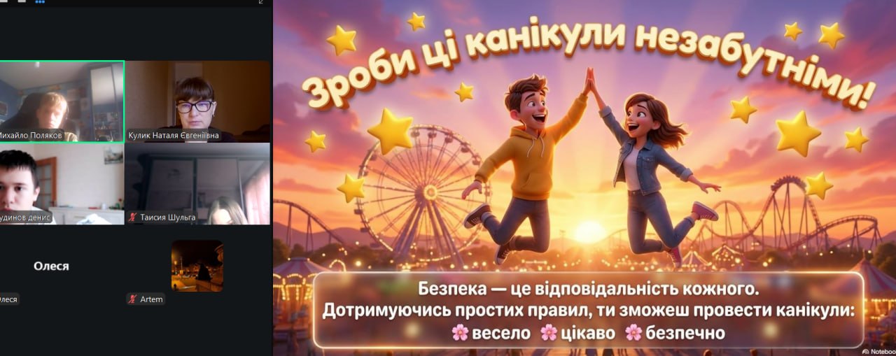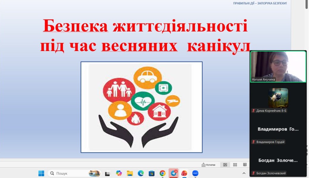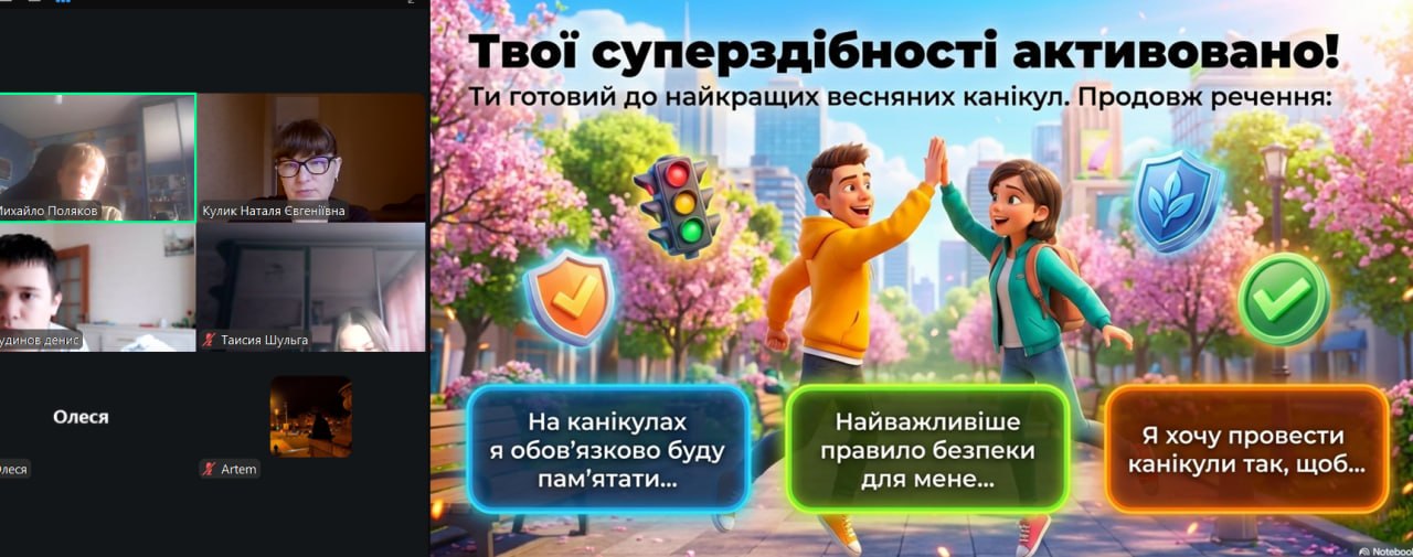 Весна — це час оновлення, теплих днів і довгоочікуваного відпочинку. Проте, щоб весняні канікули залишили лише приємні спогади, важливо пам’ятати, що безпека — це не обмеження свободи, а запорука гарного настрою та здоров’я. З учнями 1-9-х класів проведені бесіди про правила безпеки на канікулах: правила поведінки на водоймах, вкритих кригою; правила поведінки на воді (танення льоду); поведінки під час ожеледиці; правила поведінки під час повітряної тривоги; правила пожежної безпеки під час святкування новорічних свят; правила протипожежної безпеки; безпека вдома; безпека на вулиці; безпека в громадських місцях; правила дорожнього руху (самокати, велосипеди); інтернет-безпеку (кібербулінг, шахраї); номери екстрених служб тощо