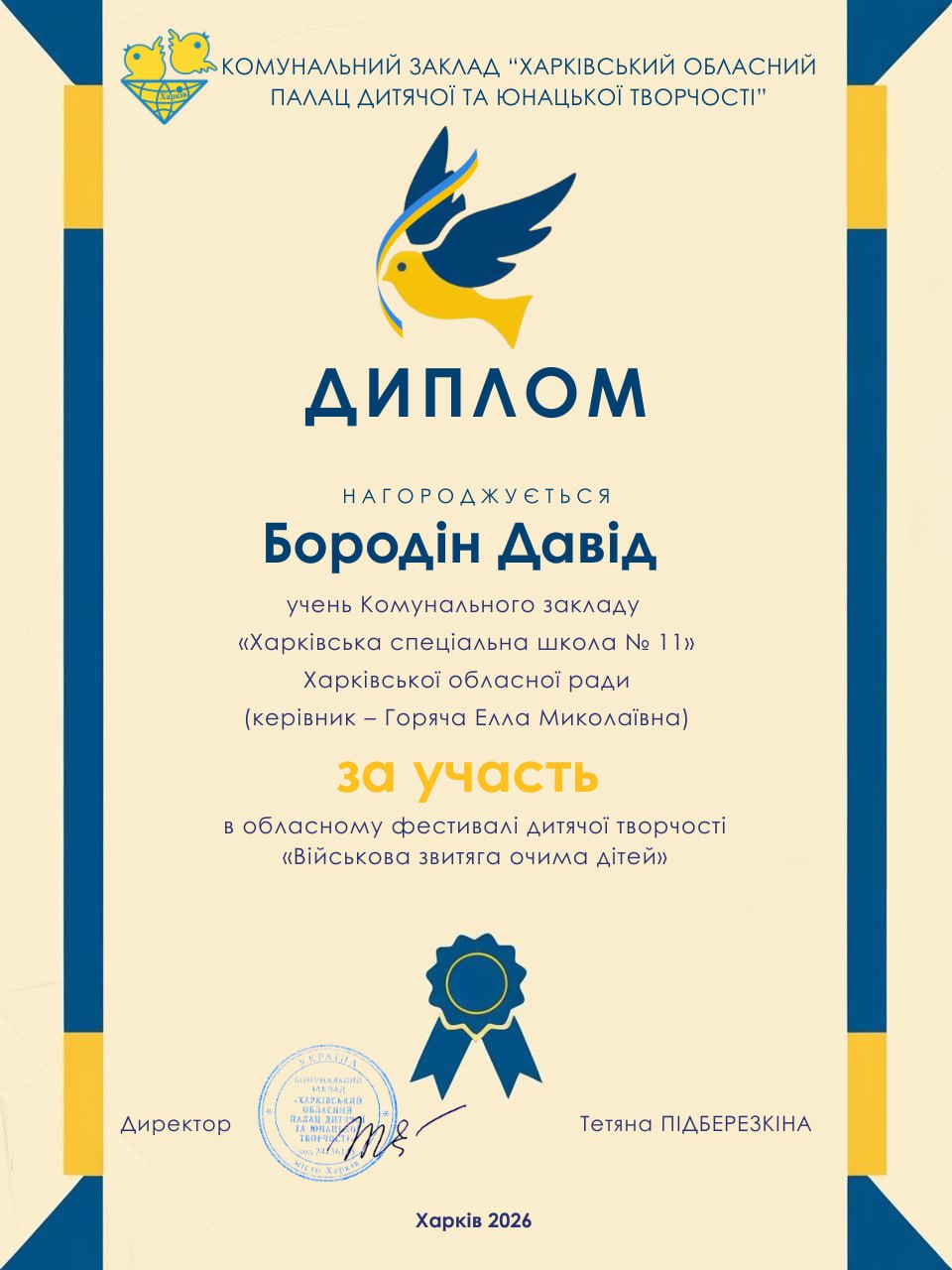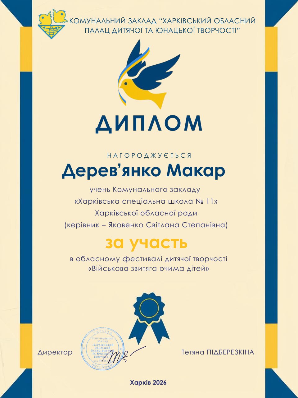 Пишаємося нашими переможцями, які отримали почесні дипломи від Харківського обласного Палацу дитячої та юнацької творчості: