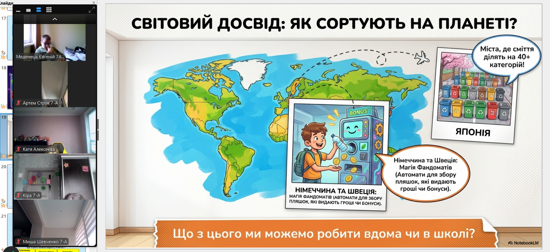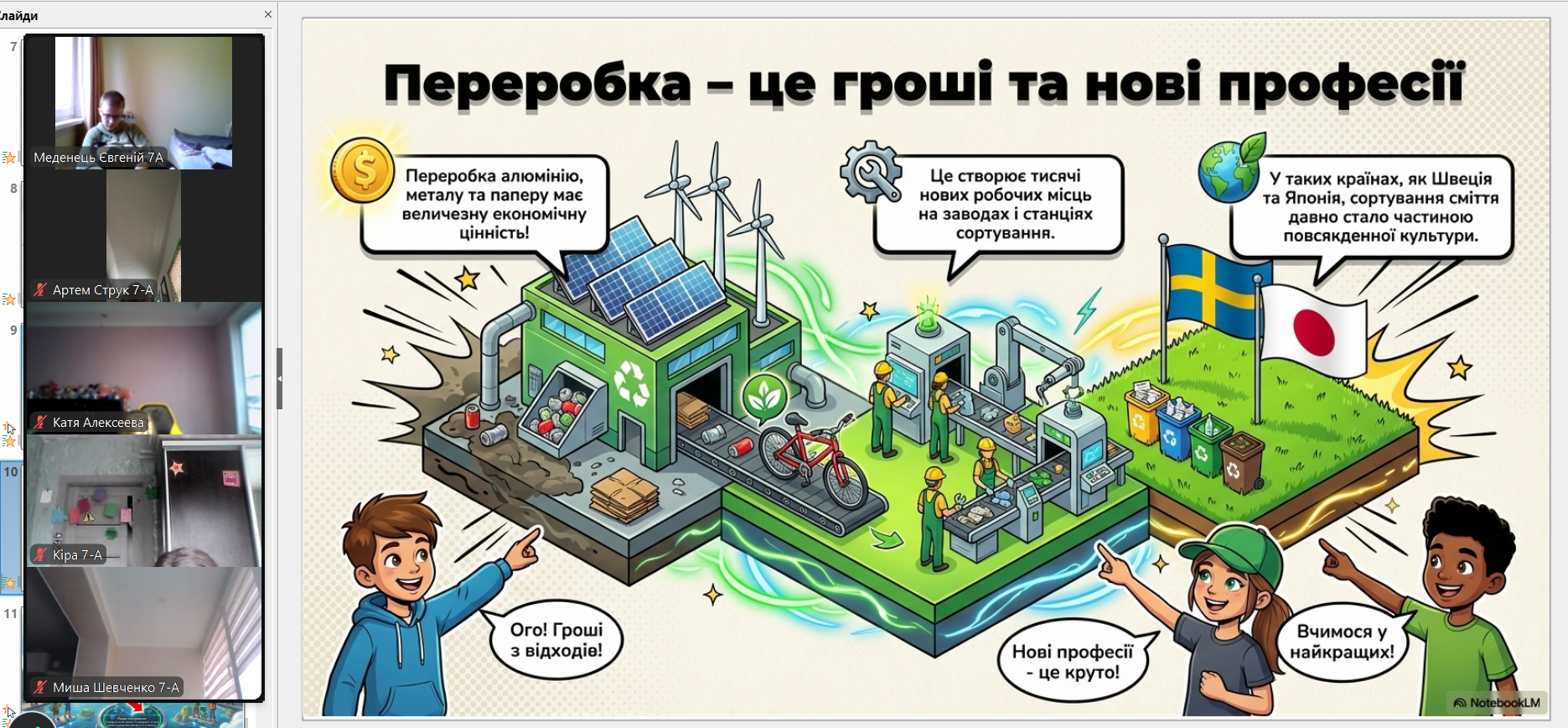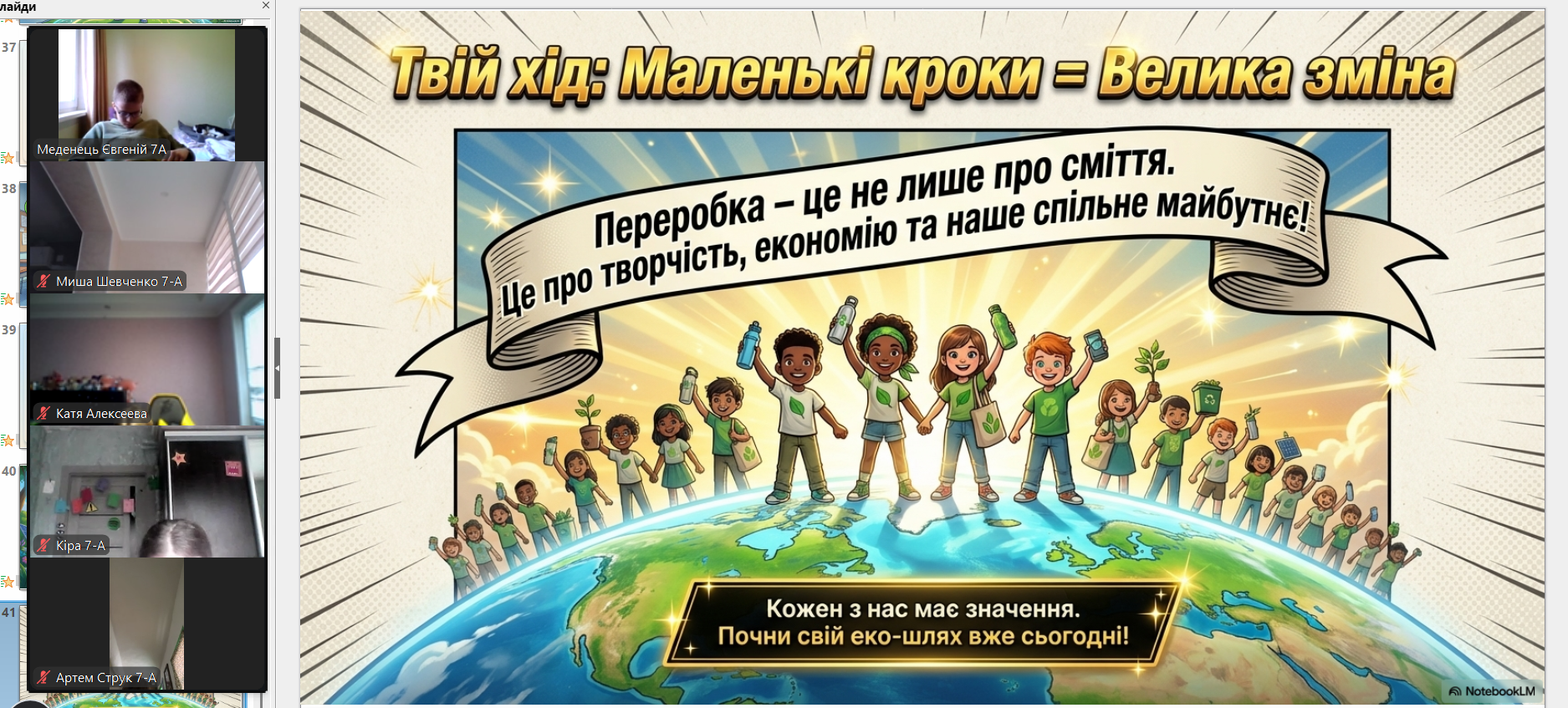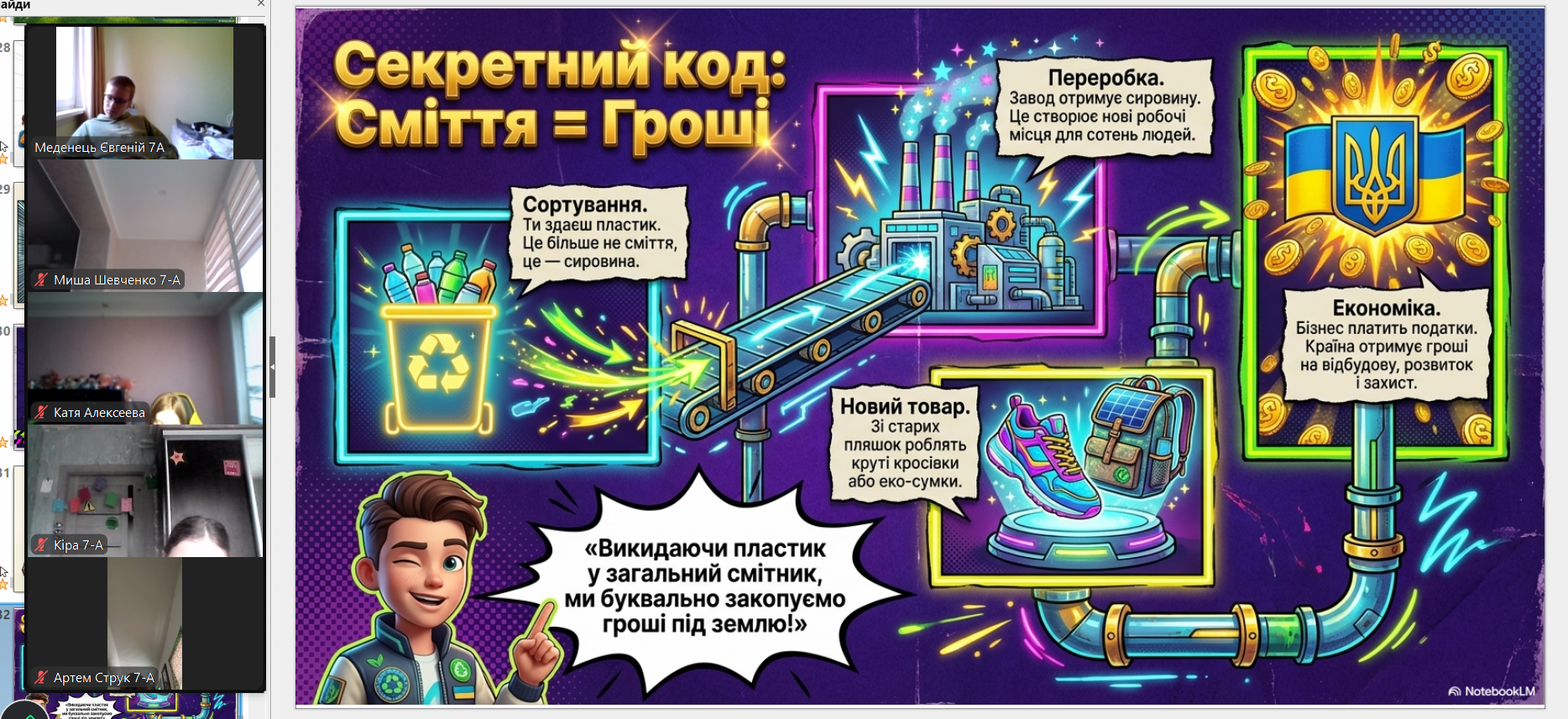 Всесвітній день переробки (Global Recycling Day) відзначається щорічно 18 березня (започаткований у 2018 році), щоб привернути увагу до раціонального використання ресурсів та сортування сміття. Головна мета – перетворити відходи на цінні ресурси, зменшити їх кількість на полігонах та зберегти довкілля, підтримуючи принципи «сміття – це ресурс» з вихованцями 7-А класу проведена виховна година. Учні вчилися сприймати сміття як цінний ресурс, обговорили правила сортування та важливість вторинної переробки для збереження довкілля. Формуємо екозвички разом!
