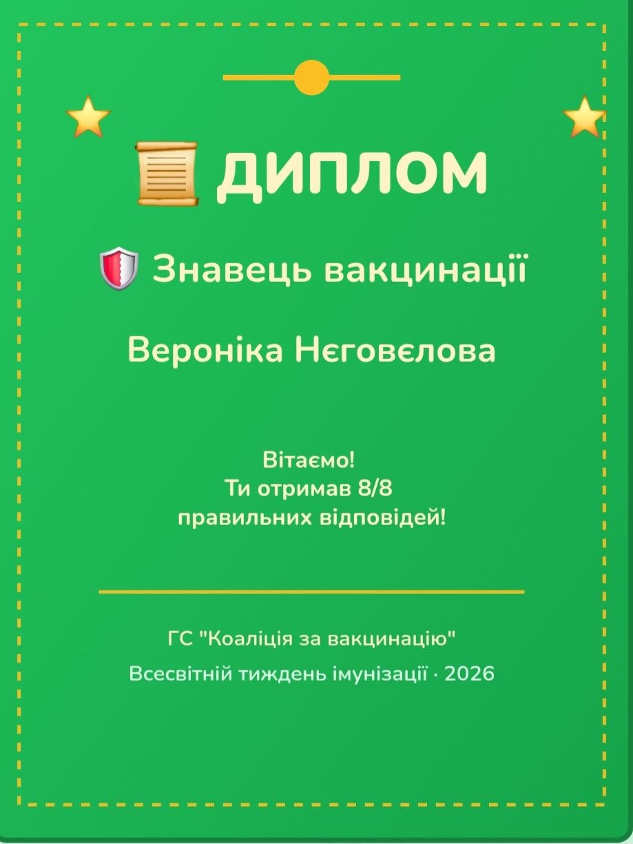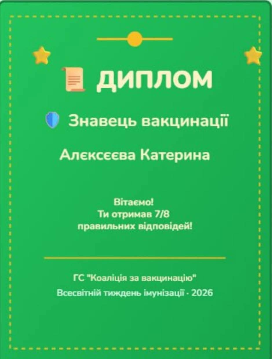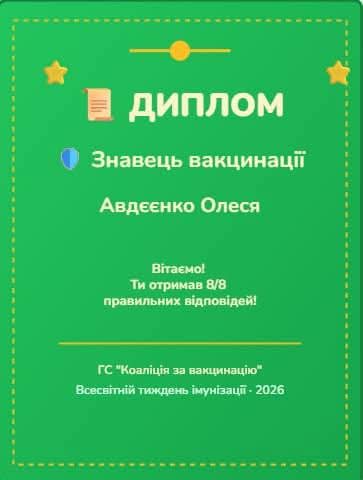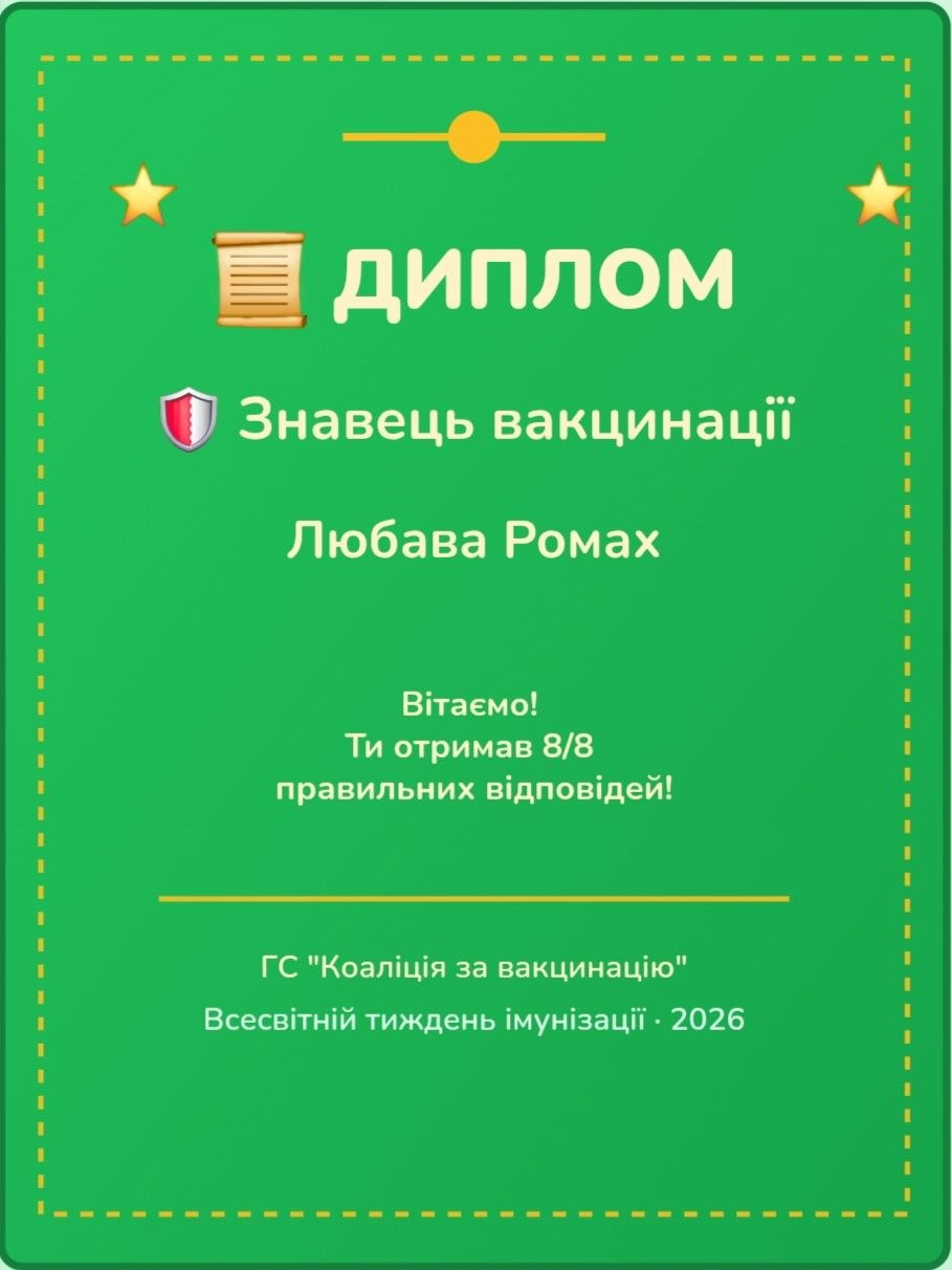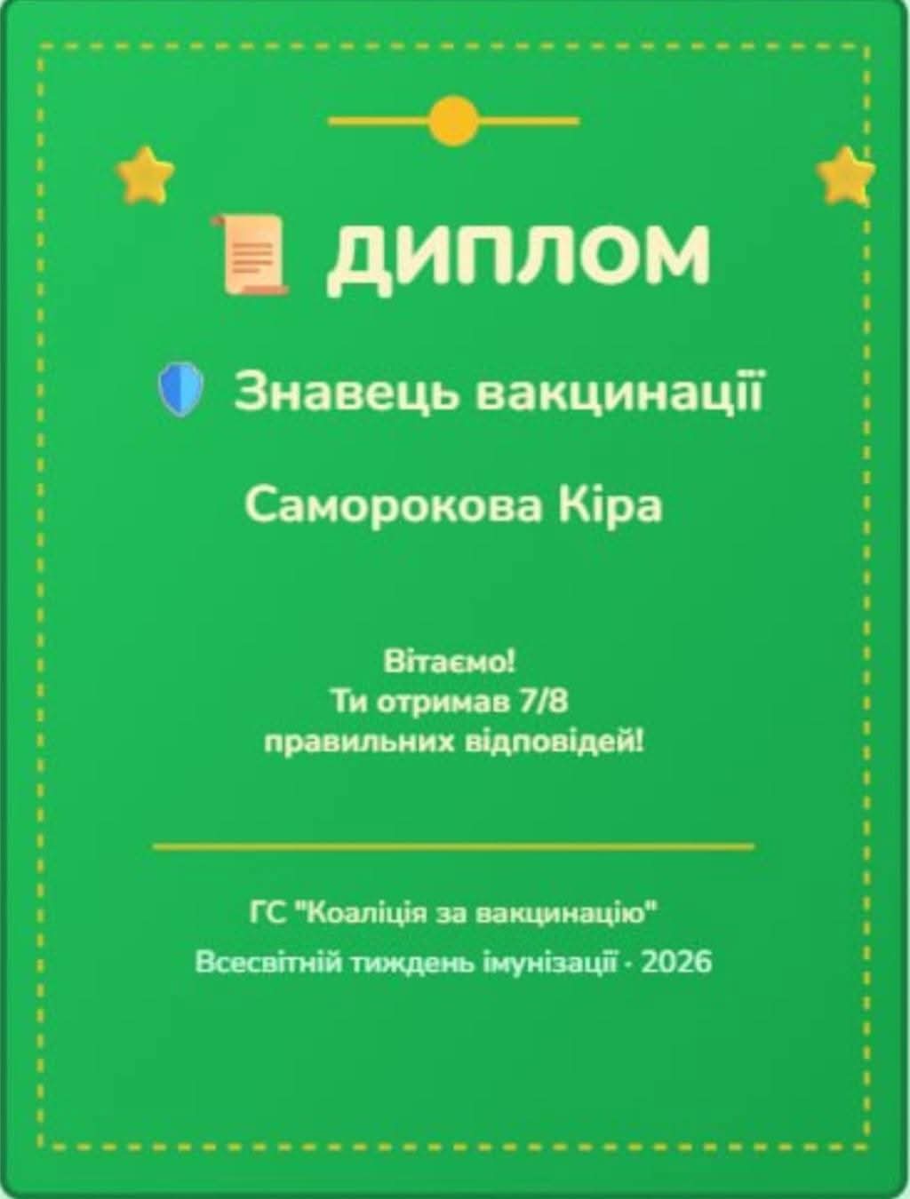 Використовуючи матеріали, надані ГС «Коаліція за вакцинацію», ми провели інтерактивну вікторину про силу імунітету та роль щеплень у нашому житті.