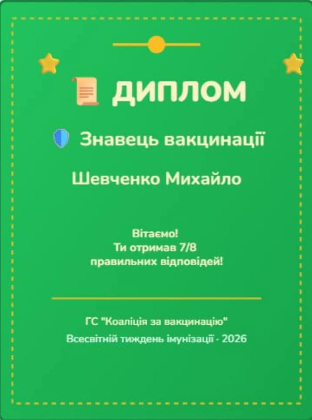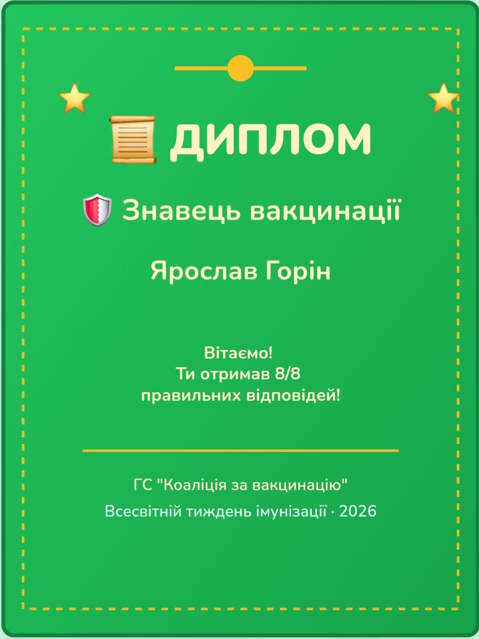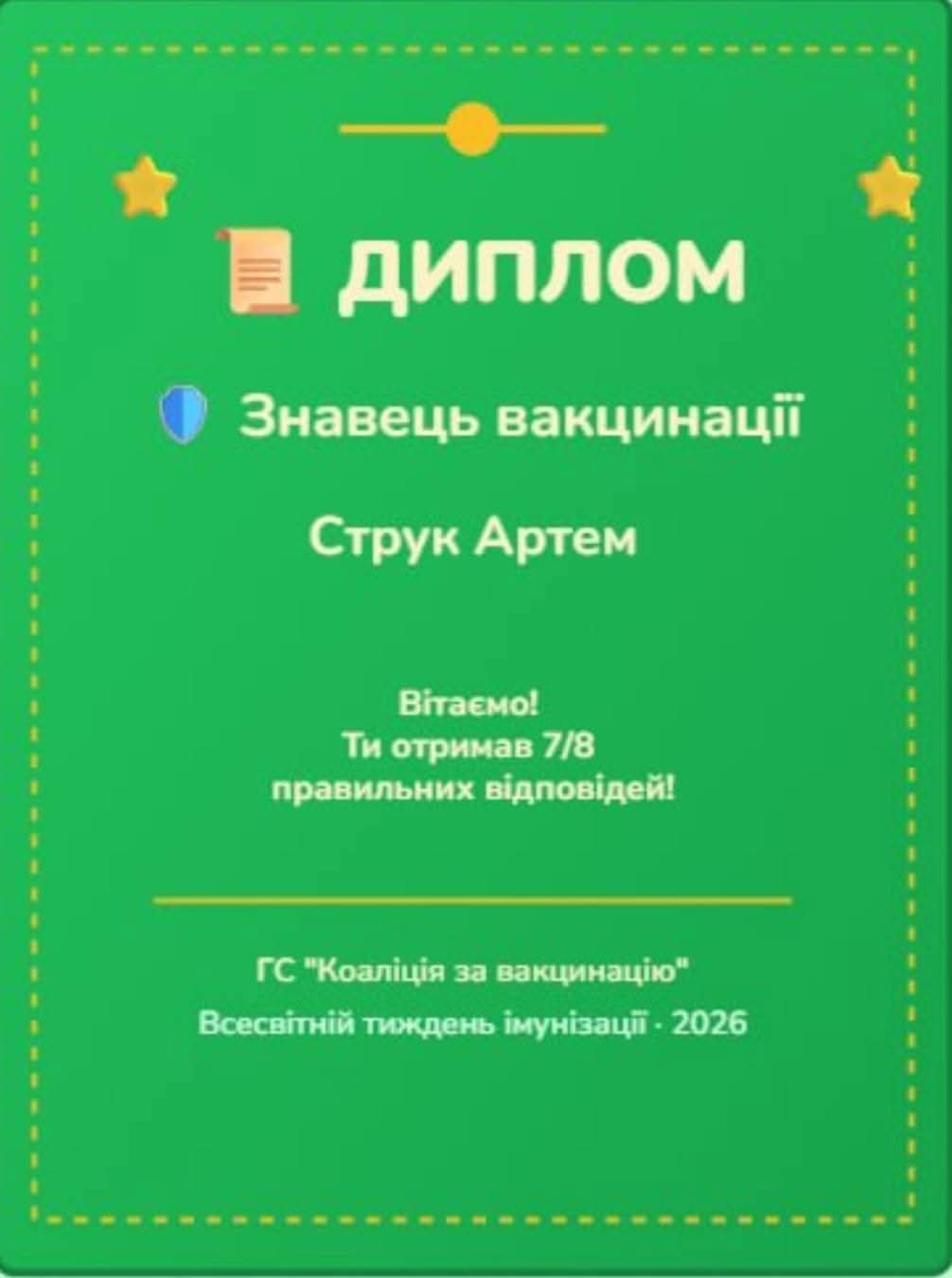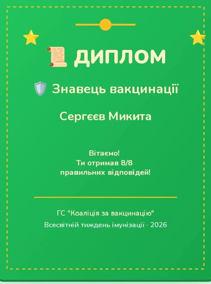 Використовуючи матеріали, надані ГС «Коаліція за вакцинацію», ми провели інтерактивну вікторину про силу імунітету та роль щеплень у нашому житті.
