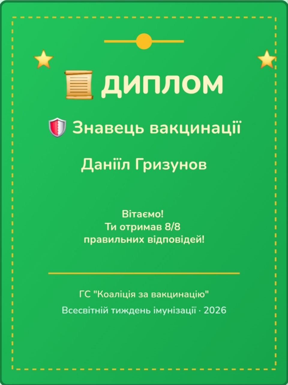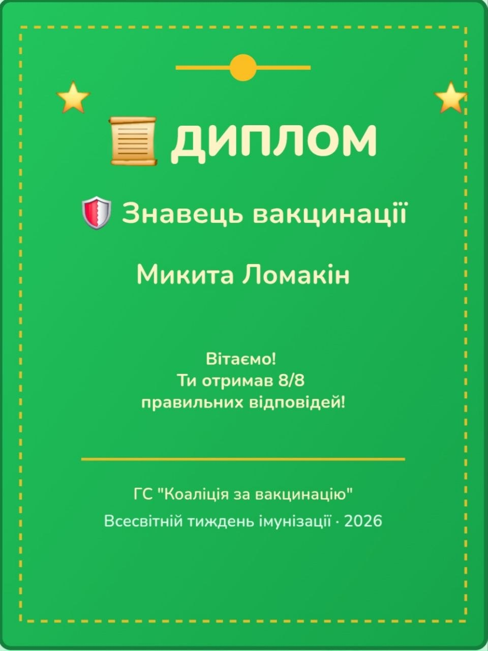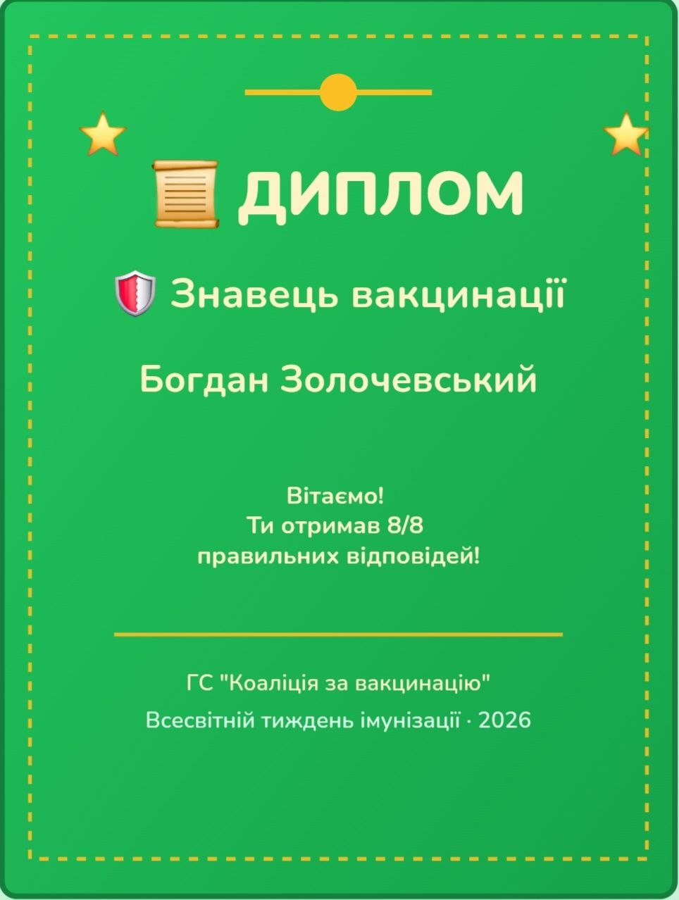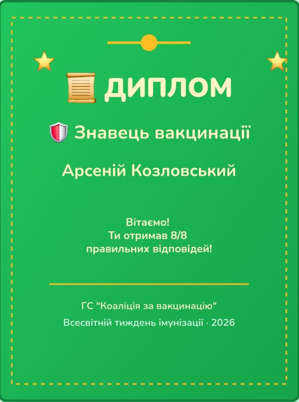 Використовуючи матеріали, надані ГС «Коаліція за вакцинацію», ми провели інтерактивну вікторину про силу імунітету та роль щеплень у нашому житті.