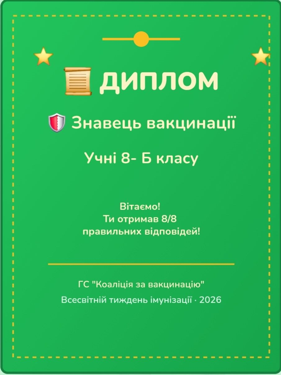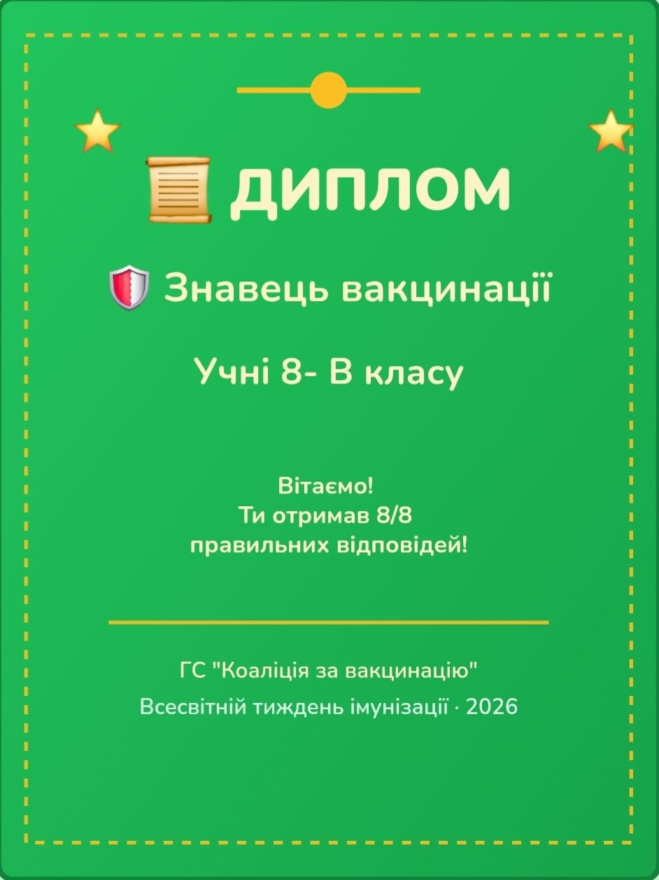 До відзначення Всесвітнього тижня імунізації учні 2, 7-А, 8-Б, 8-В та 9- А класів нашої школи долучилися до важливої та пізнавальної ініціативи! ✨