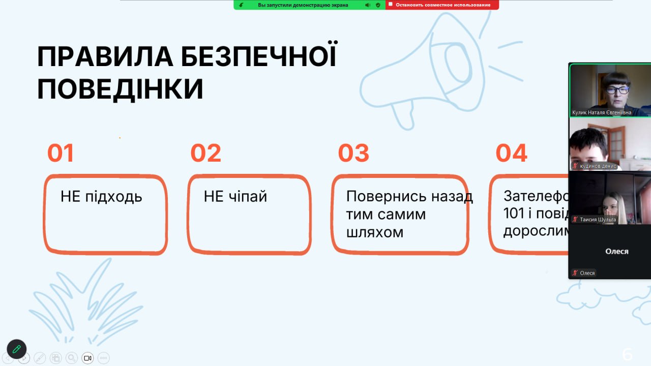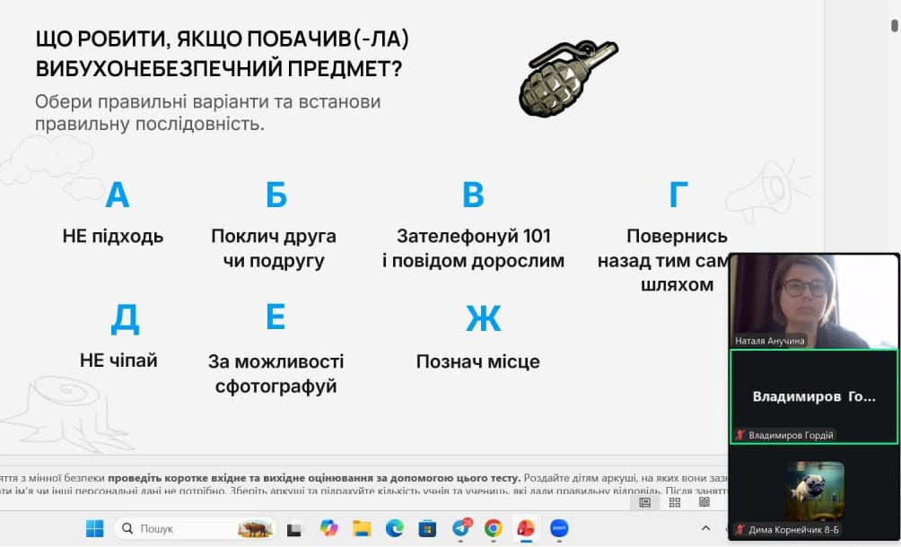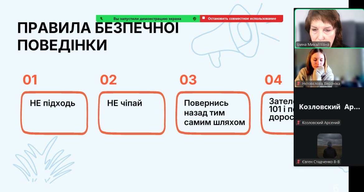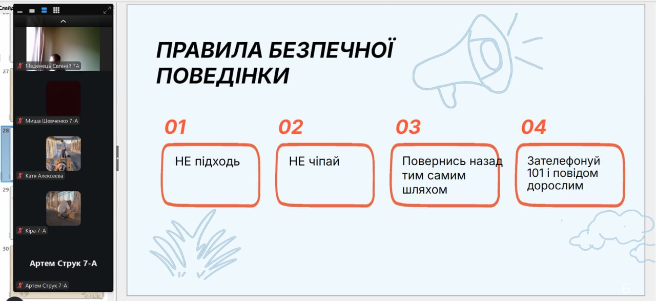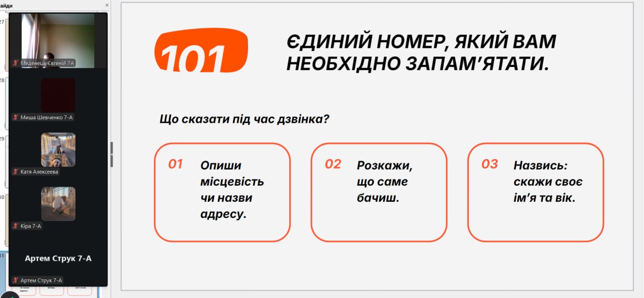 Ці уроки – найважливіший іспит у житті. Ми заохочуємо кожного бути активним: обговорюйте правила поза уроками, діліться порадами від рятувальників та будьте пильними. Наша школа — це середовище відповідальних та захищених людей!