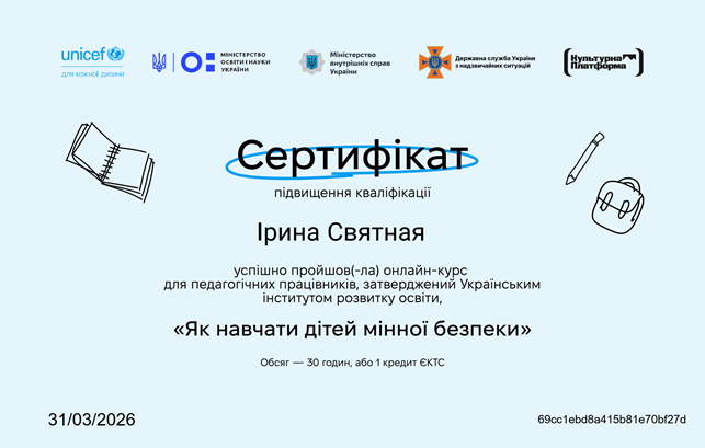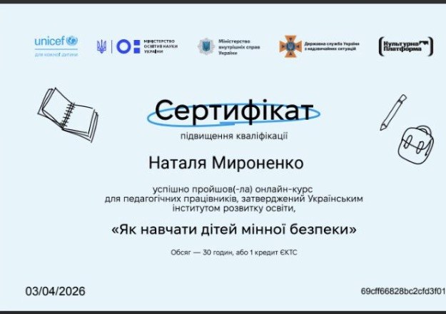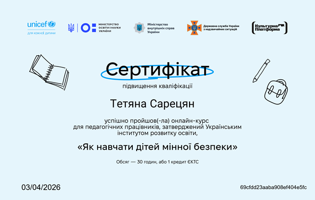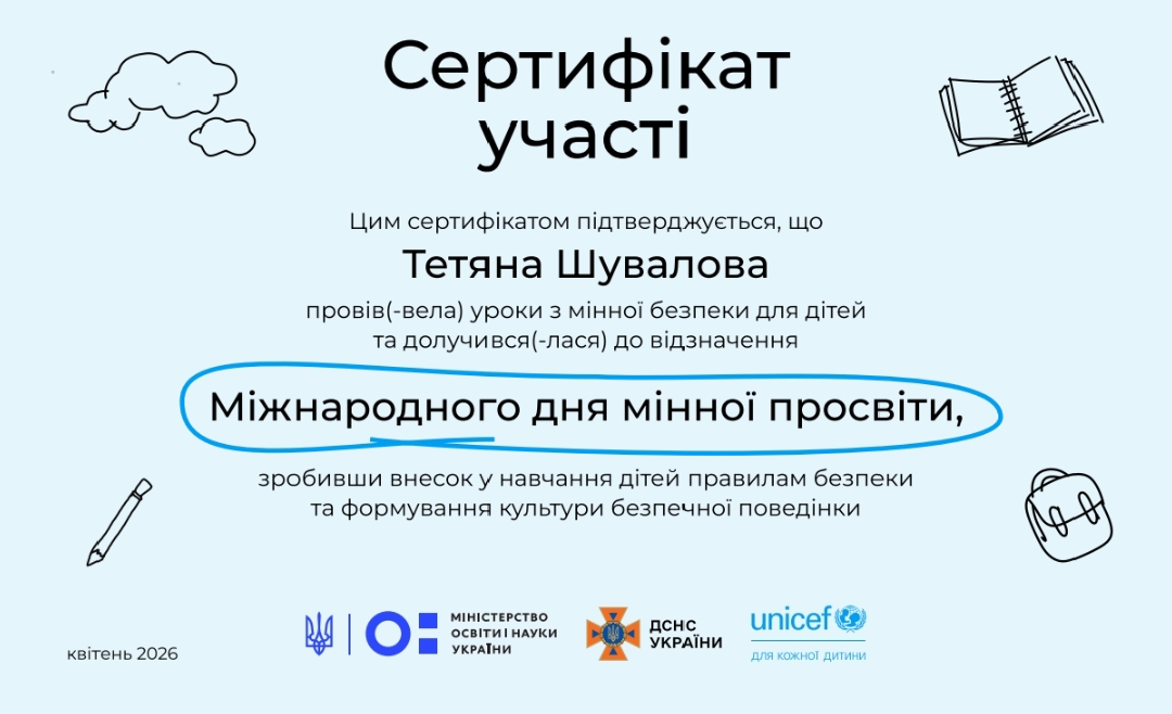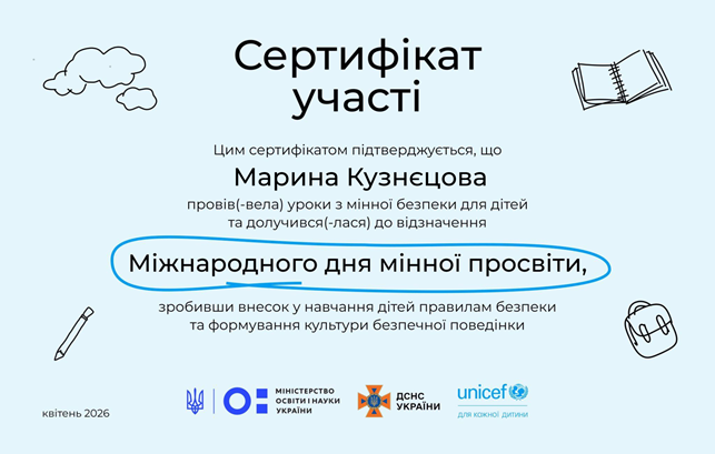 А вчителі та вихователі отримали сертифікати за цікаво проведені заходи, зробивши внесок у навчання дітей правилам мінної безпеки та безпечної поведінки.