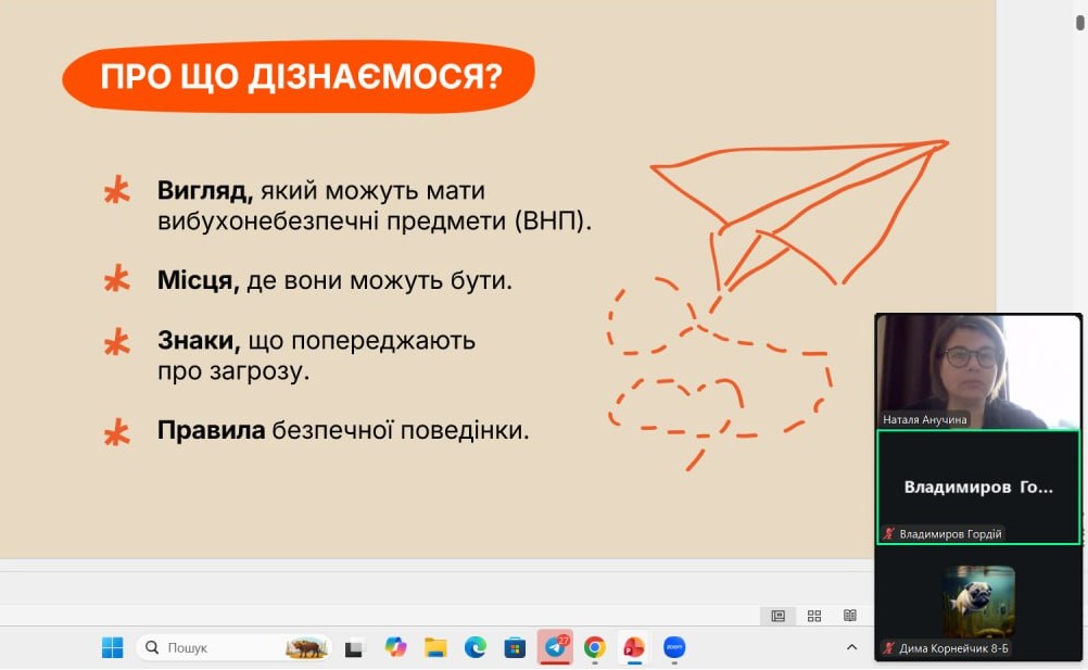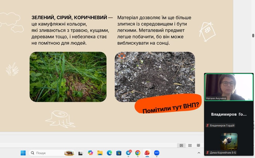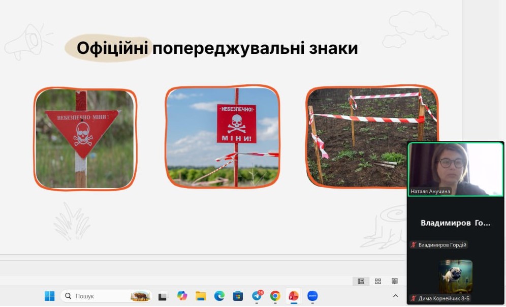 У межах тижня мінної просвіти ми об’єднали всю шкільну родину. Молодша школа разом із псом Патроном через цікаві мультфільми, ігри та квести вчилася розпізнавати небезпечні «сюрпризи». Старшокласники пройшли серйозні безпекові тренінги, аналізували види загроз та відпрацьовували чіткі алгоритми дій у критичних ситуаціях.