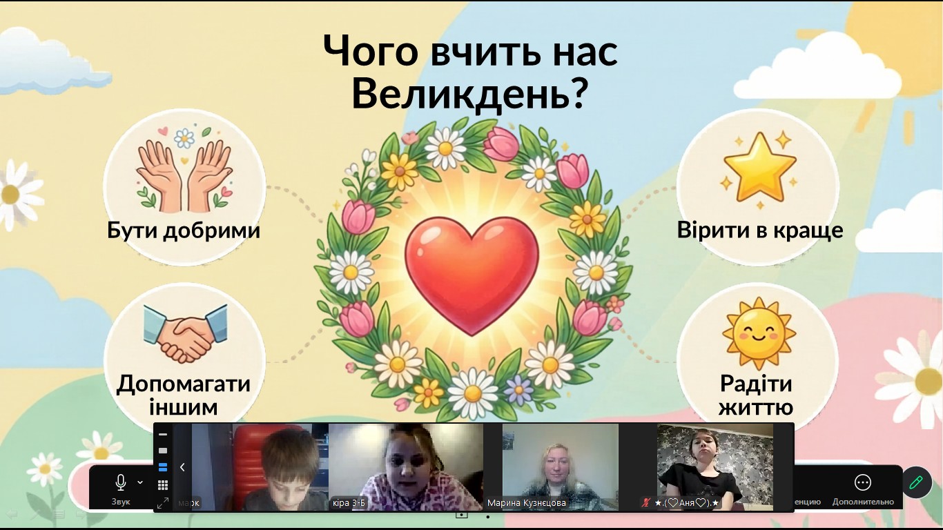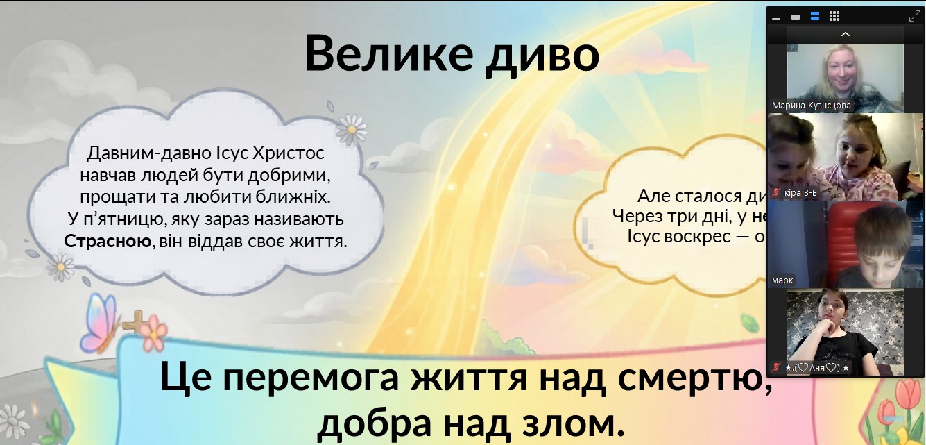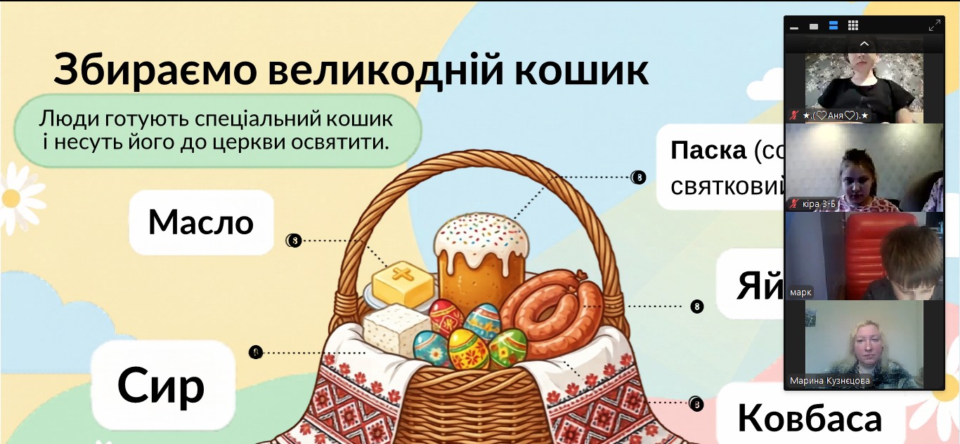 Великдень традиційно відзначається у першу неділю після першого повного місяця весни. За православним календарем, підготовка до Великодня розпочинається з Великого посту, який триває 40 днів і символізує духовне очищення та підготовку до святкування. Цей період є часом молитви, роздумів та утримання від мирських задоволень. З вихованцями початкової школи проведено інтерактивне спілкування на тему “Чому люди відзначають Великдень”