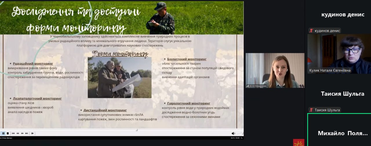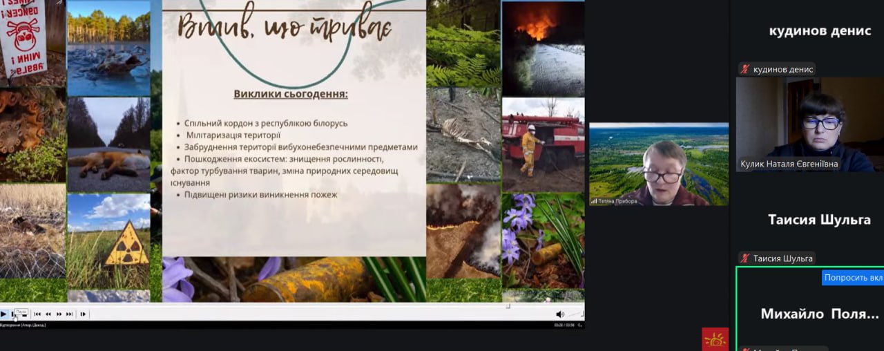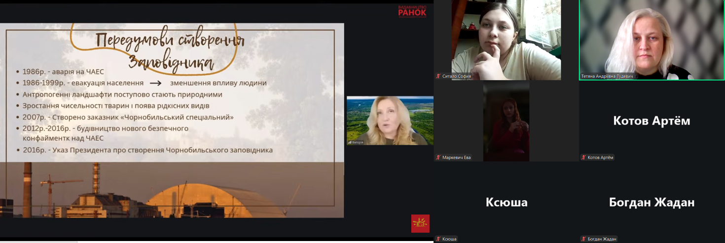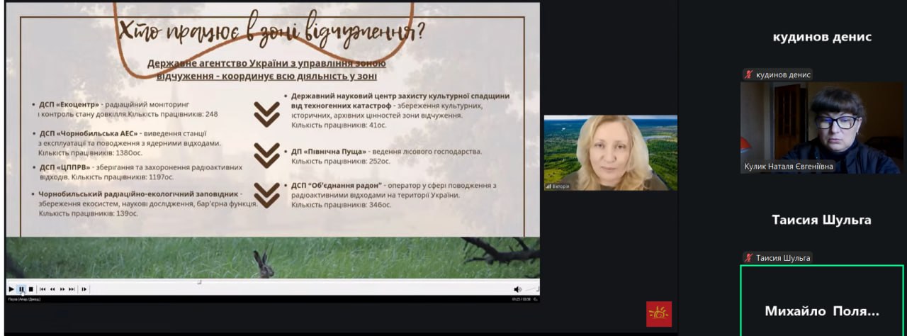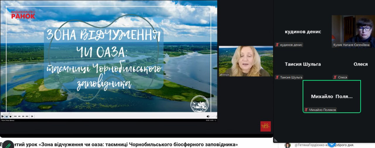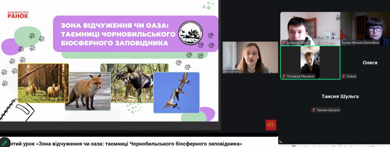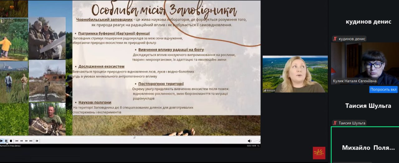 Участь у відкритому уроці «Зона відчуження чи оаза: таємниці Чорнобильського біосферного заповідника»
