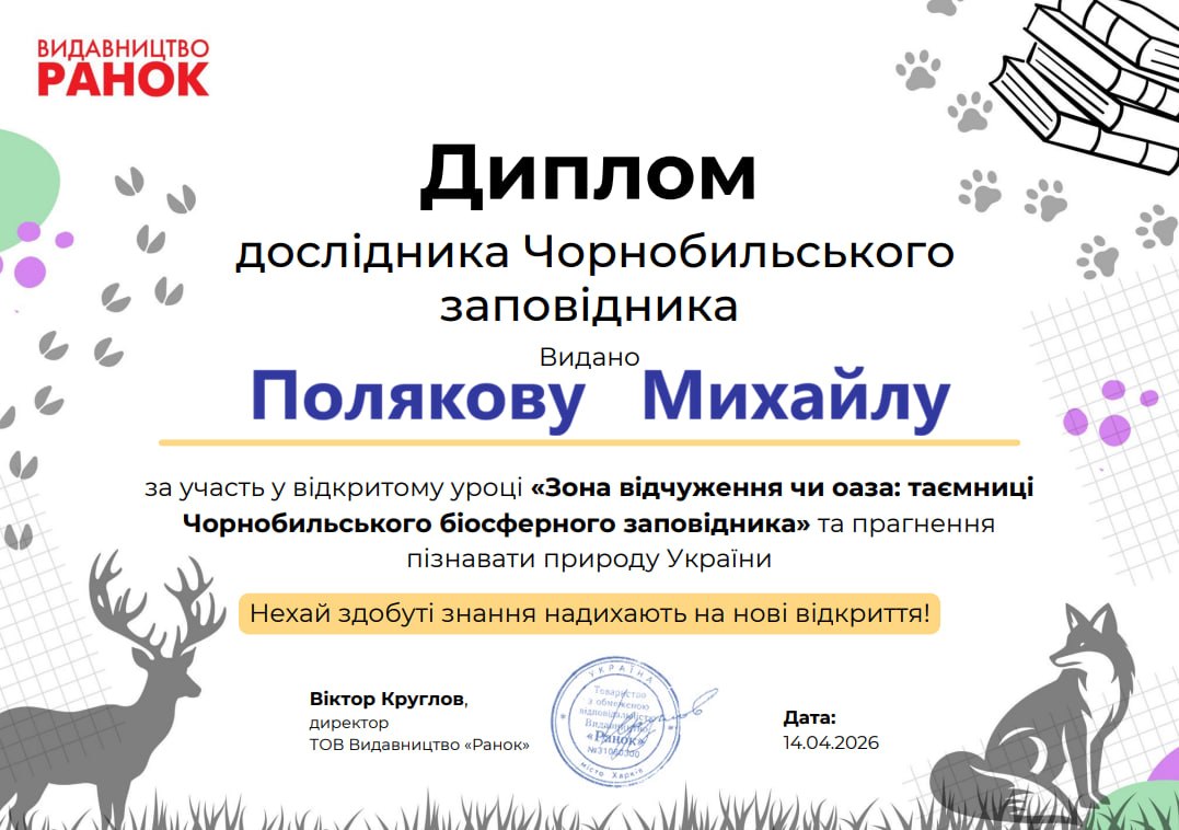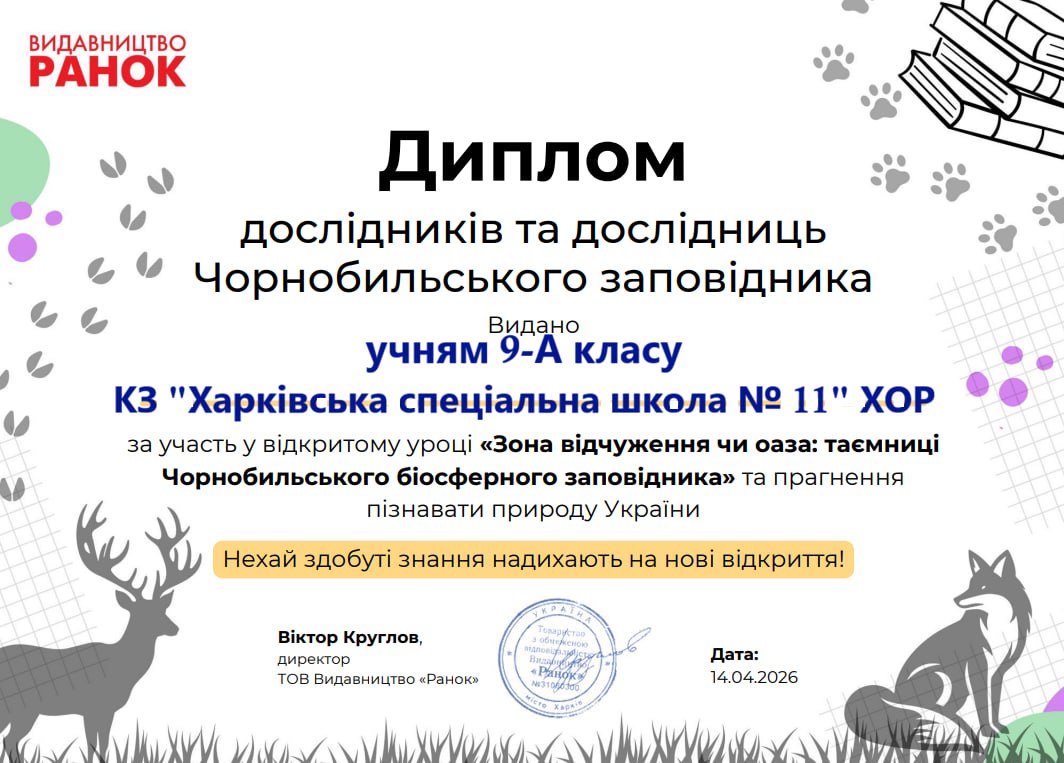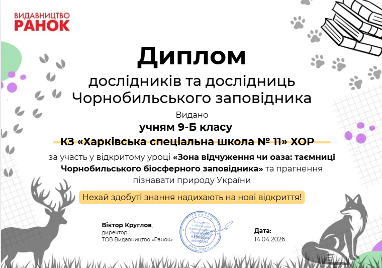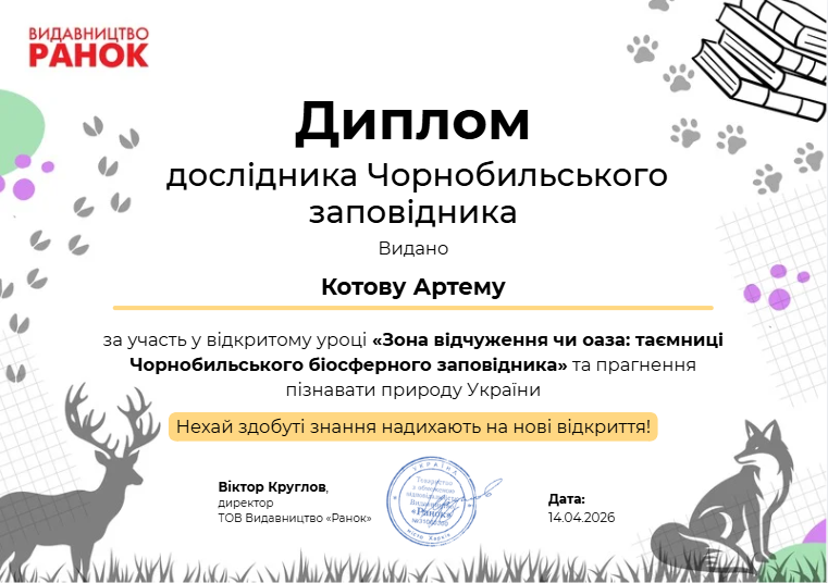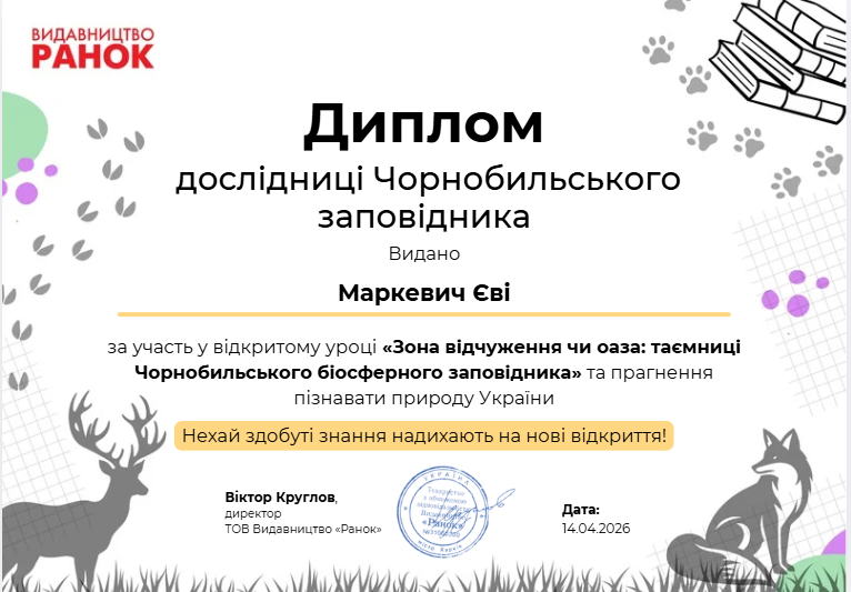 14 квітня з учнями спеціальної школи № 11 вирушили у подорож місцем, яке більшість світу звикла вважати символом катастрофи та «мертвою зоною». Ми часто чуємо про Чорнобиль як про пустку, застиглу в 1986 році. Але чи так це насправді? Останні десятиліття готували для нас неймовірний сюрприз. Там, де пішла людина, залишилася природа. І вона не просто вижила – вона розквітла. Сьогодні ми спробуємо розгадати головну таємницю Чорнобильського біосферного заповідника: чим він є насправді – територією відчуження чи унікальною оазою, де дика природа взяла реванш? З’ясуємо, як без втручання людей відновлюються екосистеми, хто став справжнім господарем цих лісів і чому Чорнобиль сьогодні – це не лише про минуле, а й про майбутнє всієї планети.