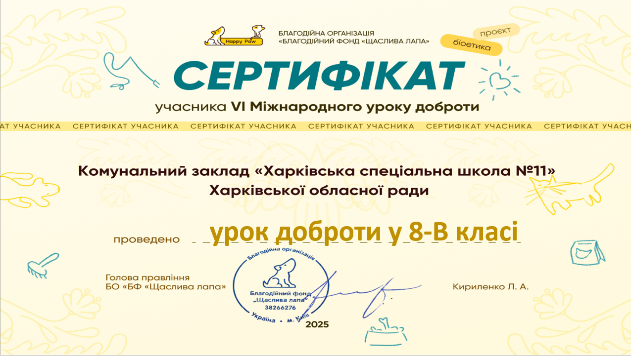 Учні 2-9-х класів взяли участь у Всеукраїнському конкурсі «Захисники та захисниці України» освітнього проекту «На урок», та отримали дипломи І, ІІ та ІІІ ступенів та сертифікати учасників