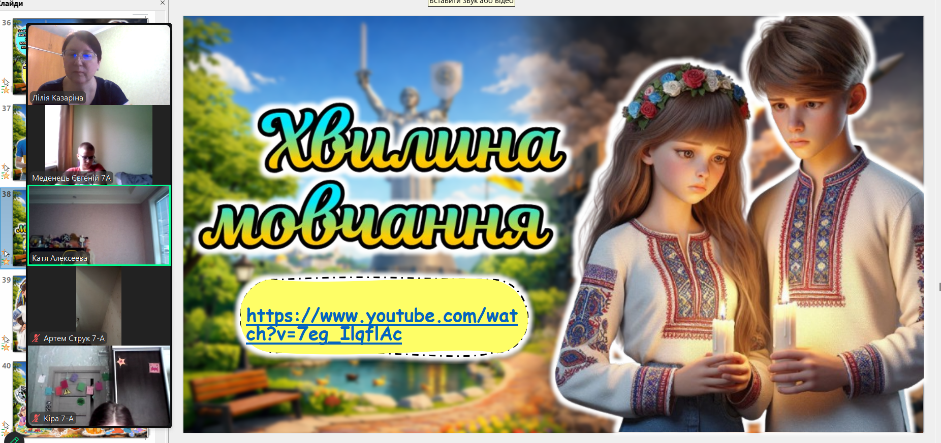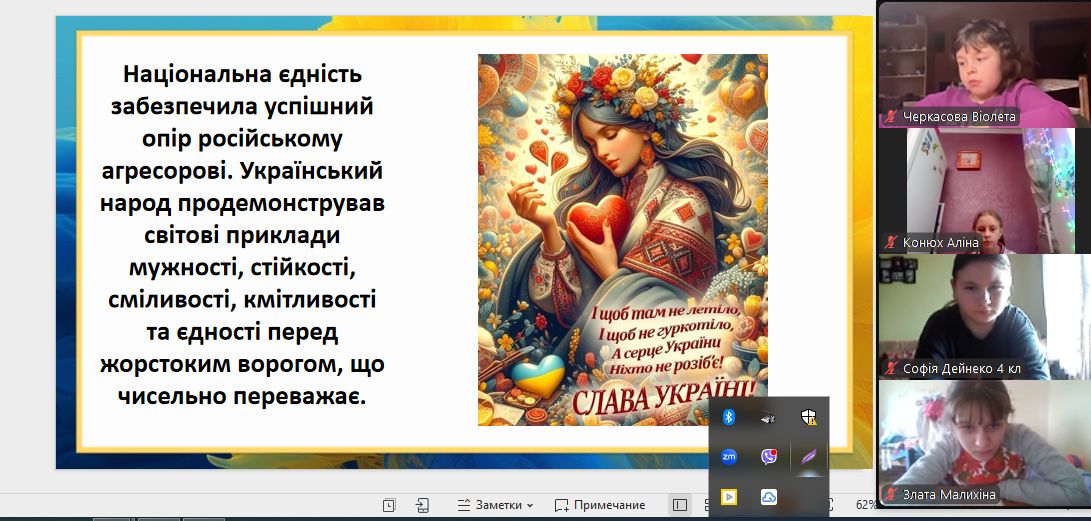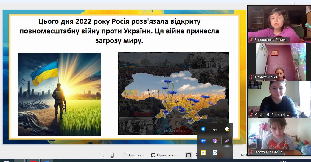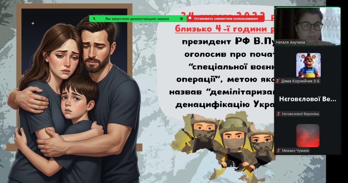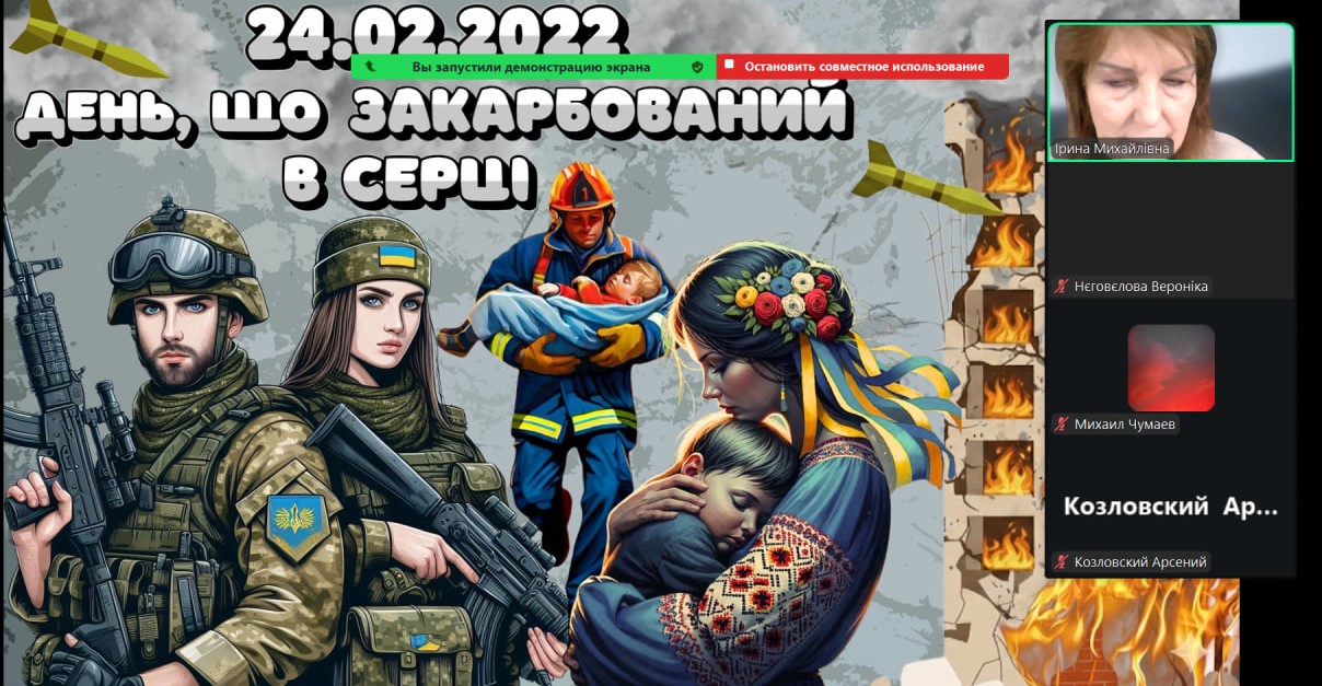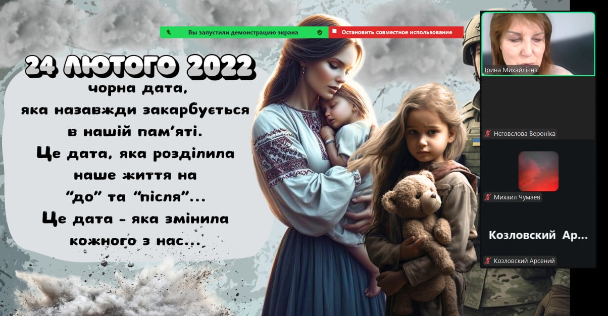 Сьогодні наші монітори світилися особливим світлом — вчителі та вихователі провели з учнями онлайн-зустрічі, присвячені боротьбі України за свободу. Хоч ми й розділені екранами, але єдині в наших думках та прагненнях. Ми говорили про силу нашої єдності, про незламний дух народу та те світле, мирне майбутнє, яке ми обов’язково збудуємо разом. Сьогодні ми вшановуємо пам’ять кожного Героя, хто віддав життя за нашу землю. Під час онлайн-включень діти та педагоги схилили голови у хвилині мовчання. Ми пам’ятаємо ціну нашої свободи й несемо цю пам’ять у своїх серцях. Вічна шана полеглим… Особливі слова вдячності сьогодні лунали для захисників і захисниць, які зараз на фронті. Завдяки вашій мужності наші учні мають змогу вчитися, мріяти та навіть у складні часи відчувати підтримку школи.