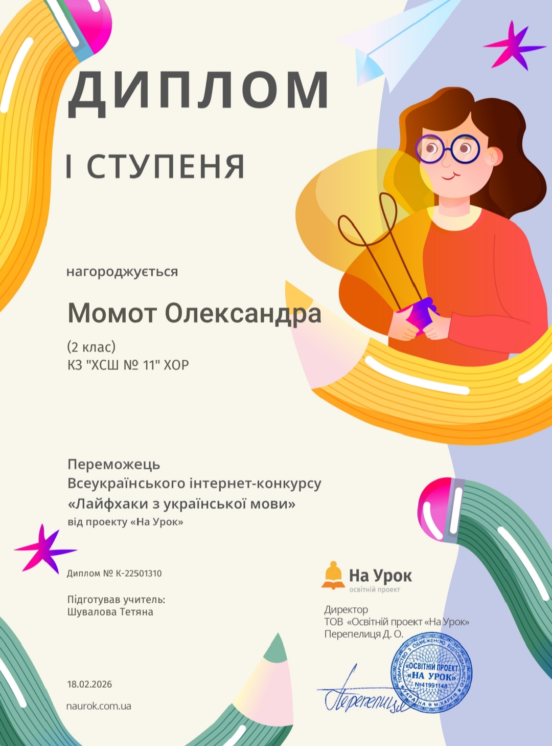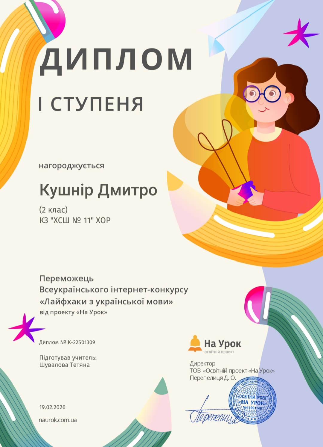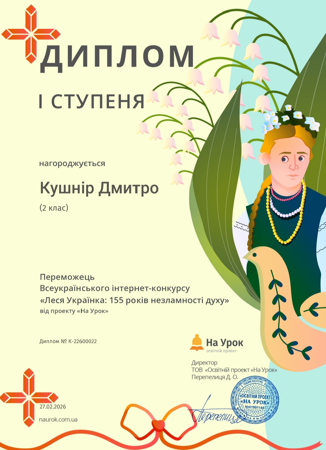 Вихованці взяли участь у Всеукраїнському конкурсі «Леся Українка: 155 років незламності духу» від проєкту «На Урок» учні продемонстрували чудові знання про життя та творчість поетеси та отримали дипломи І, ІІ та ІІІ ступенів