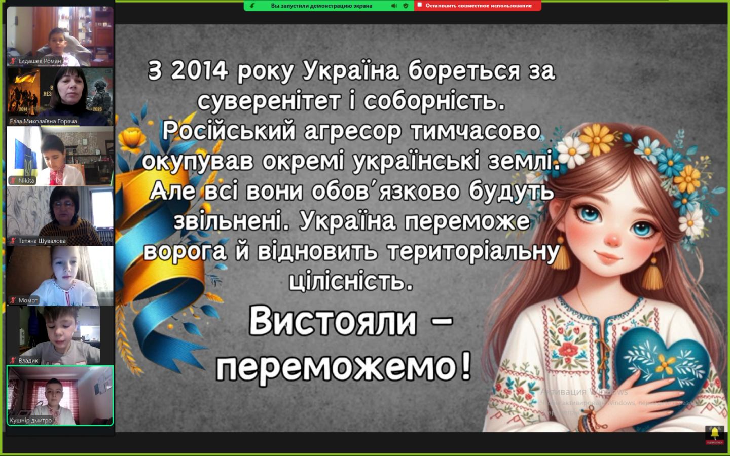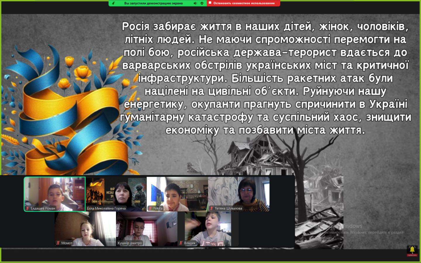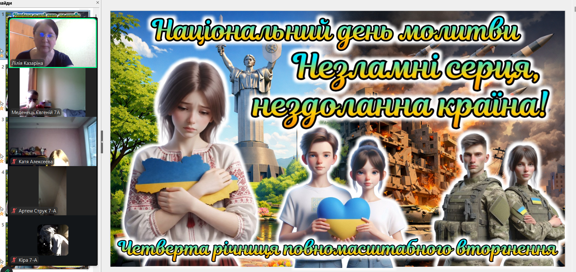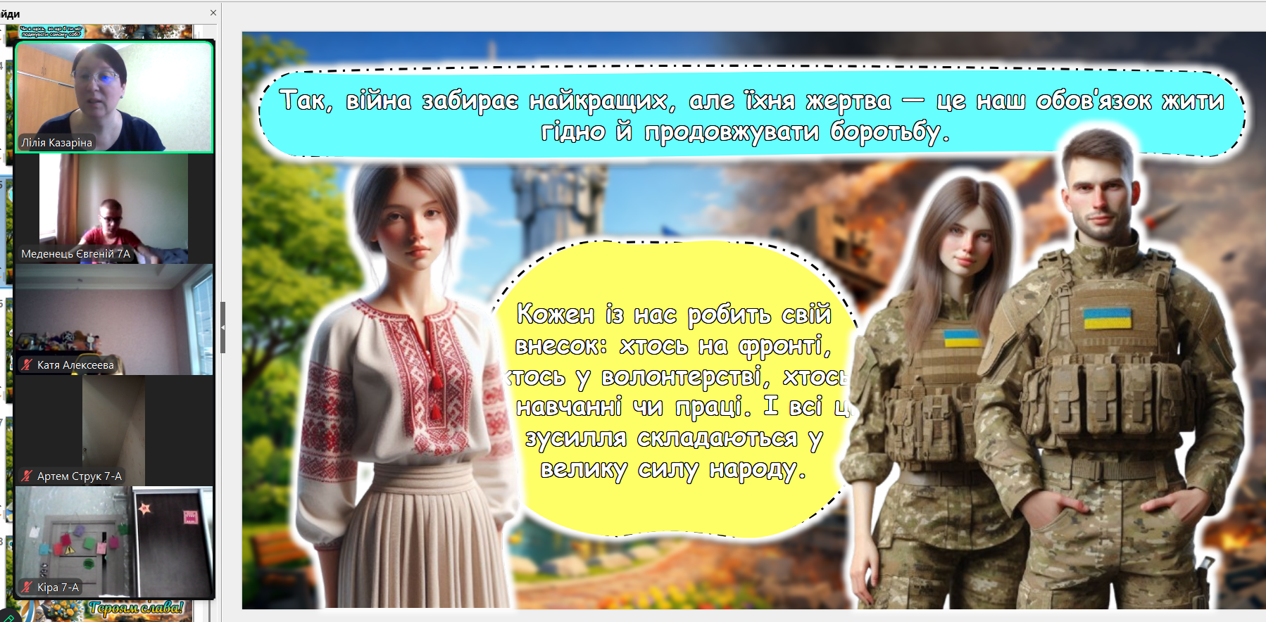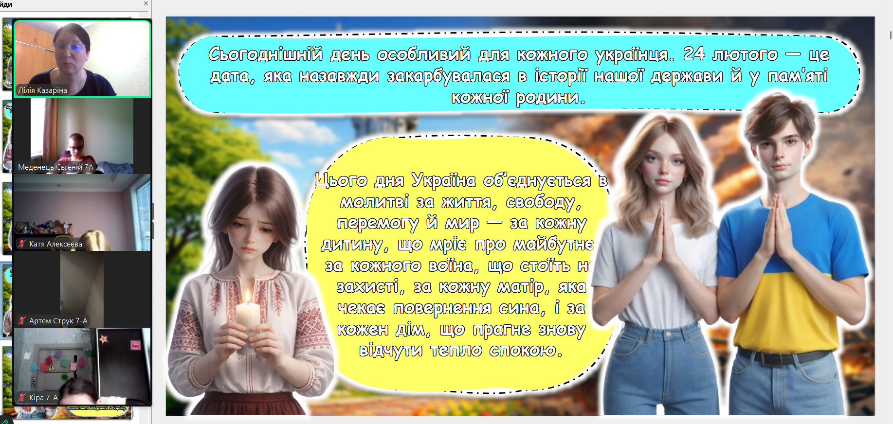 Сьогодні ми зустрілися онлайн. Екрани моніторів замінили нам парти, але вони не замінять тепла дитячих очей. Дивлячись на своїх учнів через камери, ми бачимо, як сильно вони подорослішали. Тепер вони розуміють ціну кожного ангела на дереві не з підручників, а з власного життя.