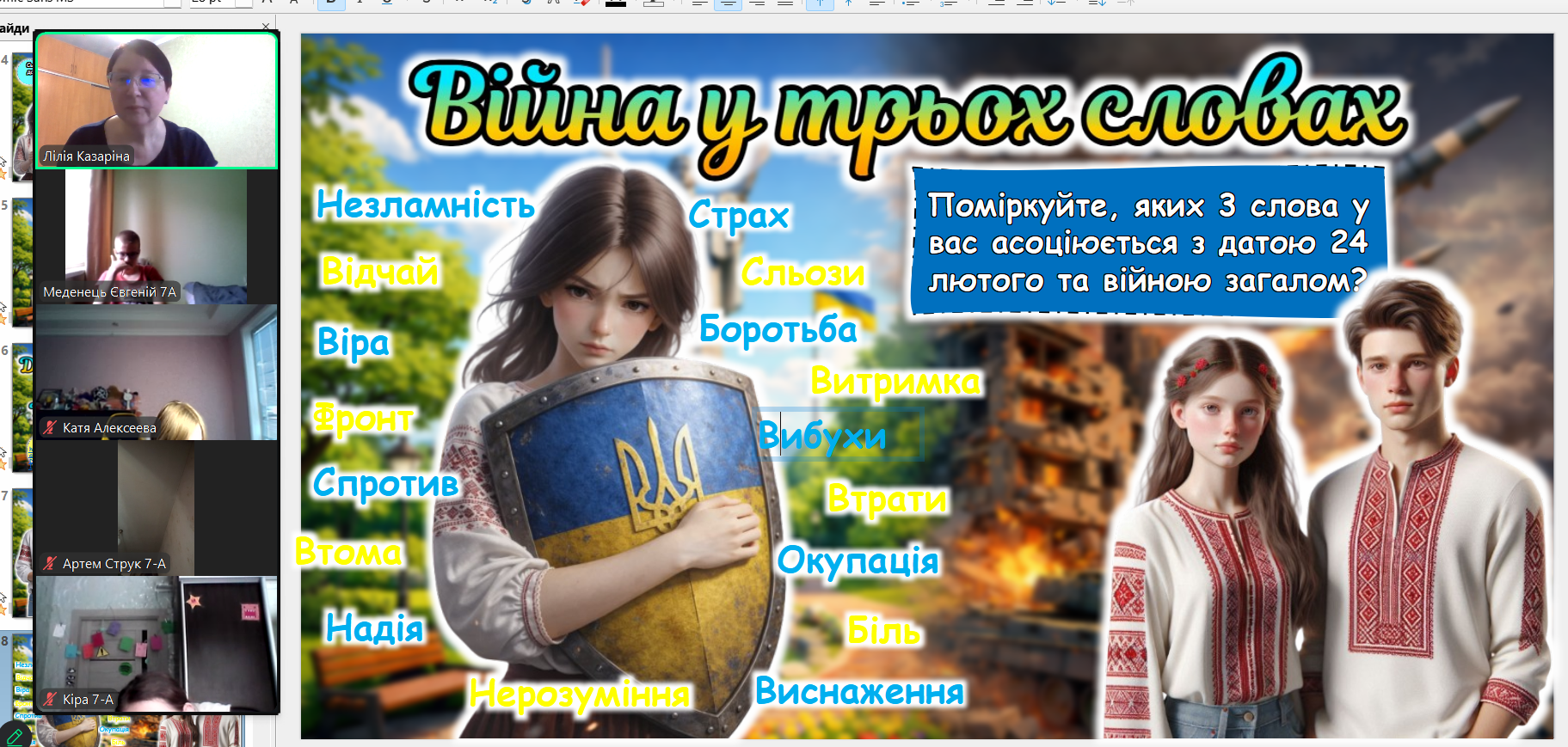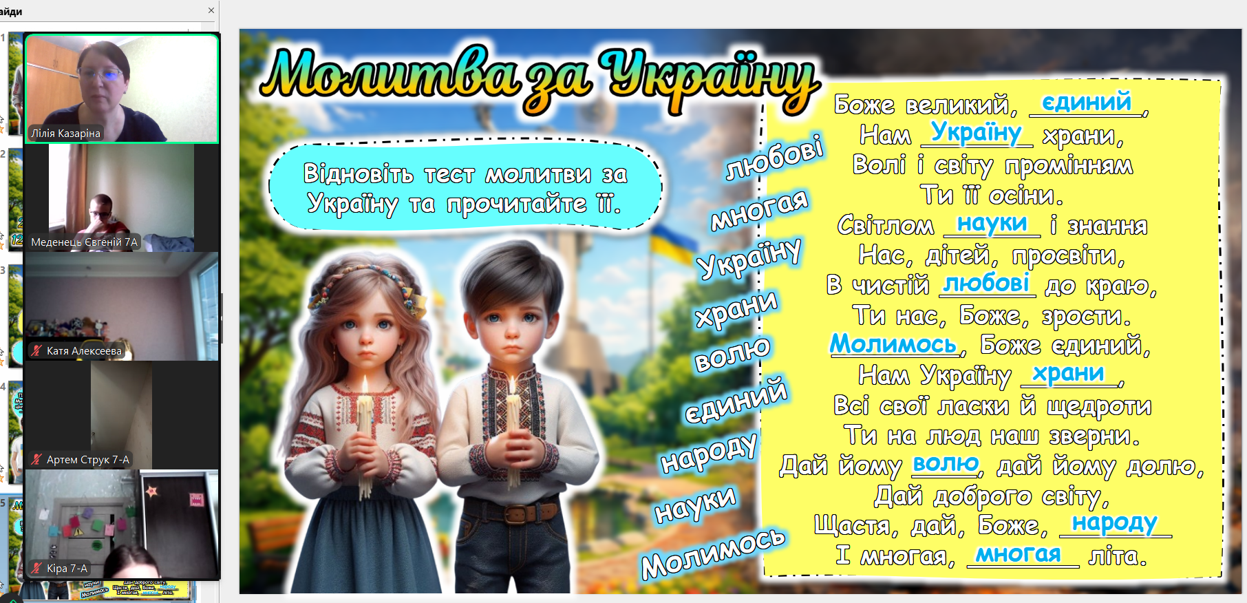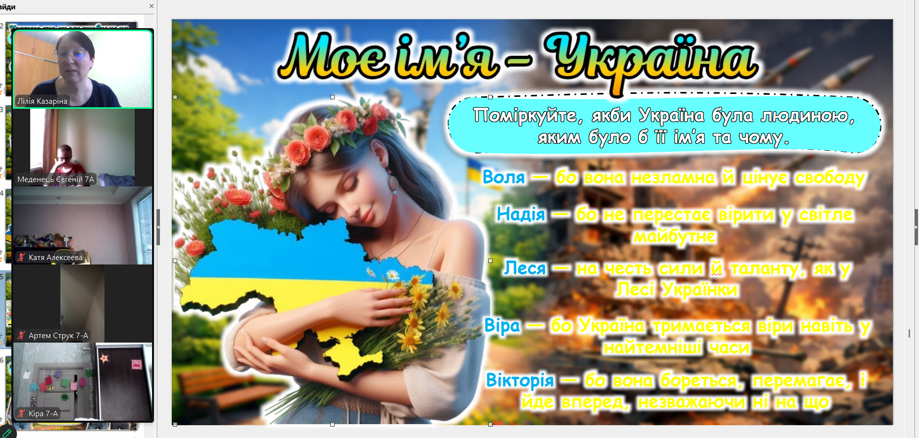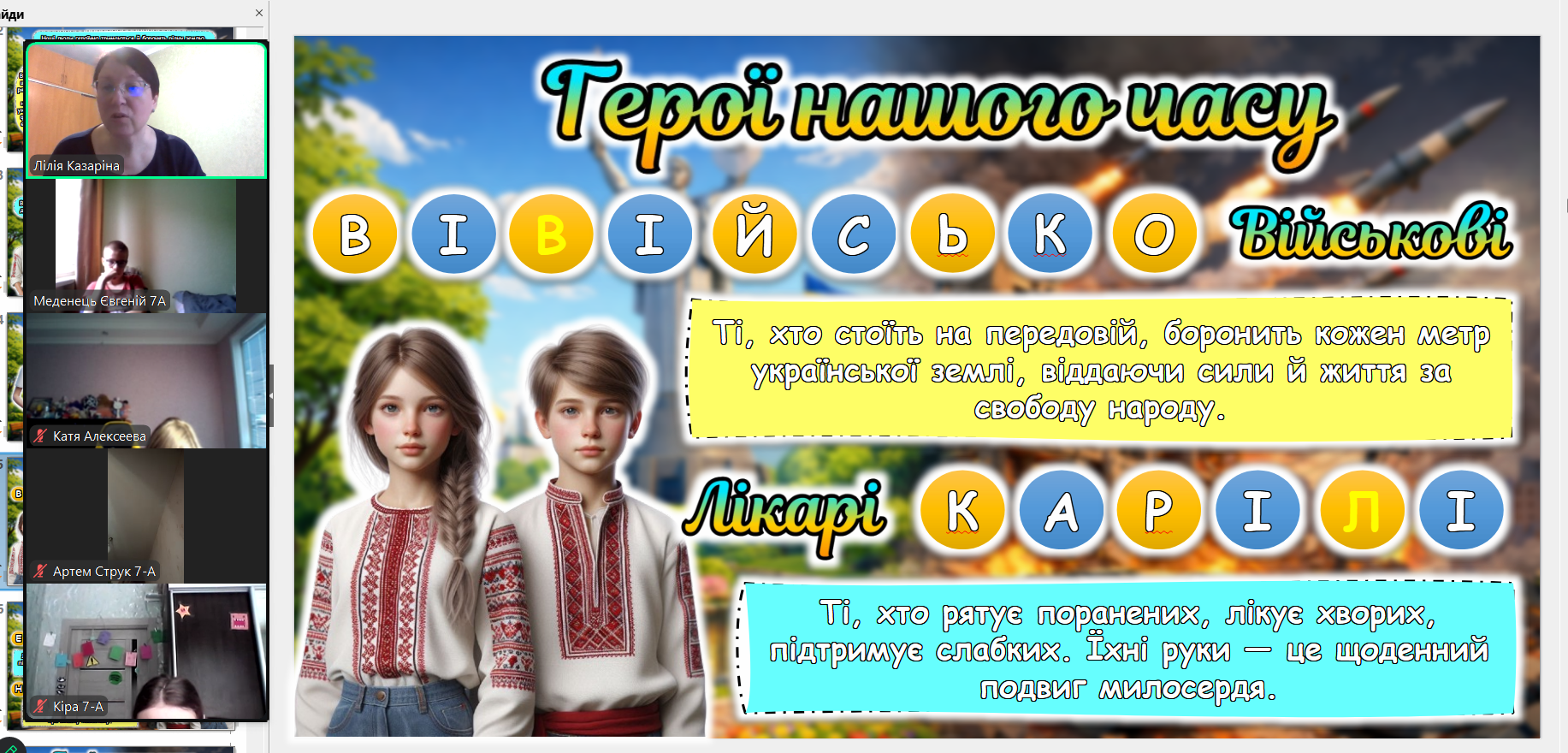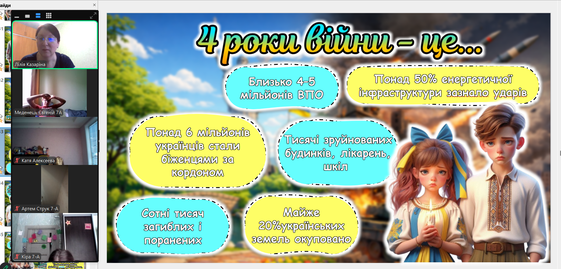 Сьогодні ми зустрілися онлайн. Екрани моніторів замінили нам парти, але вони не замінять тепла дитячих очей. Дивлячись на своїх учнів через камери, ми бачимо, як сильно вони подорослішали. Тепер вони розуміють ціну кожного ангела на дереві не з підручників, а з власного життя.