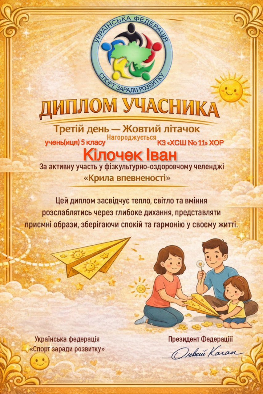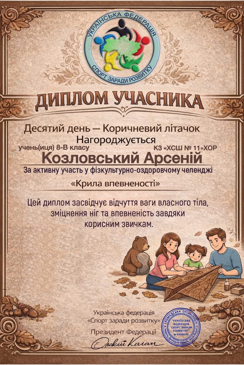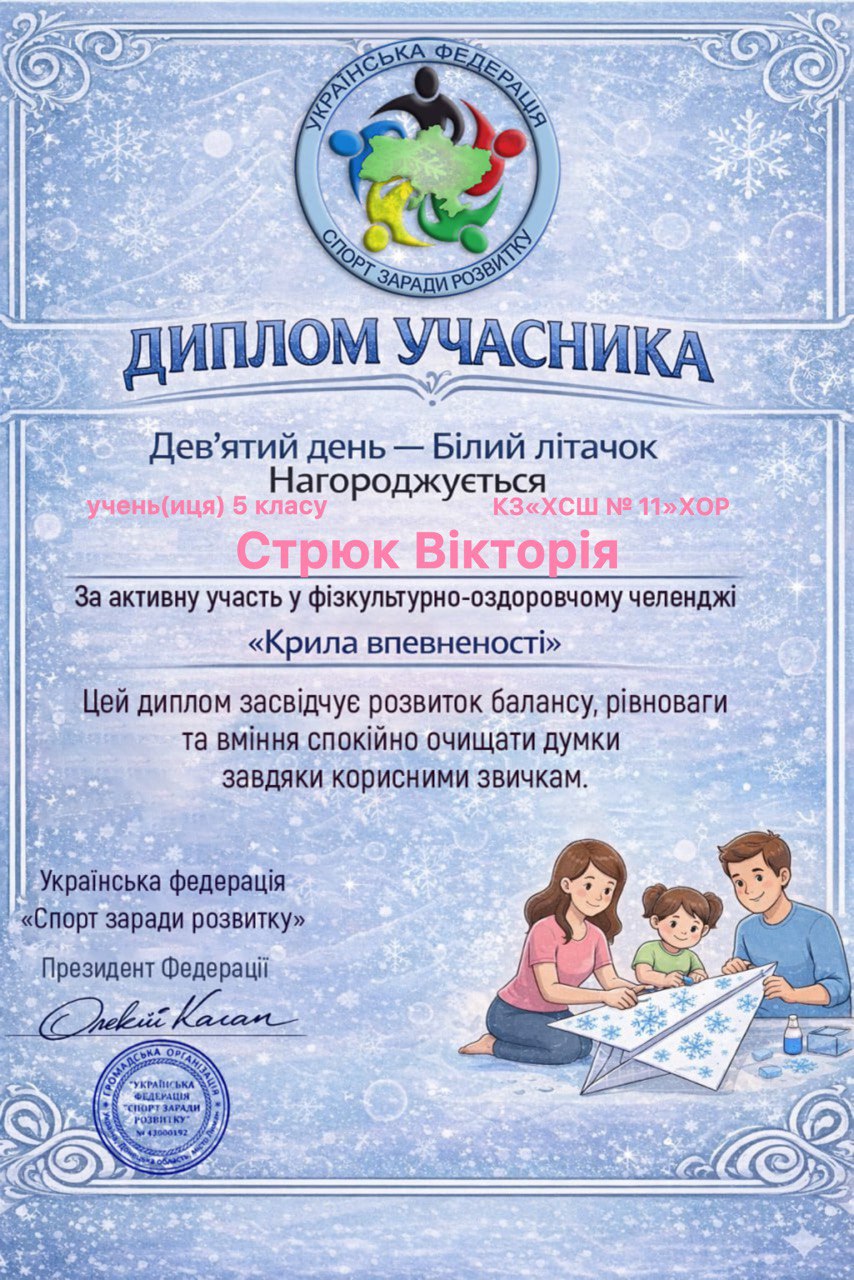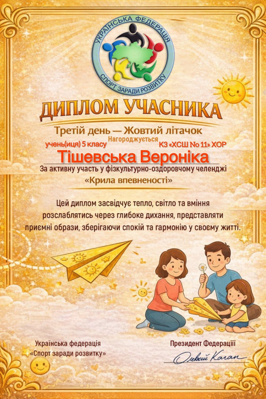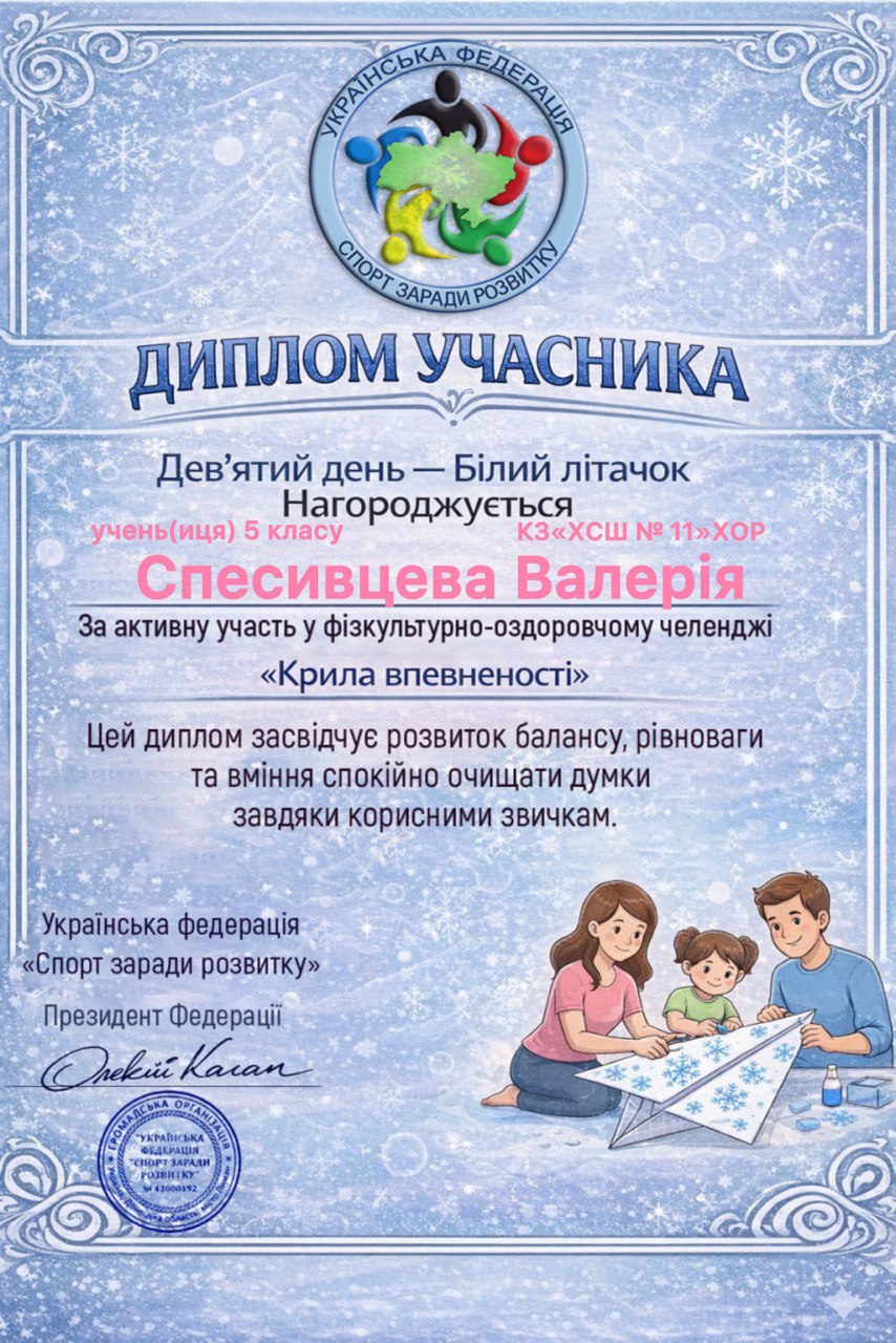 Учні, батьки та вчителі Комунального закладу «Харківська спеціальна школа № 11» Харківської обласної ради офіційно на борту! Ми долучилися до масштабного 30-денного Всеукраїнського фізкультурно-оздоровчого челенджу «Крила впевненості» від Української федерації «Спорт заради розвитку».