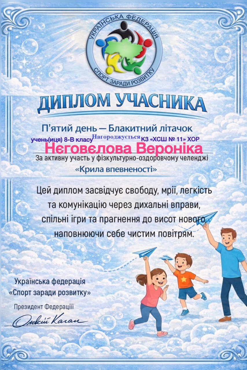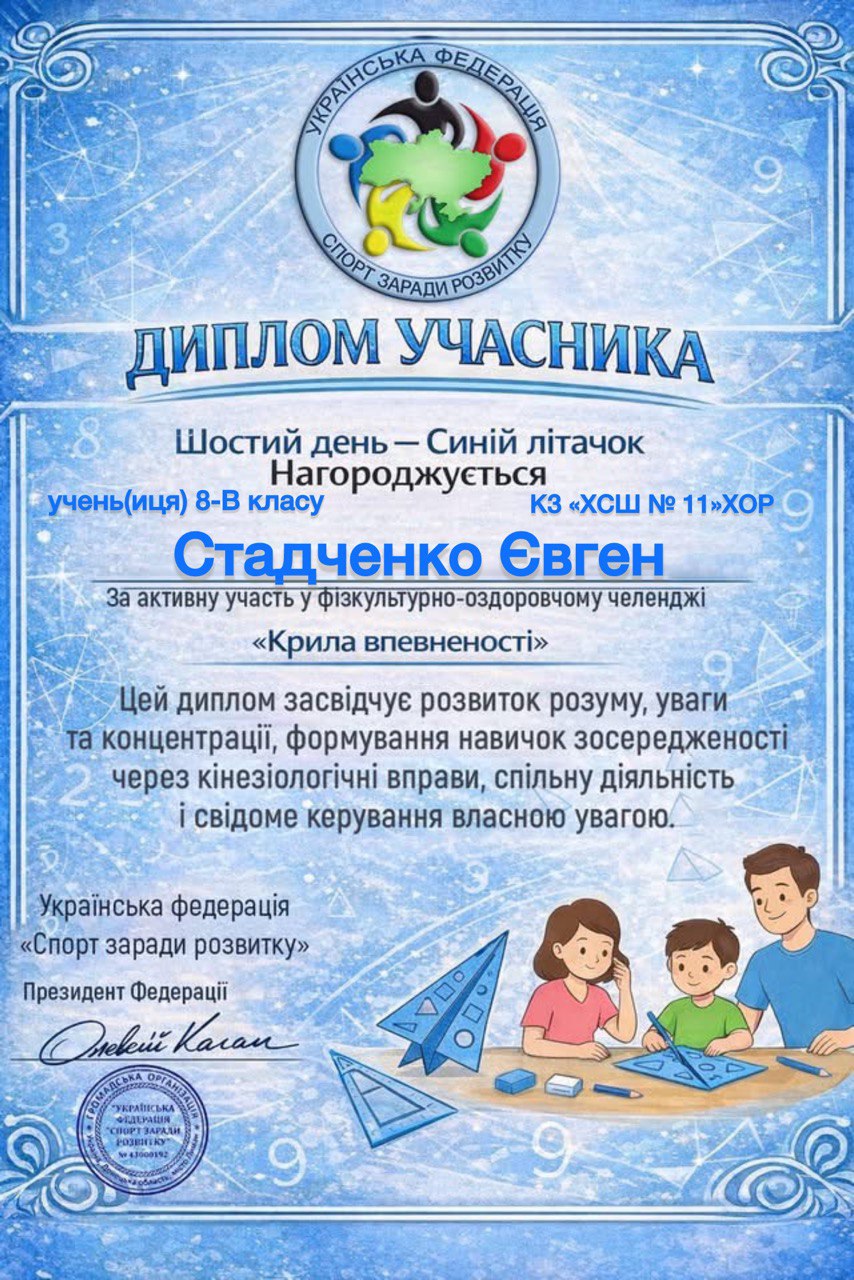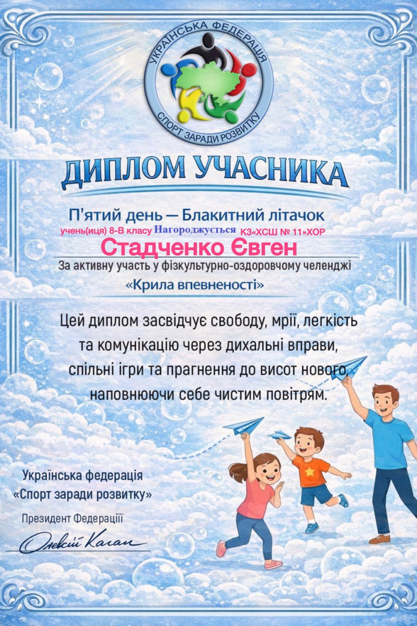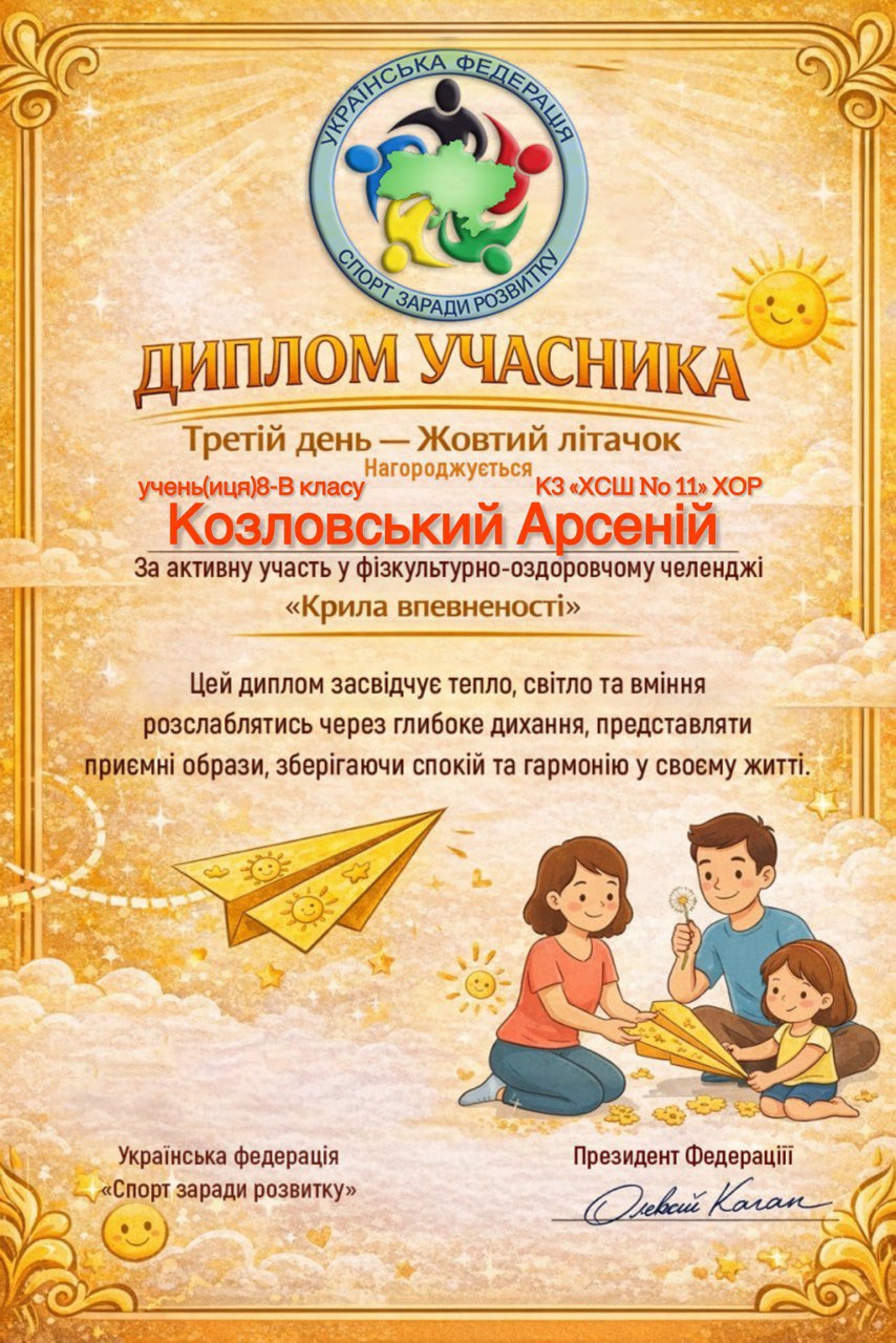 Учні, батьки та вчителі Комунального закладу «Харківська спеціальна школа № 11» Харківської обласної ради офіційно на борту! Ми долучилися до масштабного 30-денного Всеукраїнського фізкультурно-оздоровчого челенджу «Крила впевненості» від Української федерації «Спорт заради розвитку».