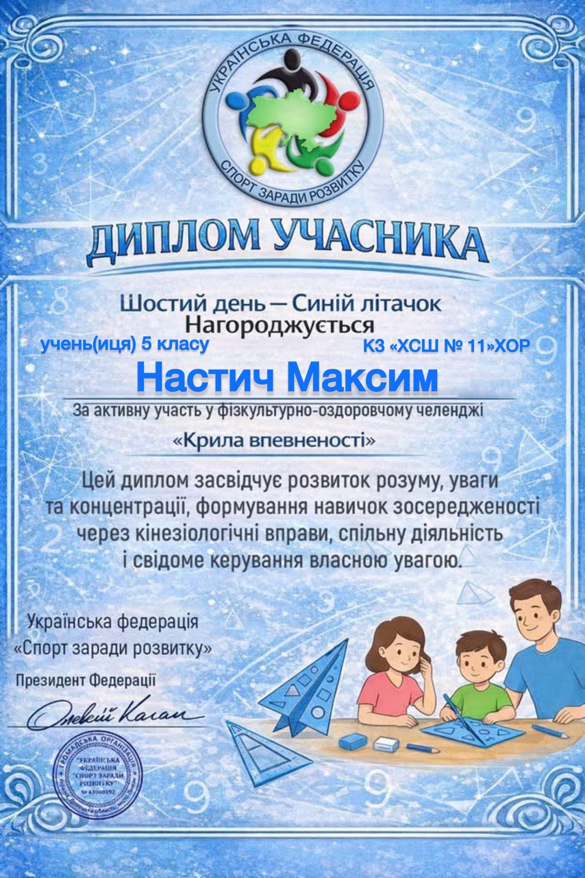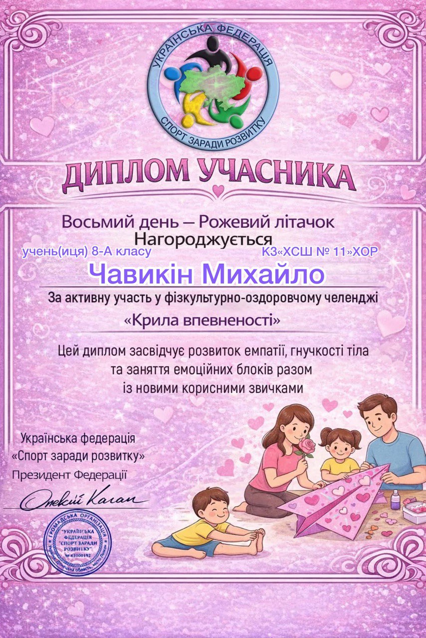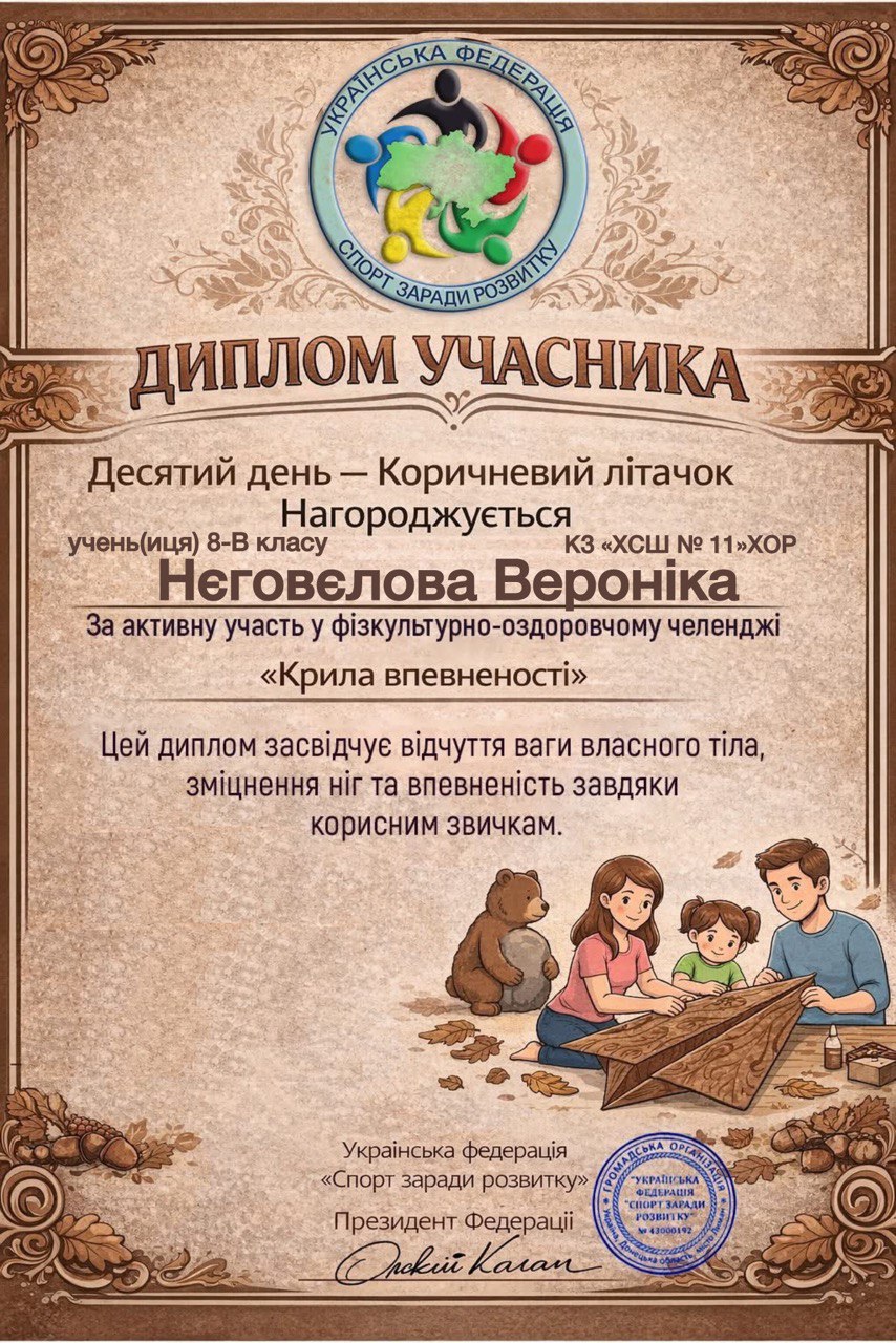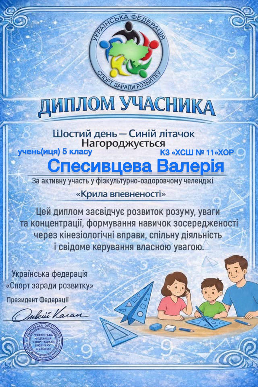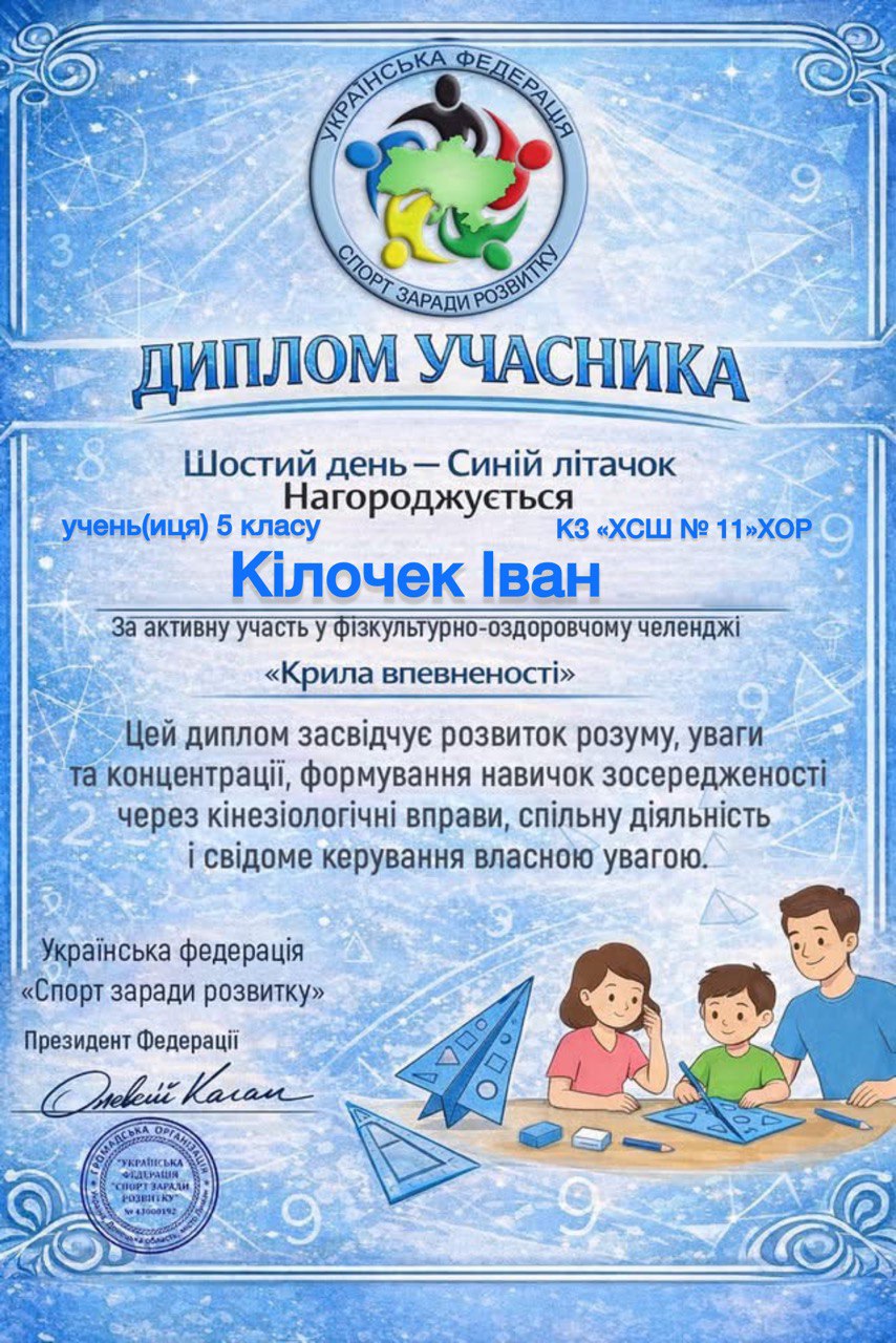 Учні, батьки та вчителі Комунального закладу «Харківська спеціальна школа № 11» Харківської обласної ради офіційно на борту! Ми долучилися до масштабного 30-денного Всеукраїнського фізкультурно-оздоровчого челенджу «Крила впевненості» від Української федерації «Спорт заради розвитку».