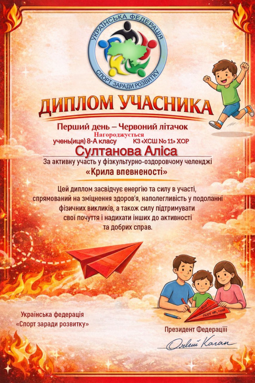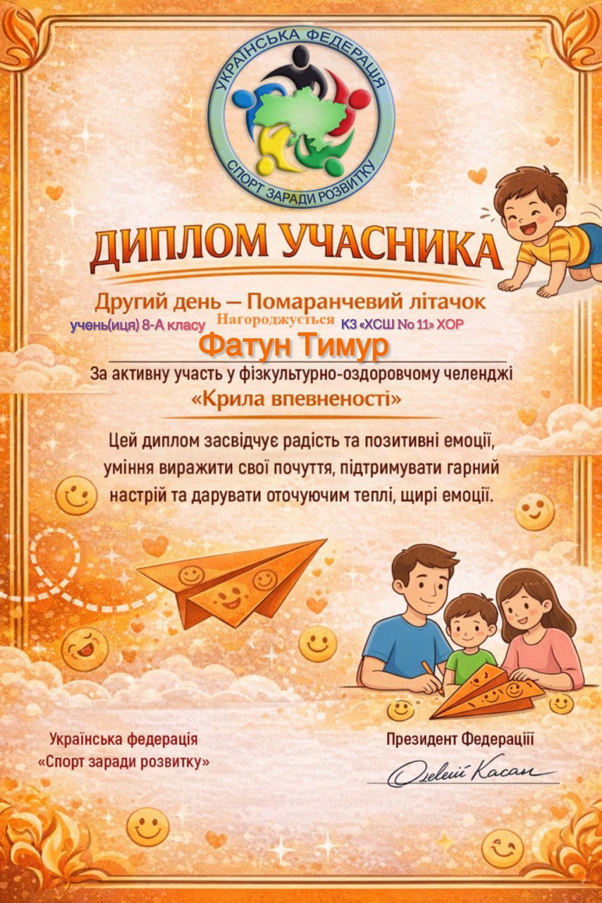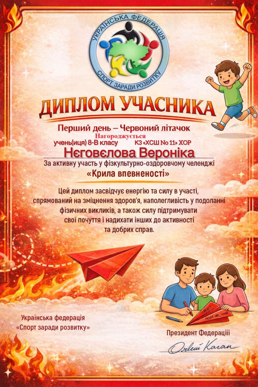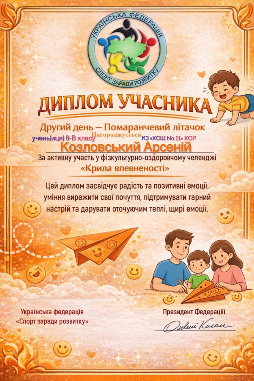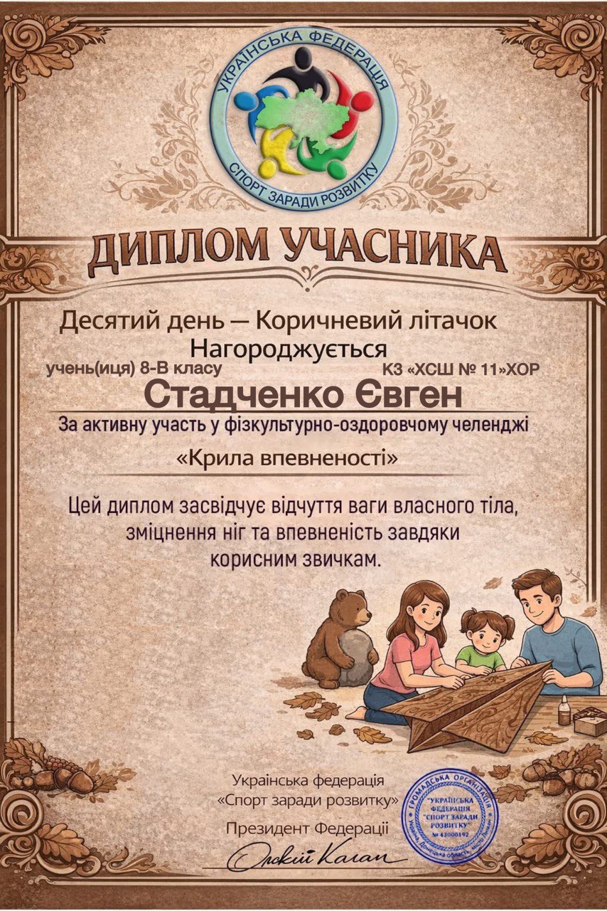 Учні, батьки та вчителі Комунального закладу «Харківська спеціальна школа № 11» Харківської обласної ради офіційно на борту! Ми долучилися до масштабного 30-денного Всеукраїнського фізкультурно-оздоровчого челенджу «Крила впевненості» від Української федерації «Спорт заради розвитку».