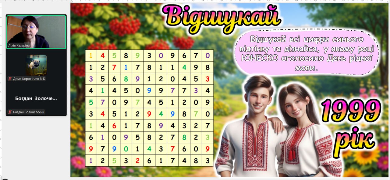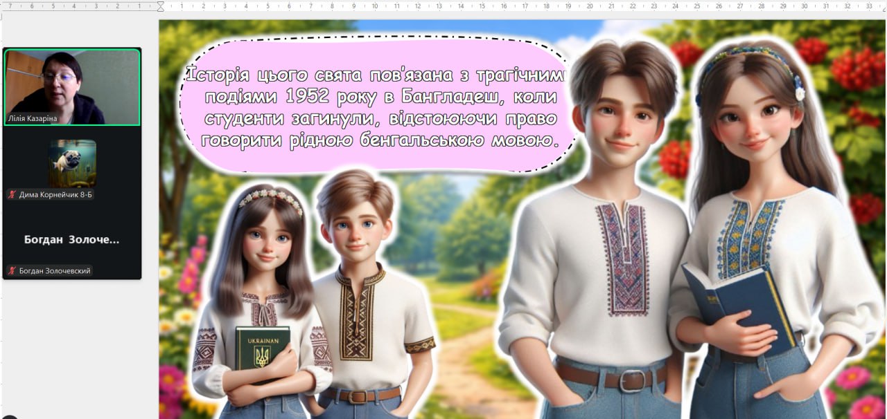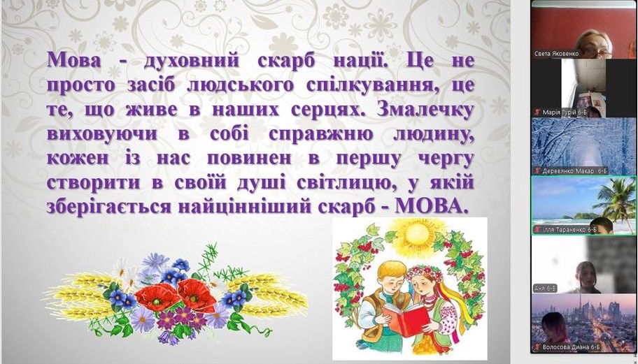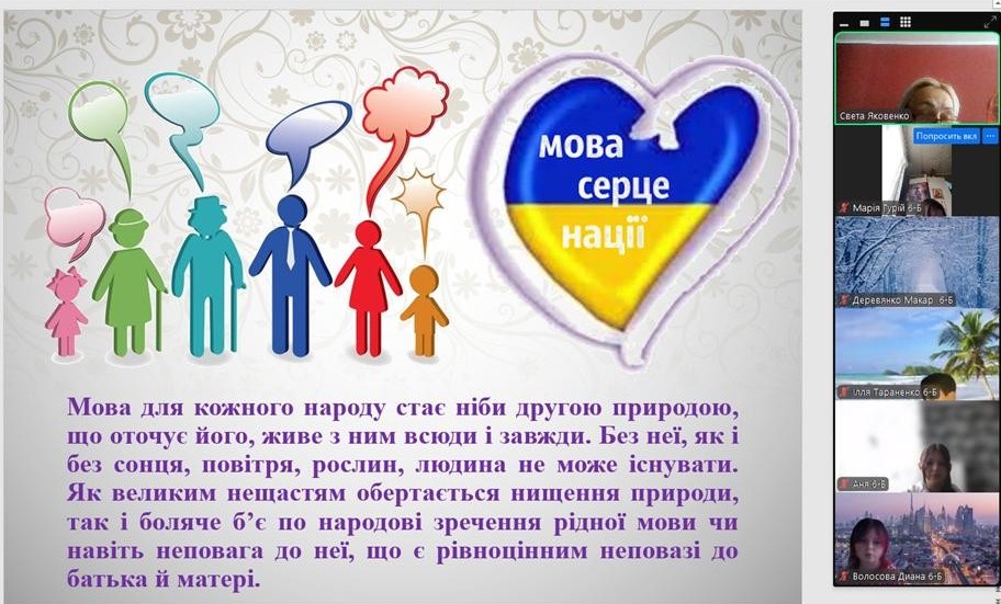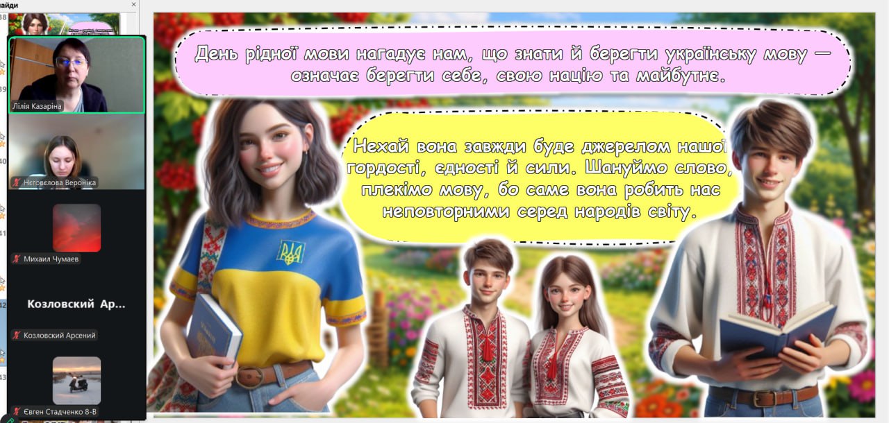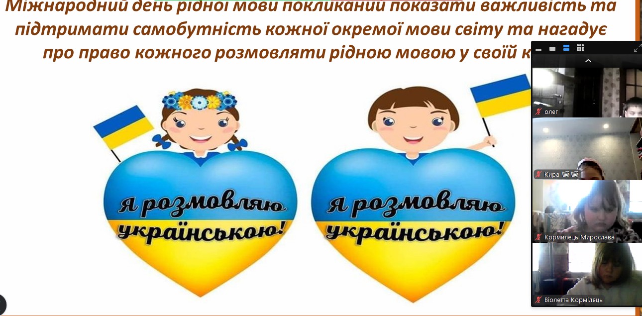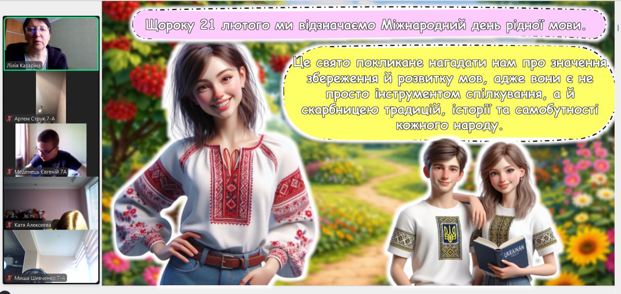 До Міжнародного дня рідної мови з вихованцями було проведено тематичну годину спілкування «Мова — душа нації». Під час заходу школярі дізналися про тернистий шлях становлення української мови, обговорили її роль у сучасному світі та взяли участь у цікавих мовознавчих вікторинах. Головною метою зустрічі було нагадати кожному, що рідне слово — це не лише засіб спілкування, а й наш генетичний код, жива душа народу, яка об’єднує українців крізь покоління.