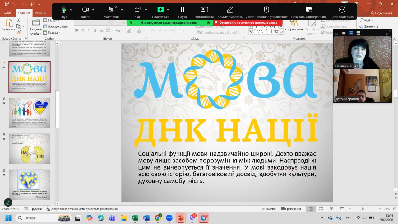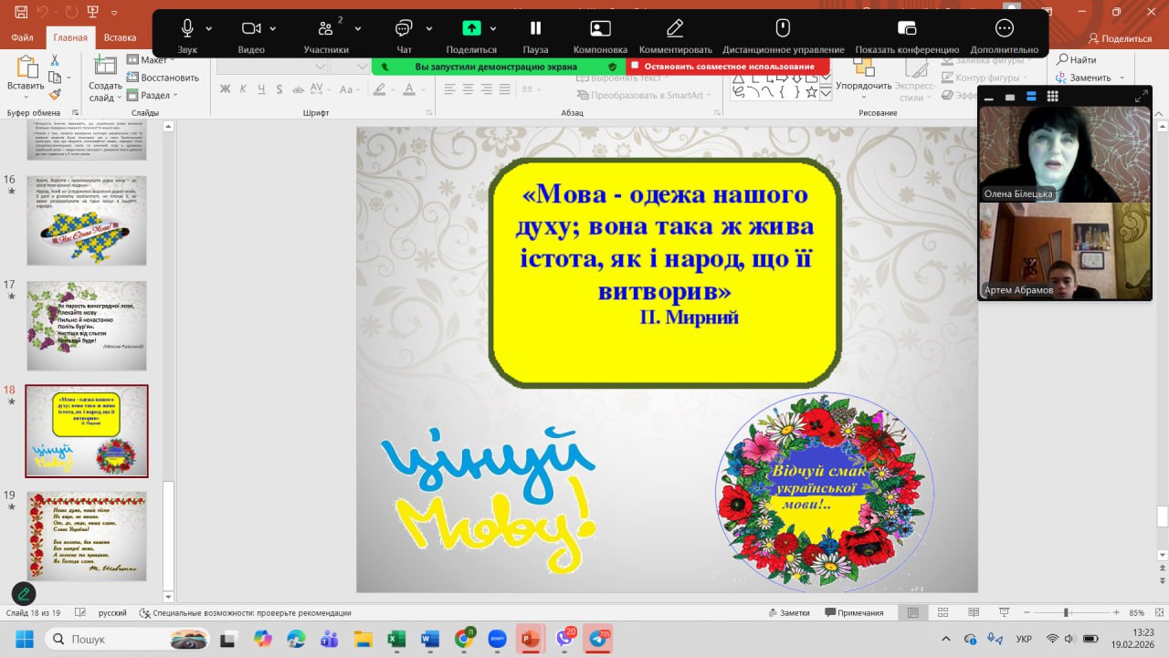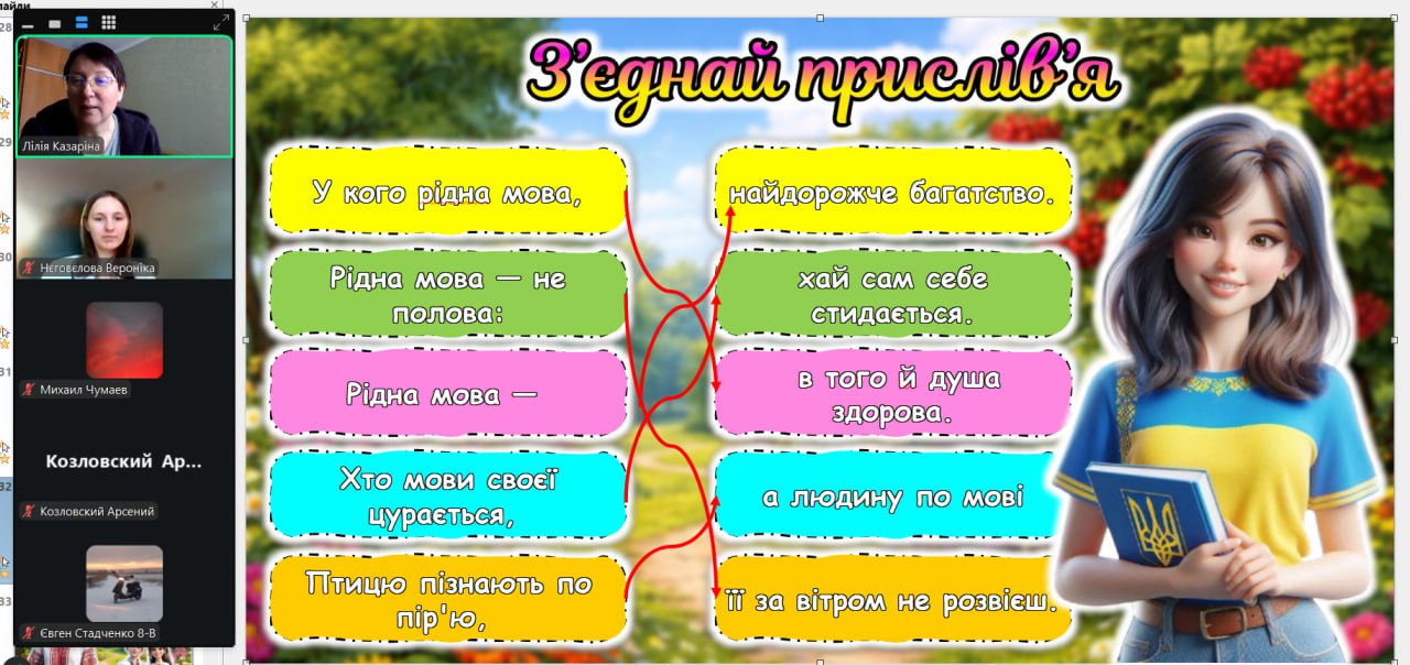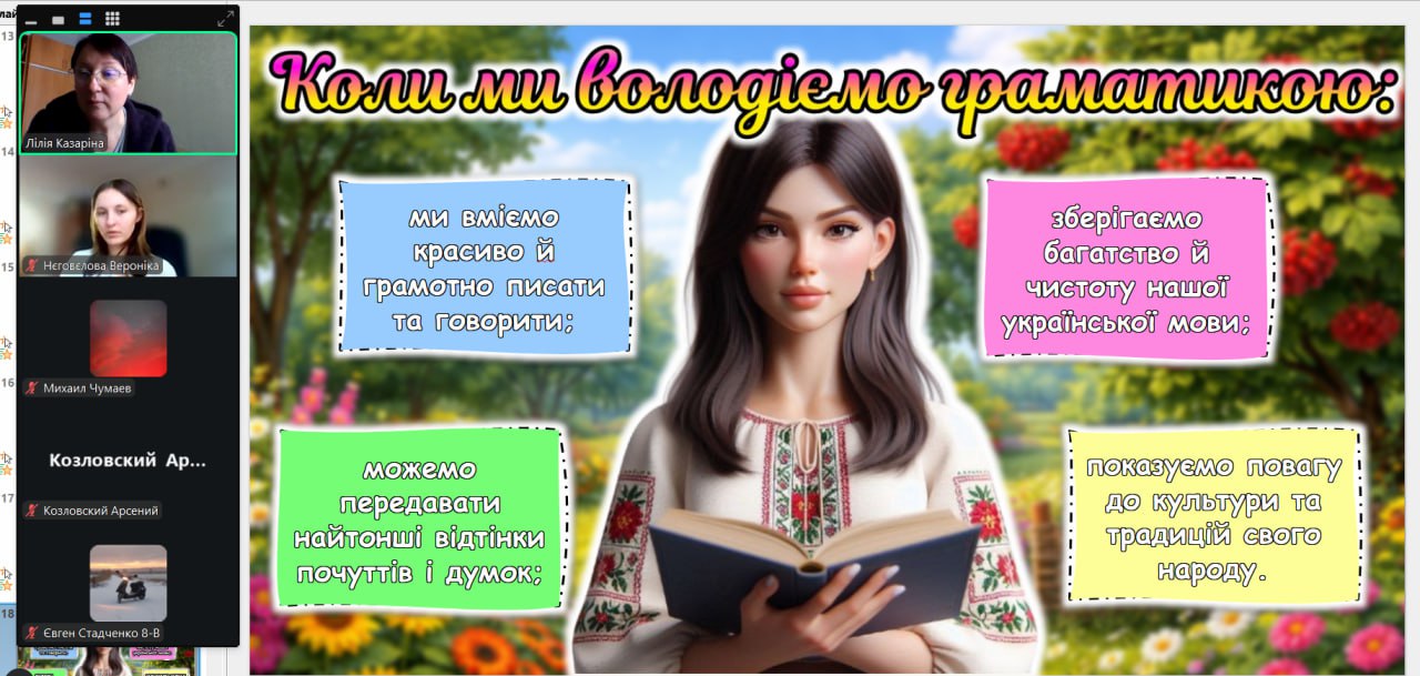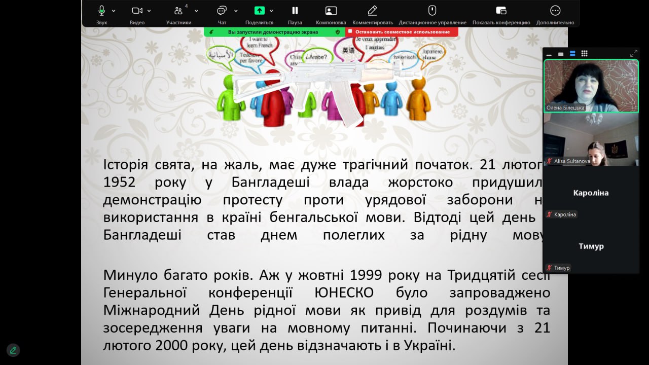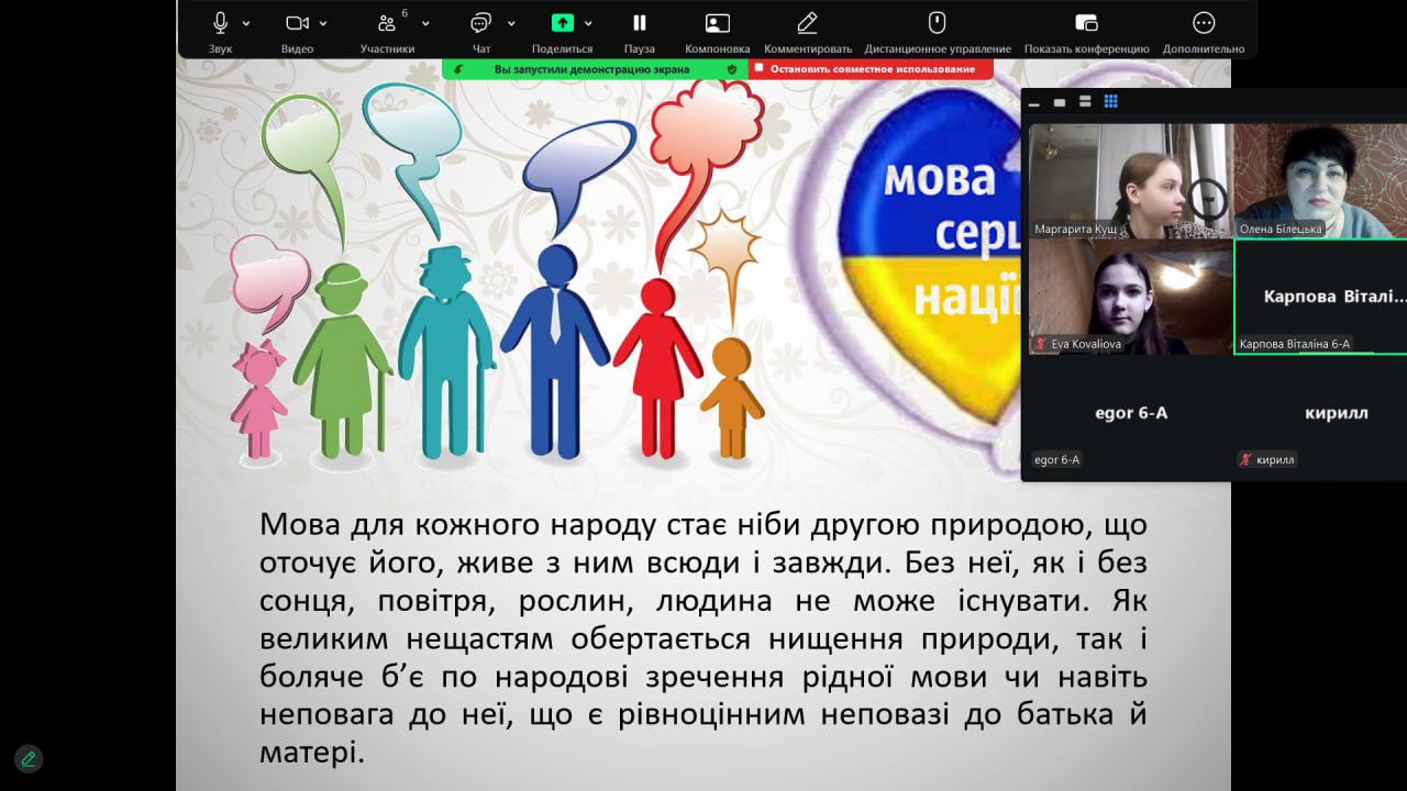 До Міжнародного дня рідної мови з вихованцями було проведено тематичну годину спілкування «Мова — душа нації». Під час заходу школярі дізналися про тернистий шлях становлення української мови, обговорили її роль у сучасному світі та взяли участь у цікавих мовознавчих вікторинах. Головною метою зустрічі було нагадати кожному, що рідне слово — це не лише засіб спілкування, а й наш генетичний код, жива душа народу, яка об’єднує українців крізь покоління.