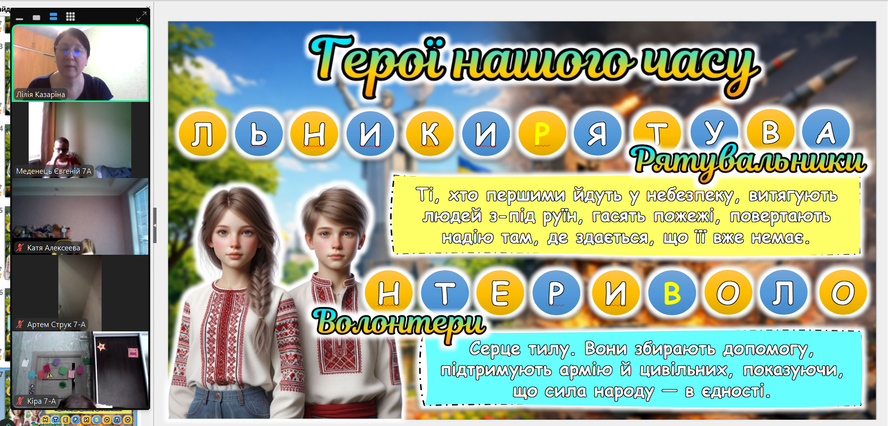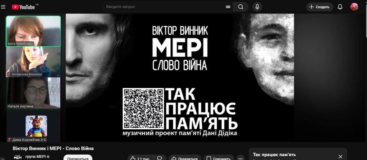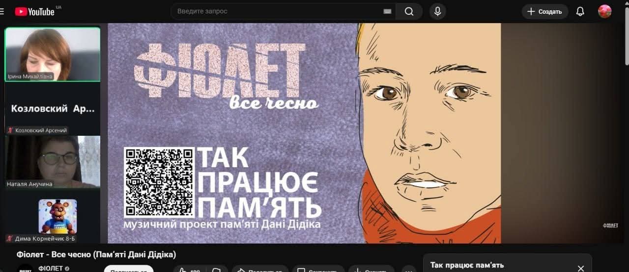 З вихованцями 7-8-х класів відбулася зустріч у форматі Zoom-конференції, щоб віддати шану юному патріоту, Народному Герою України — Данилу Дідіку.