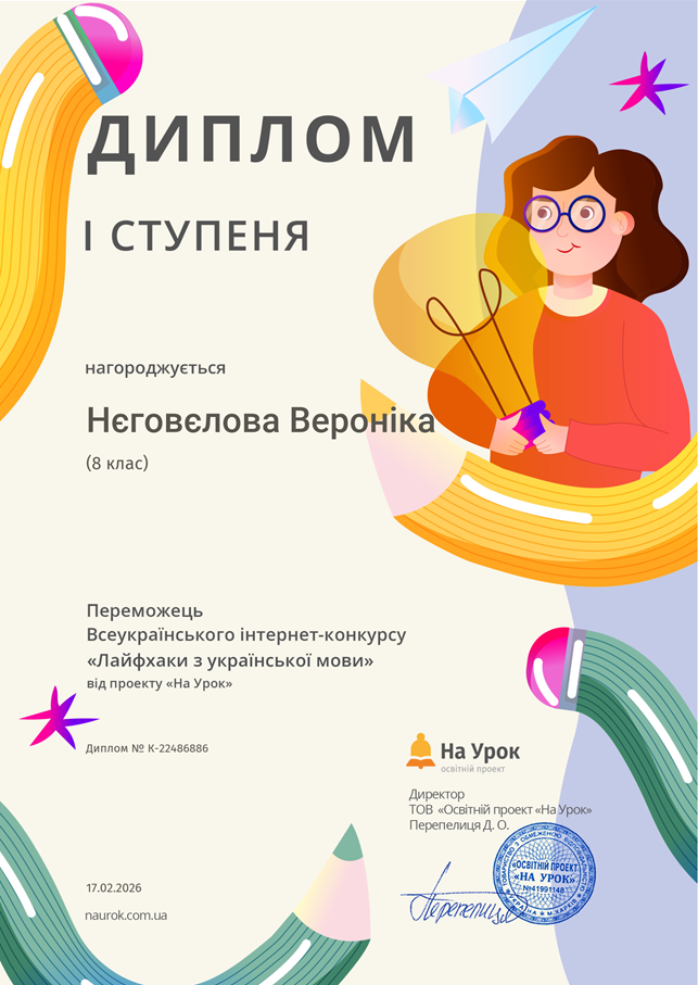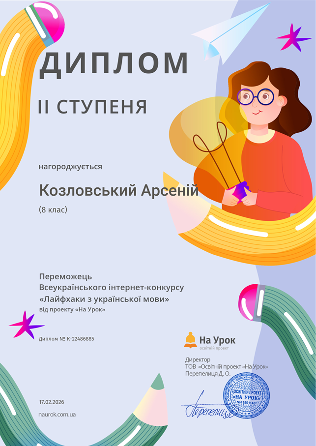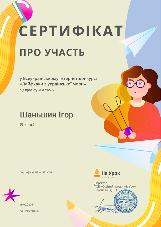 До Дня рідної мови учні взяли участь у Всеукраїнському інтернет-конкурсі «Лайфхаки з української мови» та отримали дипломи І, ІІ та ІІІ ступенів та сертифікати за участь