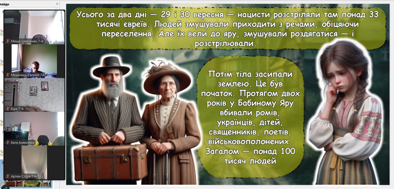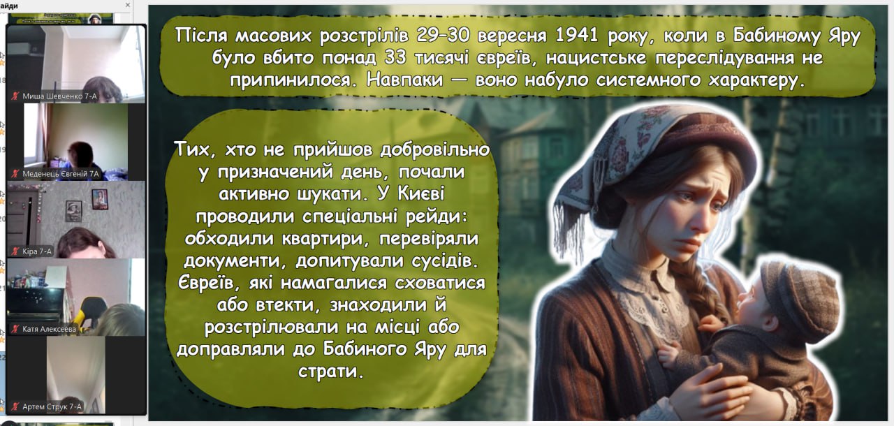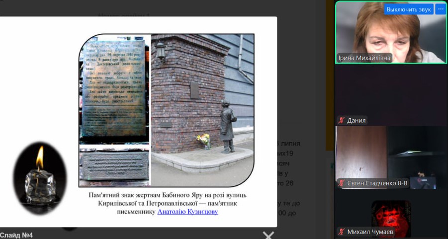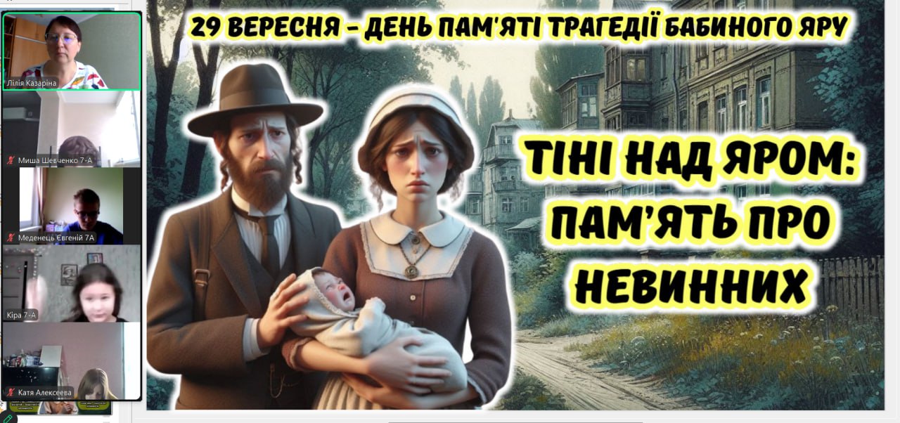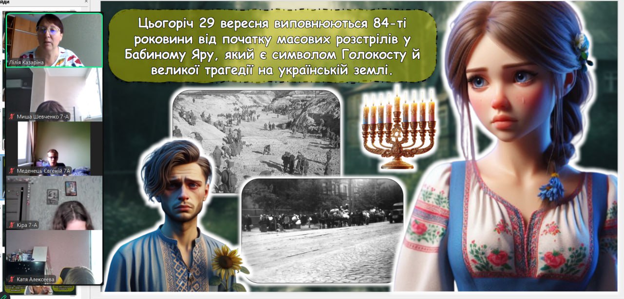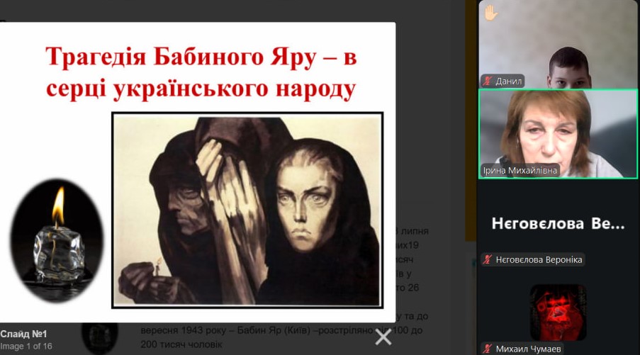В Україні 29 вересня вшановують пам’ять жертв трагедії Бабиного Яру, що стала одним із найжахливіших символів Голокосту. Бабин Яр – місце пам’яті, де у 1941–1943 роках нацистами розстріляли близько 100 тисяч цивільних громадян і військовополонених. Серед них – євреї і роми, червоноармійці, комуністи, підпільники Організації українських націоналістів, в’язні Сирецького концтабору, «саботажники», порушники комендантської години та навіть пацієнти психіатричної лікарні імені Павлова. Нацистська операція стала однією з наймасштабніших каральних акцій Другої світової війни. З вихованцями проведені виовні години, години спілкування, історичні бесіди «Трагедія Бабиного Яру-в серці українського народу»