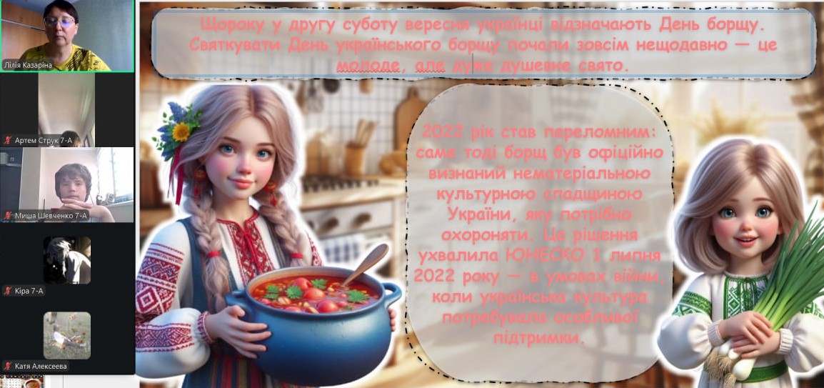 З вихованцями 7-А класу проведено інформаційну хвилинку присвячену  до Дня українського борщу