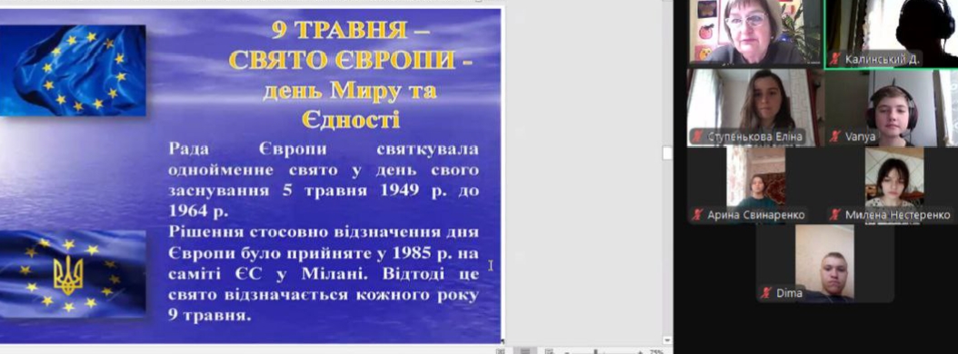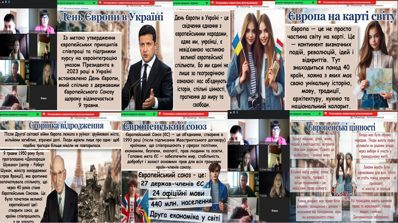 «Мир у світі» – саме з таких слів символічно починається славнозвісна Декларація Шумана, проголошена 9 травня 1950 року, яка заклала фундамент Європейського Союзу. «З 2022 року ми святкуємо День Європи разом з усіма країнами Євросоюзу. 9 травня — не лише важлива дата в історичному календарі Європи, а й день, коли країни континенту вшановують ідею єдності, співпраці та спільного майбутнього. У цей день відзначається День Європи – свято, яке символізує народження сучасного Європейського Союзу. Для Європейського Союзу це не просто дата — це символічне нагадування про цінності, які лежать в основі його існування: демократія, верховенство права, права людини, солідарність та повага до різноманіття. З вихованцями санаторної школи № 11 проведені виховні години, інформаційні хвилини, години спілкування тощо