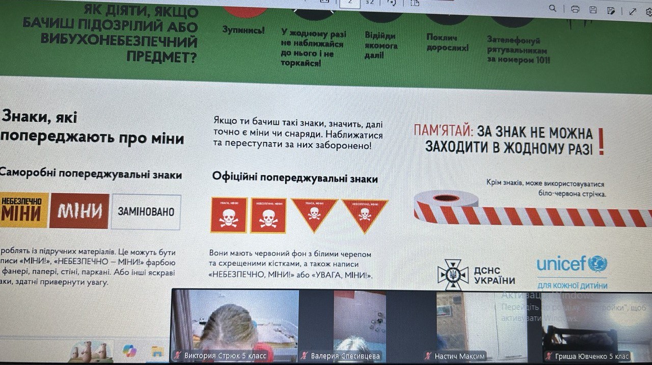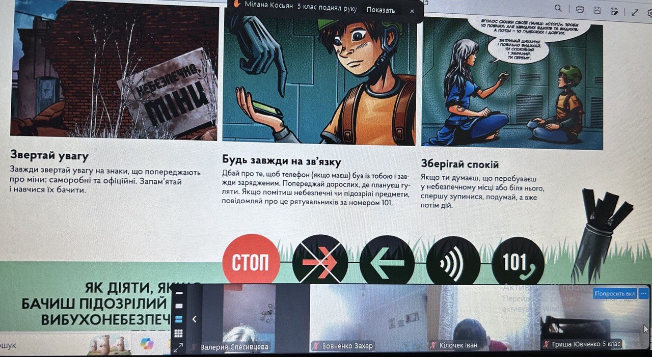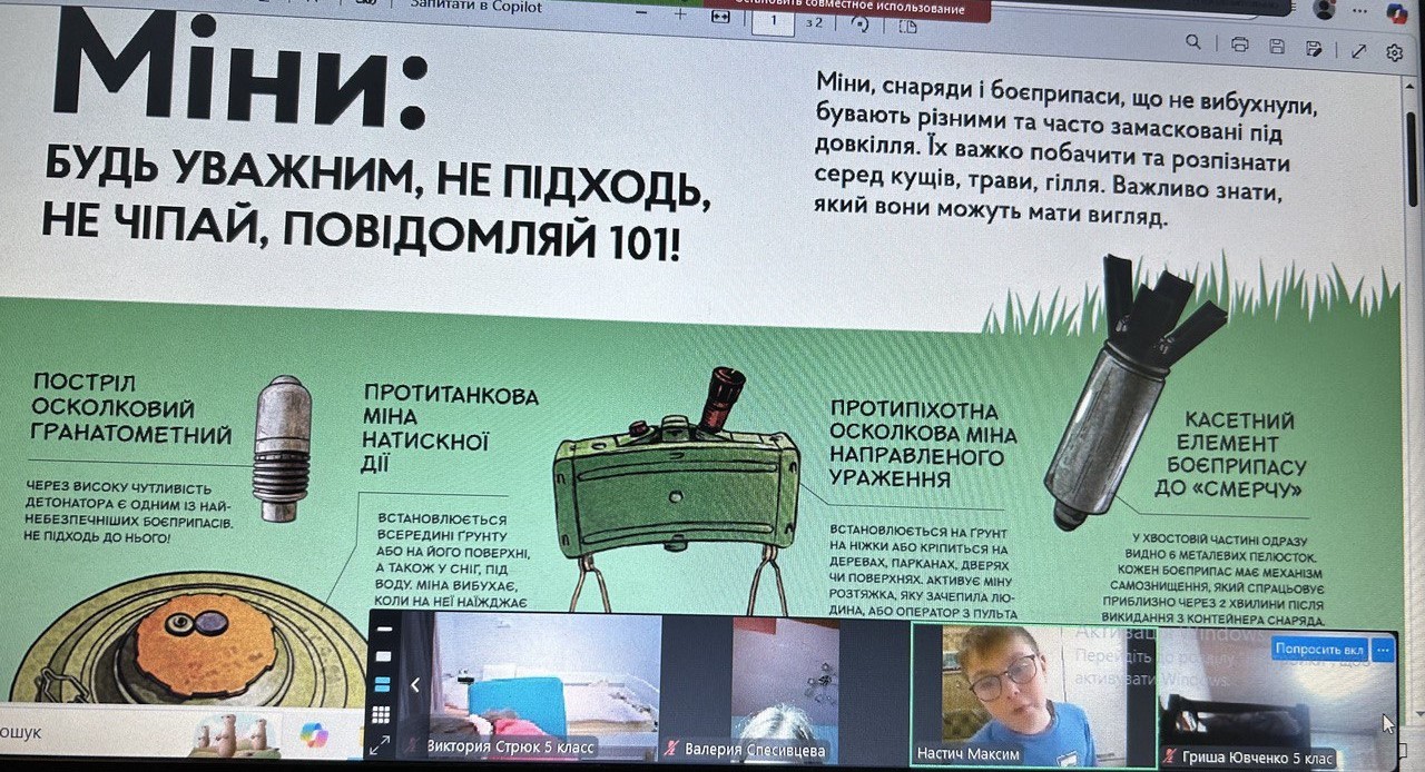 З вихованцями 5 класу проведена бесіда: «Міни: будь уважним, не підходь, не чіпай, повідомляй 101!»