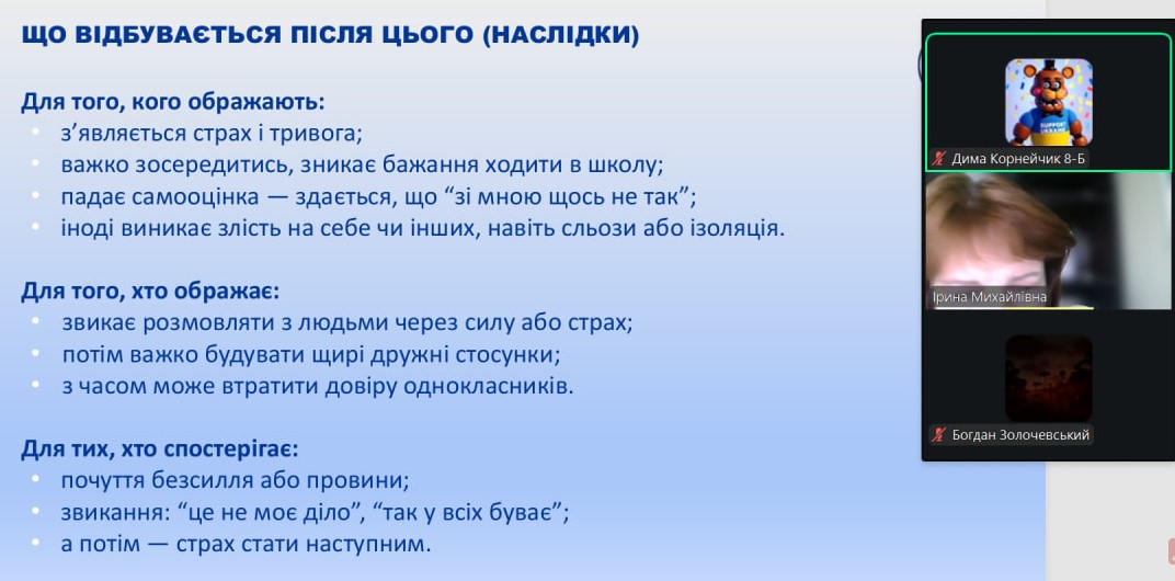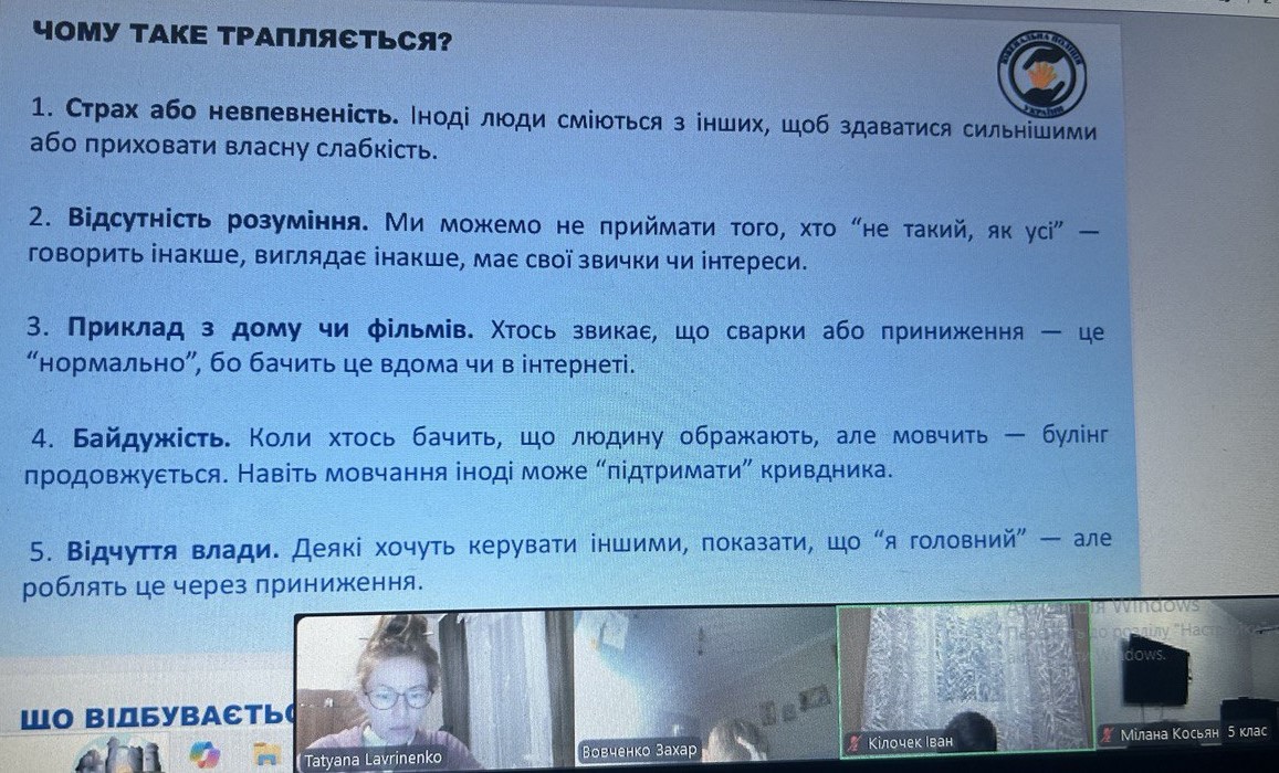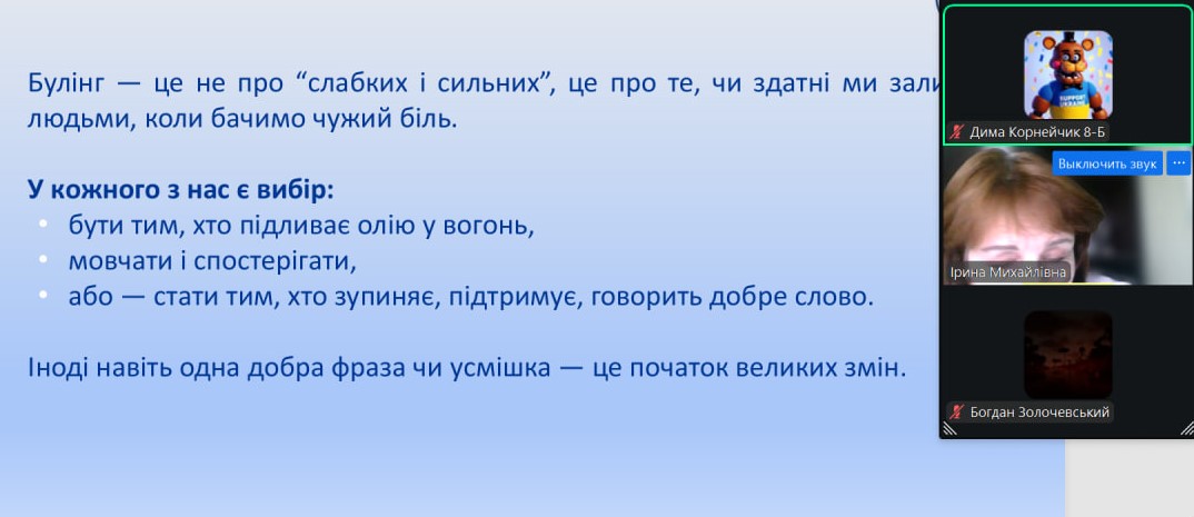 Цей день нагадує нам про необхідність об’єднаних зусиль для створення безпечного та дружнього середовища для всіх. Насильство і булінг – це серйозні проблеми, які можуть мати руйнівні наслідки для людей, які стають їх жертвами. В цей день з учнями 2-8-х класів проведено годину спілкуванн «Разом проти булінгу»