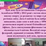 6 квітня – Міжнародний день спорту на благо миру та розвитку. Тема міжнародного дня спорту 2025 року – “Спорт для соціальної інтеграції та взаємодії різних культур і спільнот”. Учні, вчителі, працівники нашого закладу доєдналися до цієї події, і підняли Білу картку (#WhiteCart), на знак того, що спорт і його цінності, принципи Олімпійської хартії, мають бути понад усе: “Так Миру! Спорт це не тільки фізичні активності, це набагато більше!” Тримаймо стрій разом з ЗСУ.