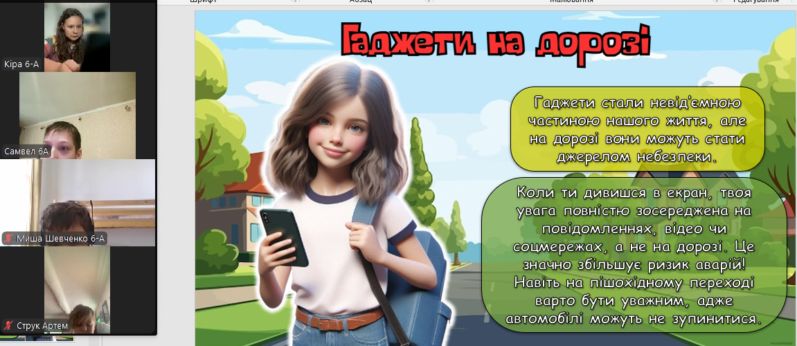 В рамках тижня безпеки дорожнього руху з вихованцями проведені години спілкування «Безпека на дорогах», «Дорога від дому до школи», «Повторення правил дорожнього руху», «Пам`ятка безпеки для учнів», «Безпека дорожнього руху»