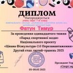 11-й тиждень Цікавої фізкультури проходив за темою «Парад спортивної моди». Вихованці 1-9 класів беруть активну участь у проекті. Всі учні отримали іменні дипломи. Дякуємо Олексію Качан та організаторам Всеукраїнського проекту за цікаві ідеї і можливість продемонструвати свою любов до фізичних активностей. #Цікава фізкультура